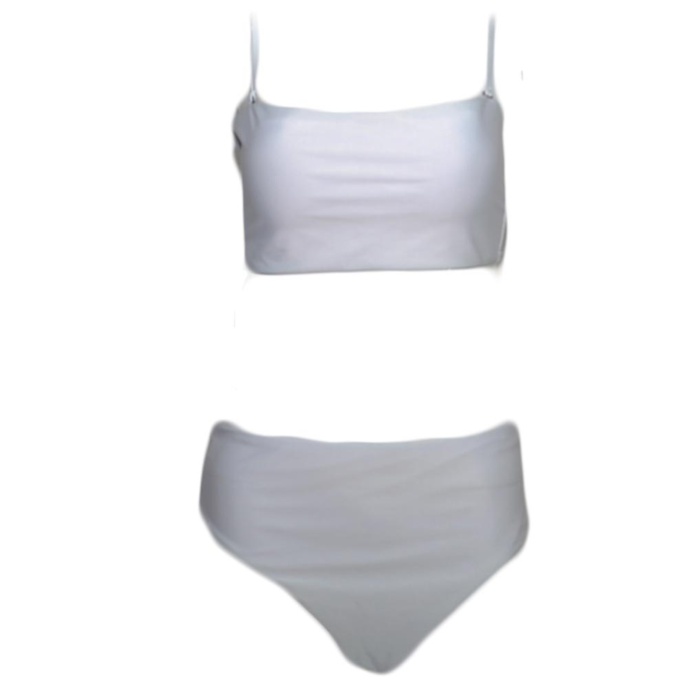 Costume da bagno donna bikini swimwear con culotte brasiliana a vita alta e top bralette regolabile bianco satin moda