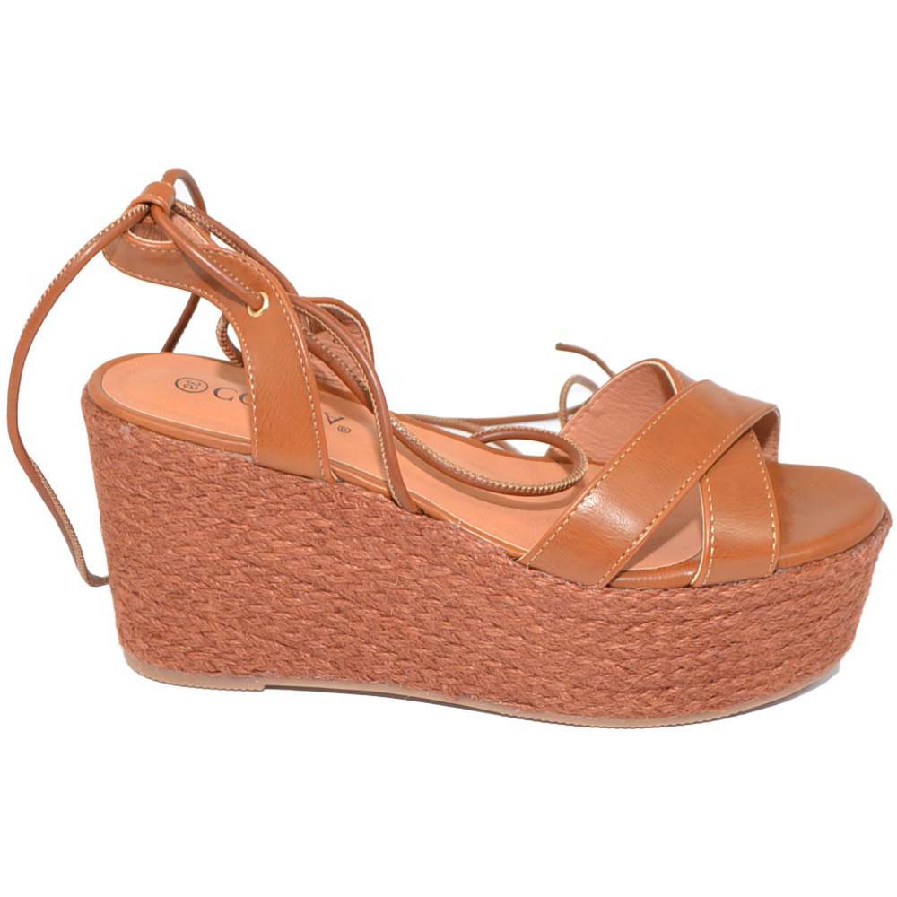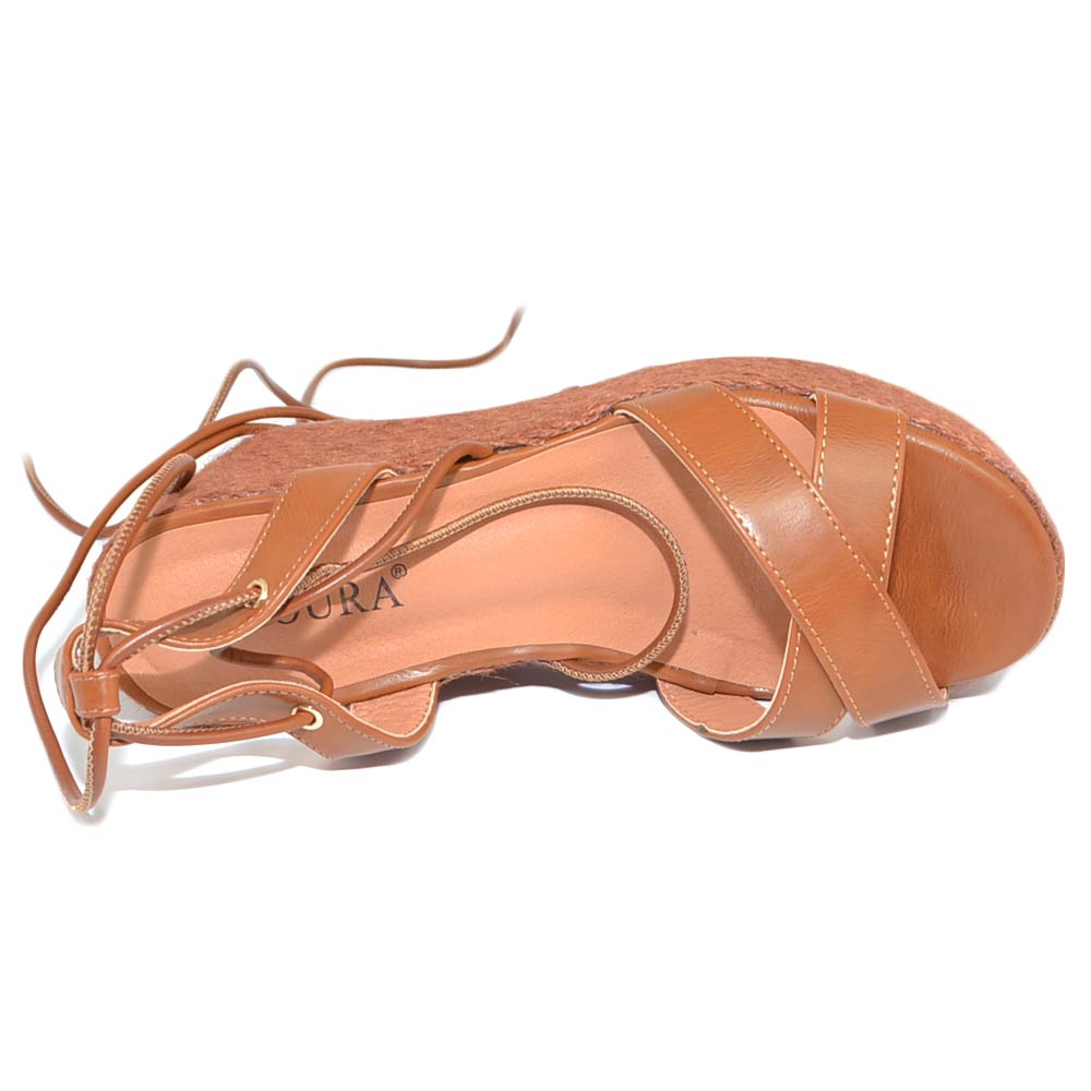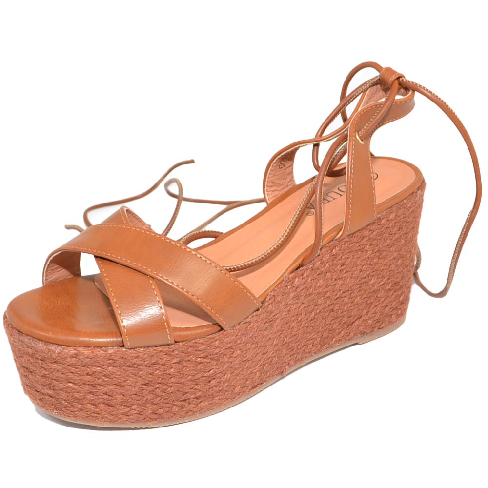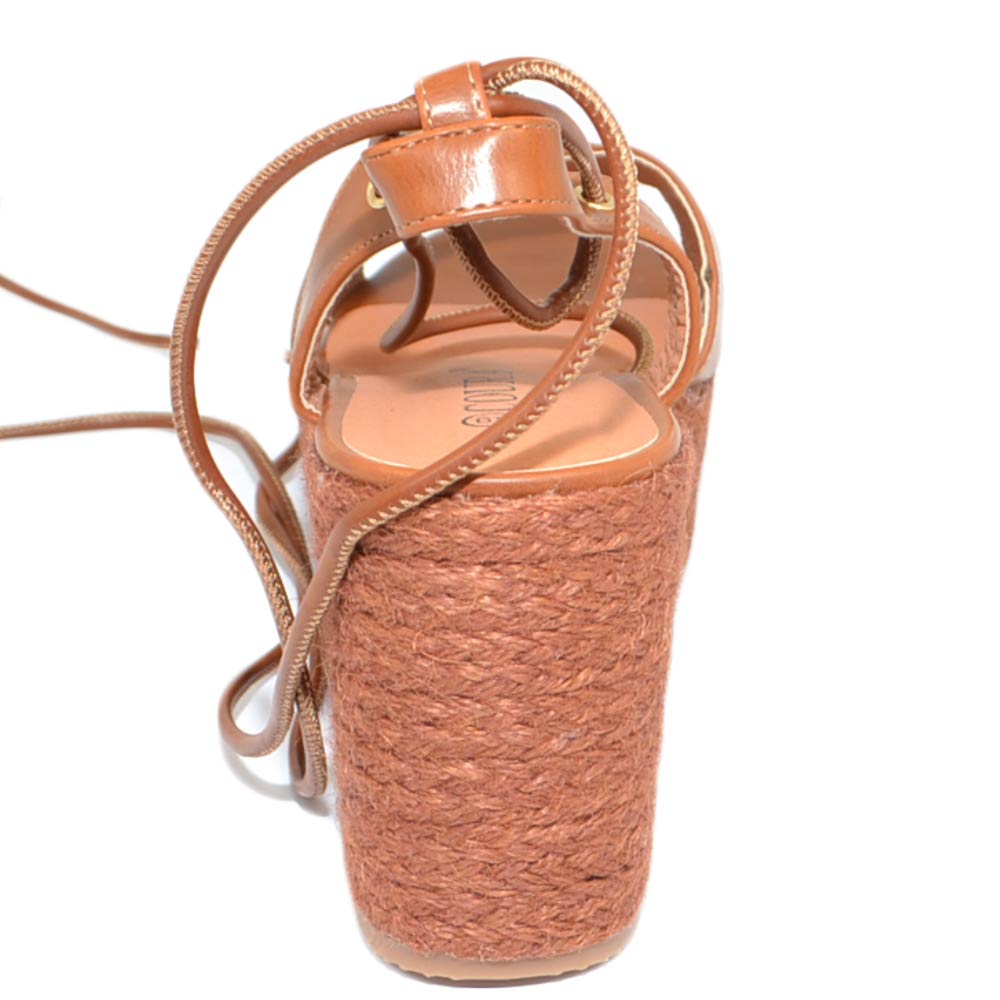 Zeppa donna cuoio con fascia geisha intrecciata e laccio alla schiava con fondo paglia moda estate donna Positano
