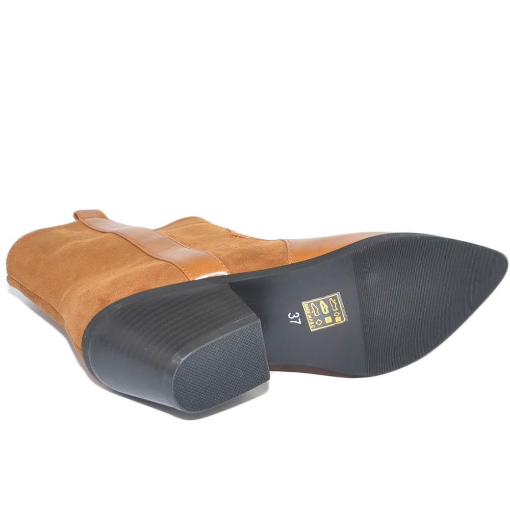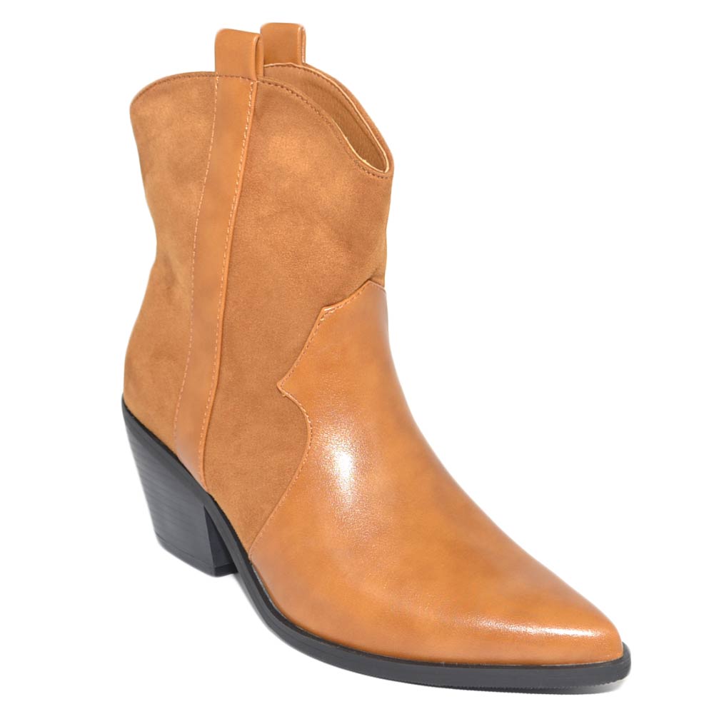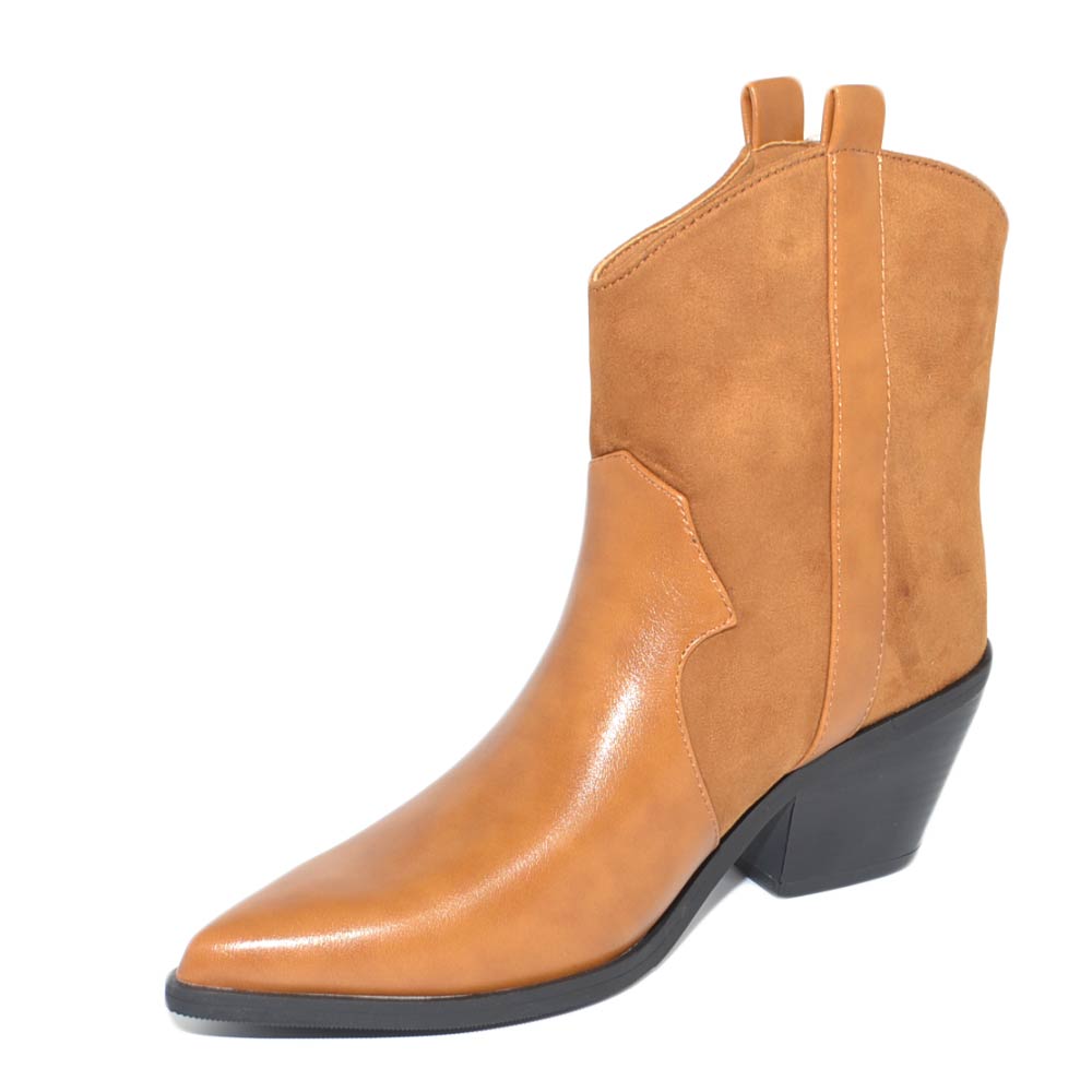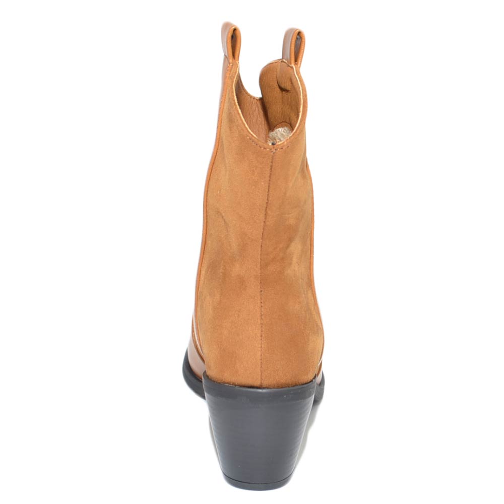 Stivaletti camperos donna cuoio texano tacco western 5 cm comodo a punta con zip pelle e camoscio moda