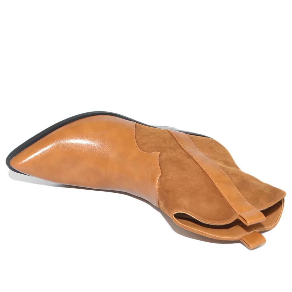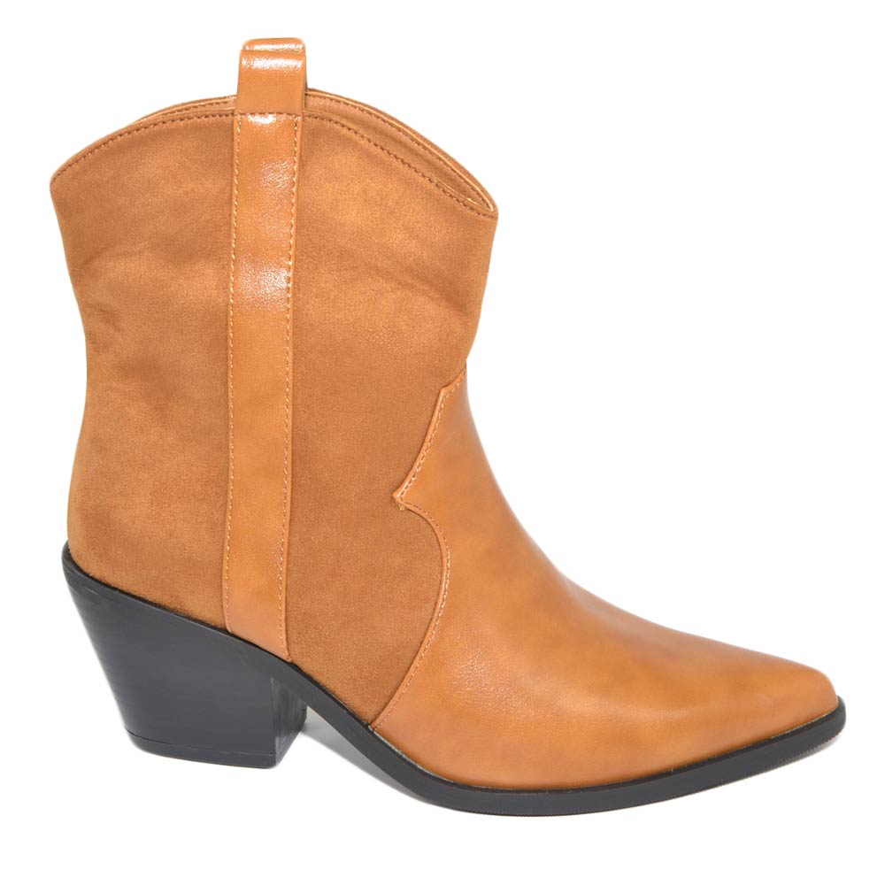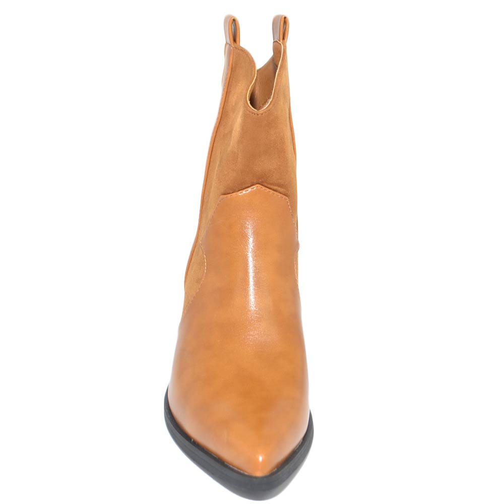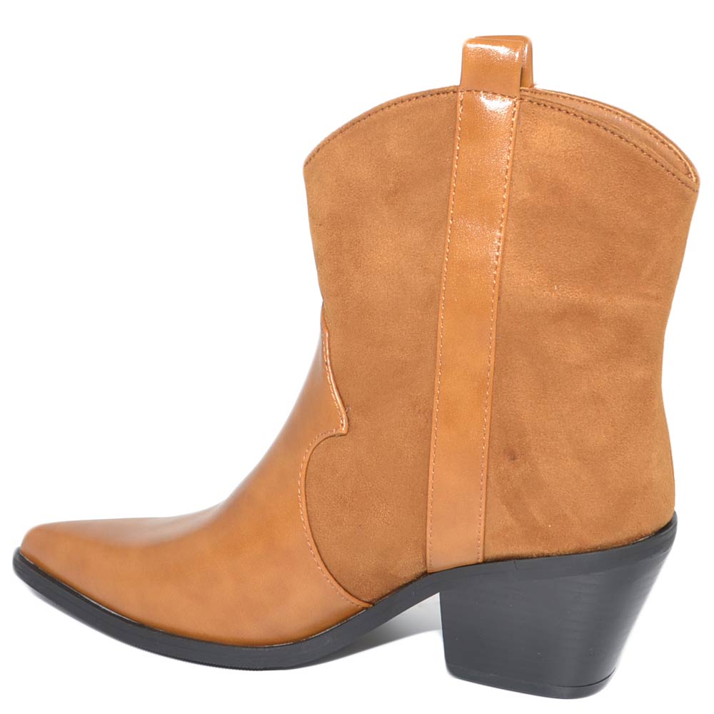 Stivaletti camperos donna cuoio texano tacco western 5 cm comodo a punta con zip pelle e camoscio moda
