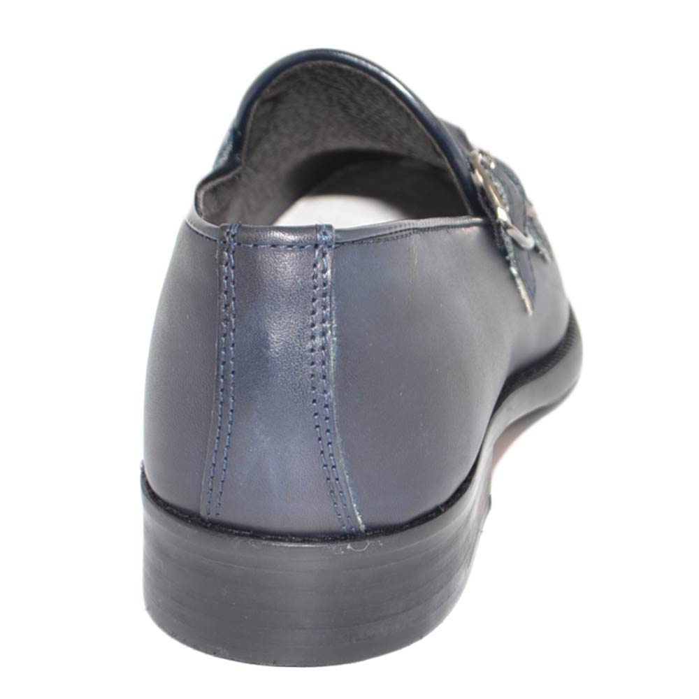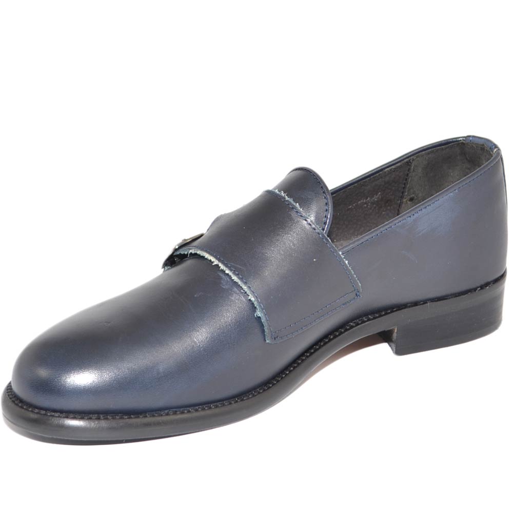 Scarpe uomo mocassino con fibbia doppia blu sottile derby vintage in vera pelle crust slip on business fondo vero cuoio