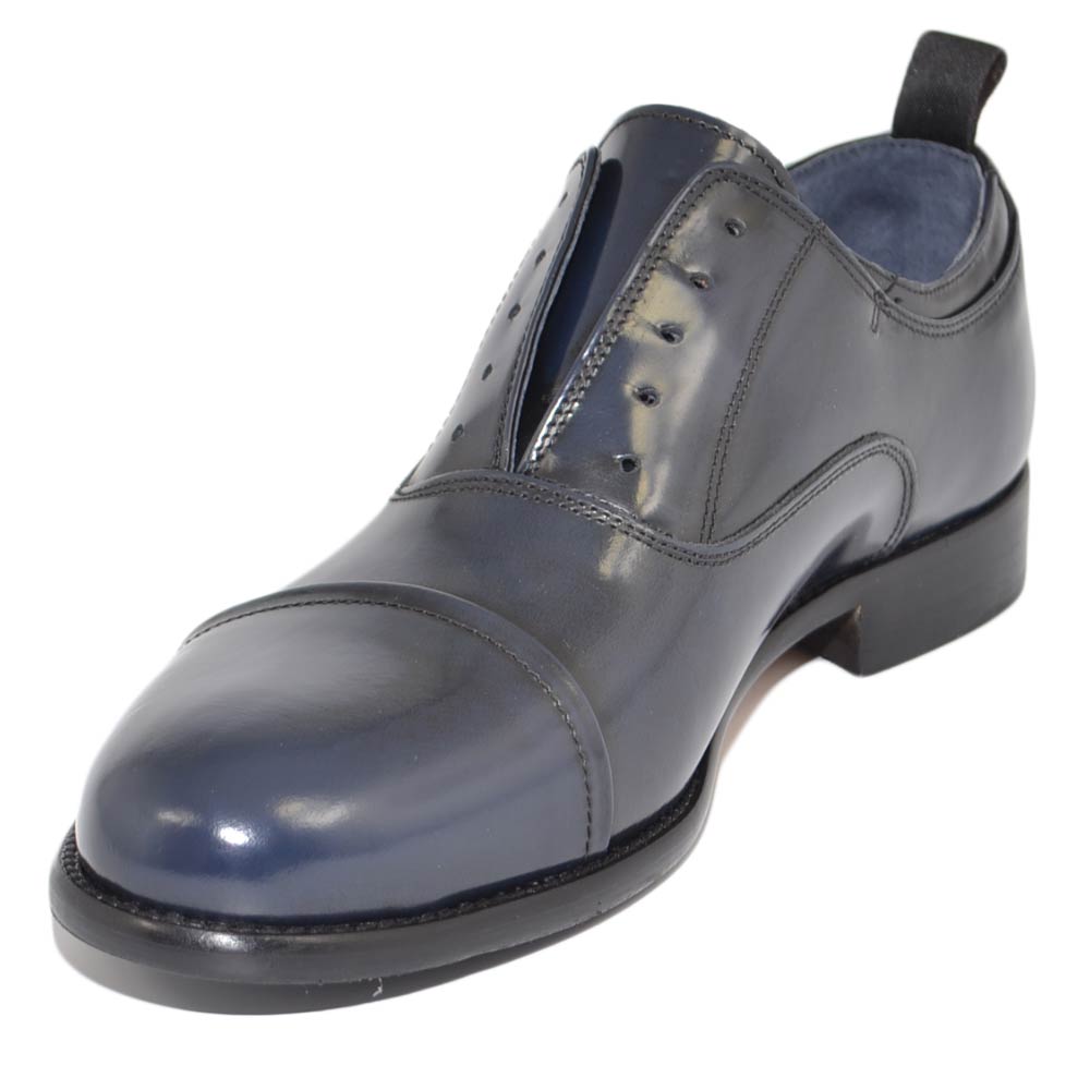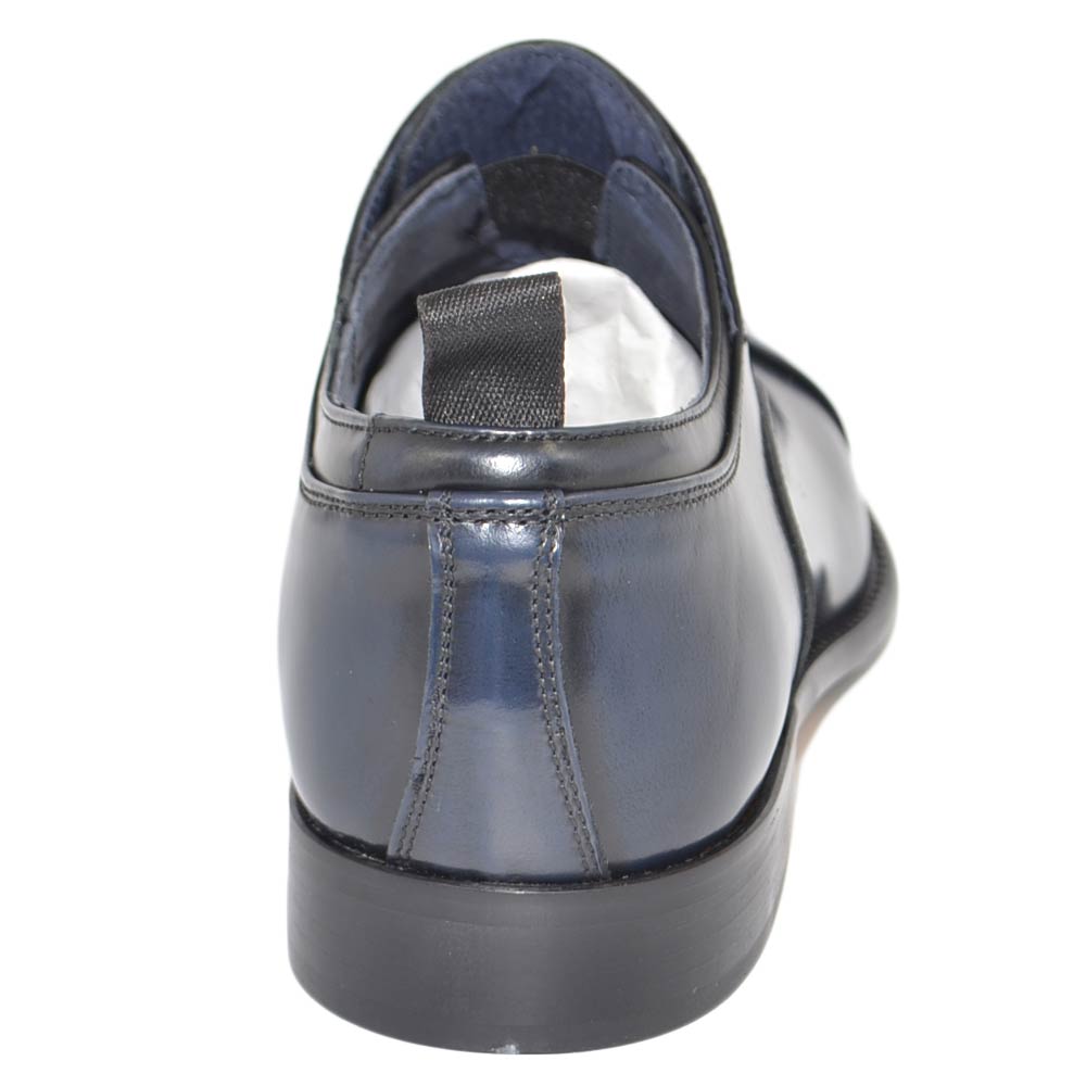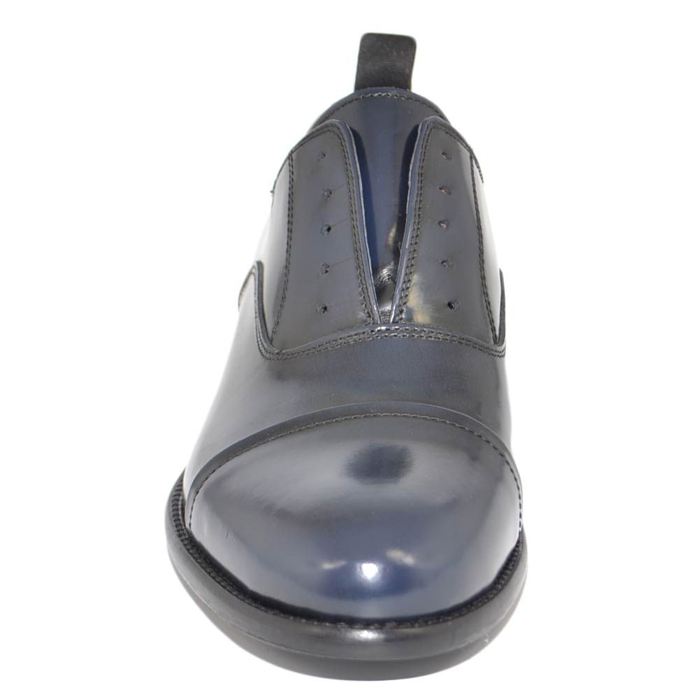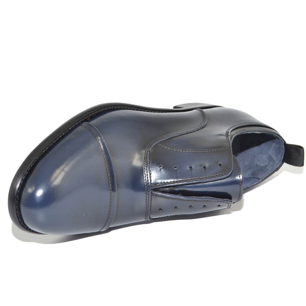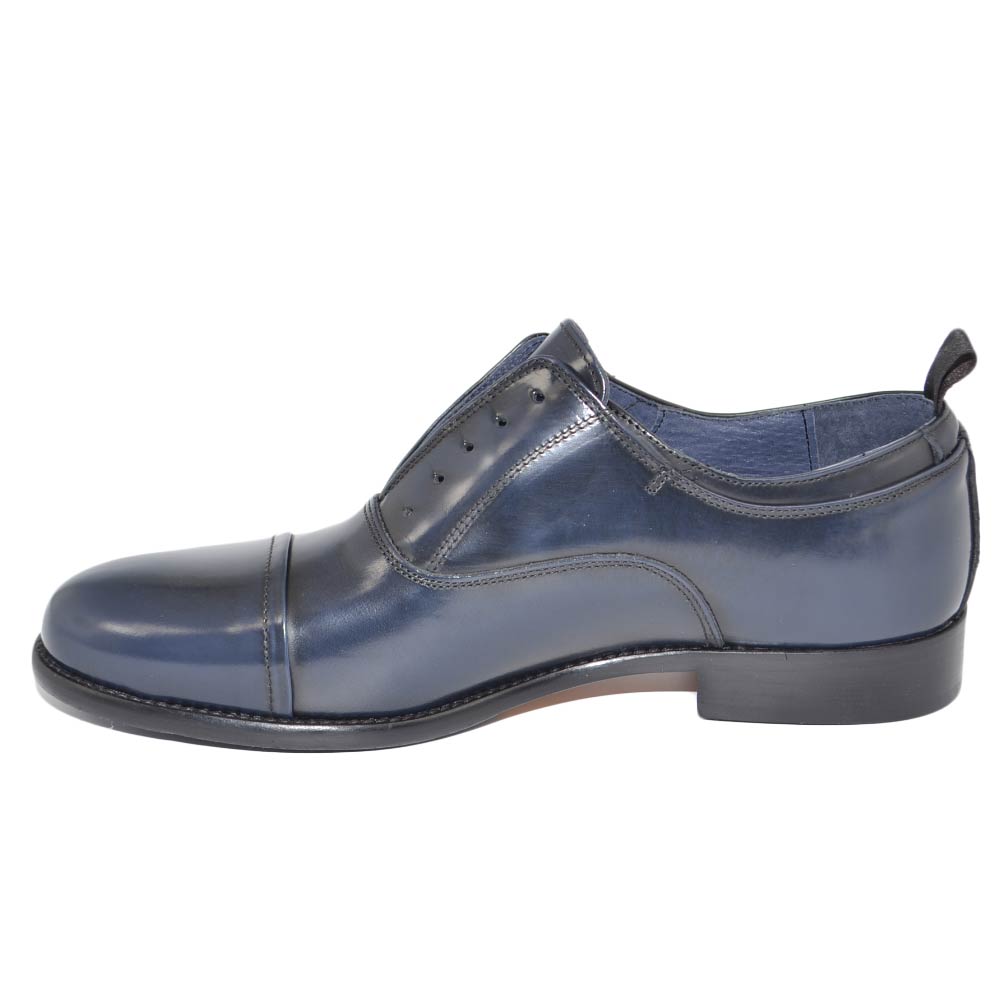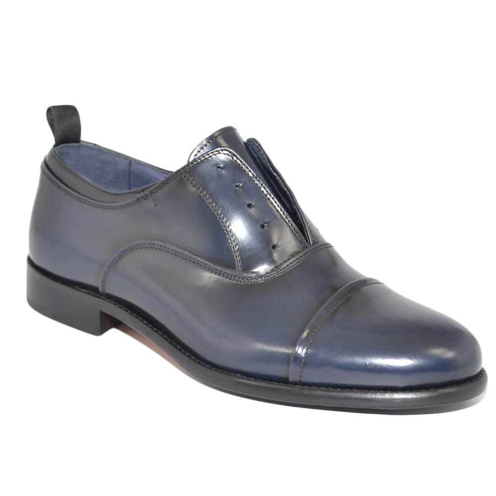 Scarpe uomo stringata elastico inglese punta alzata vera pelle lucida blu made in italy fondo vero cuoio con antiscivolo