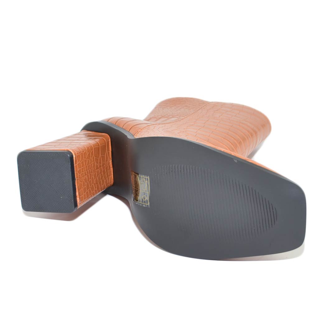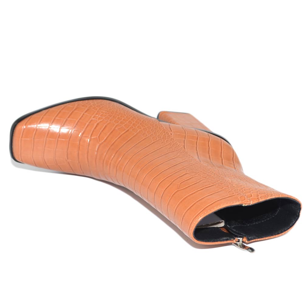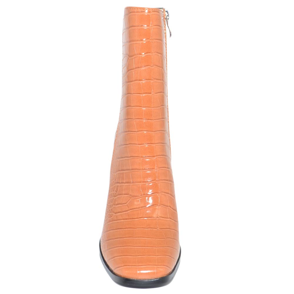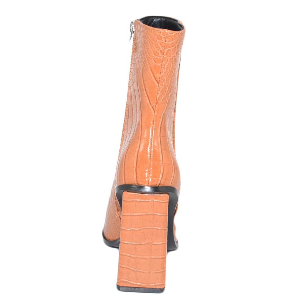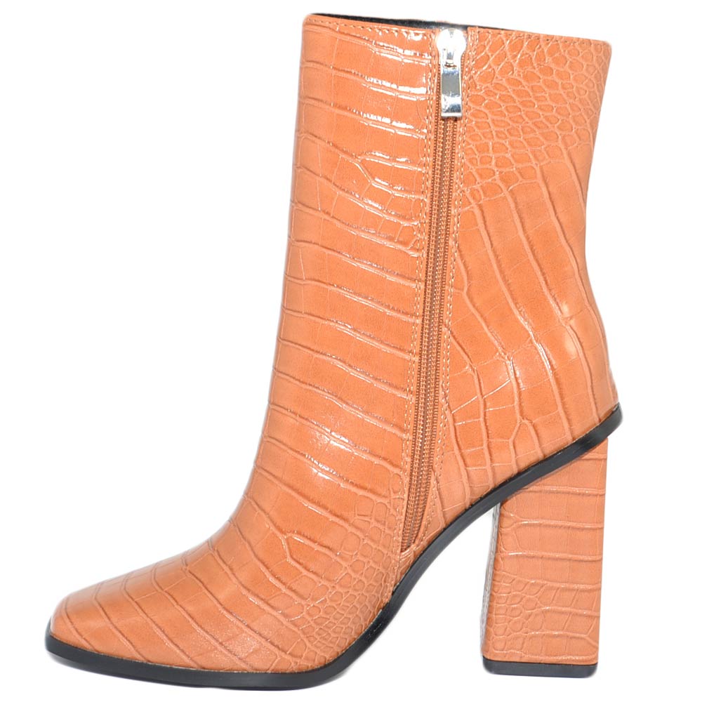 Stivaletti alti tronchetti donna pelle cuoio punta quadrata con stampa animalier tacco quadrato 8cm tono su tono