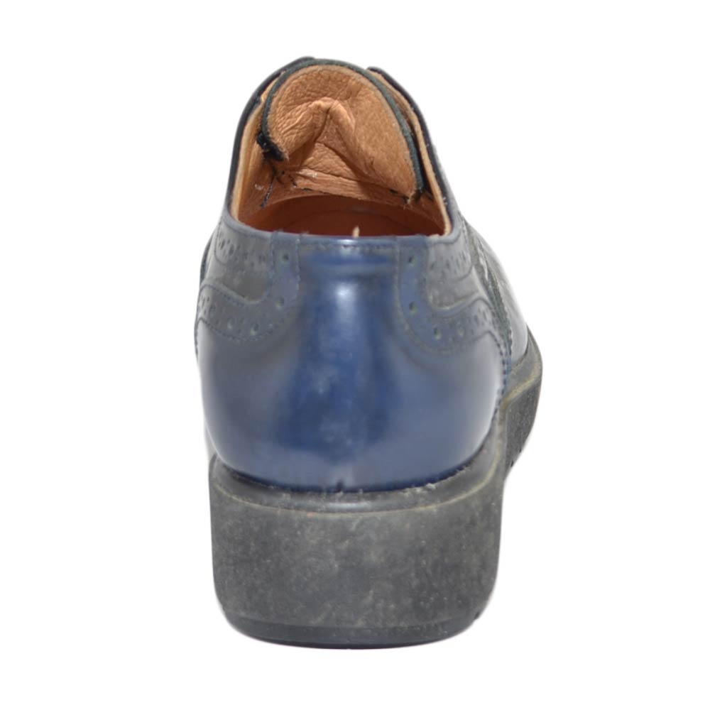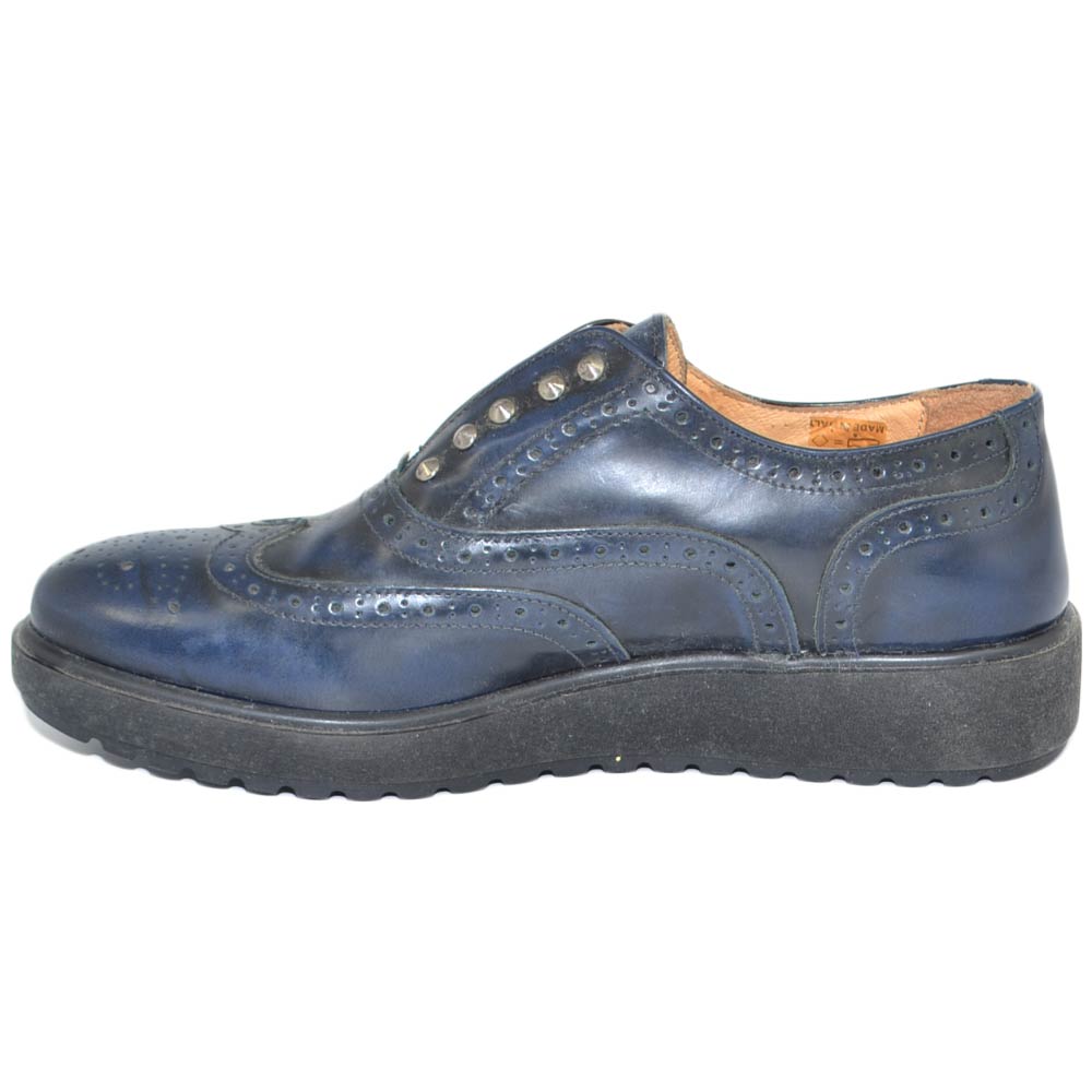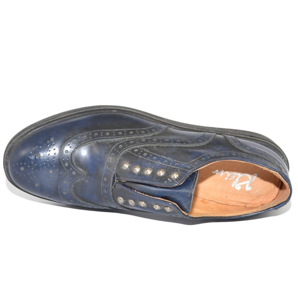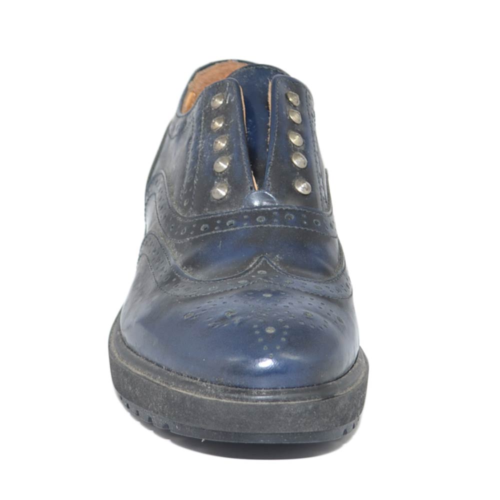 Scarpe francesina donna blu senza lacci con borchie vera pelle abrasivata punta tonda gomma comfort made in Italy
