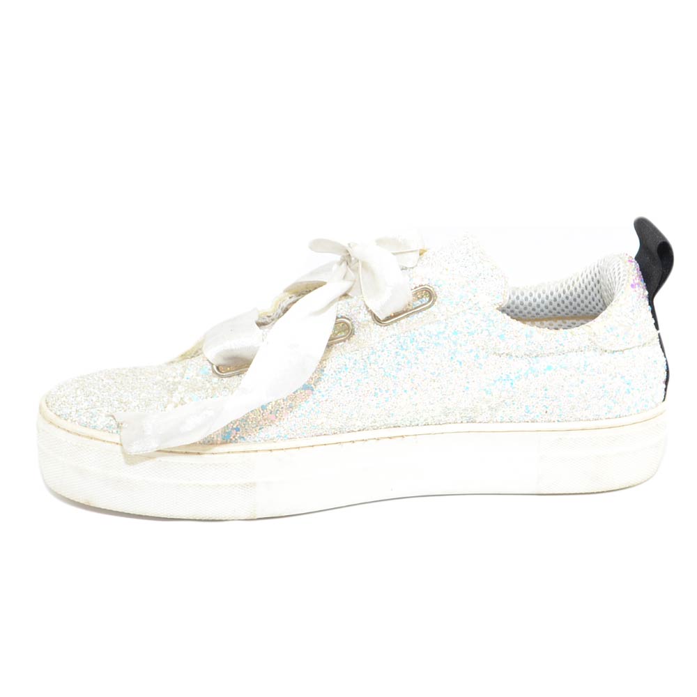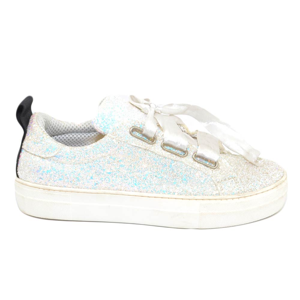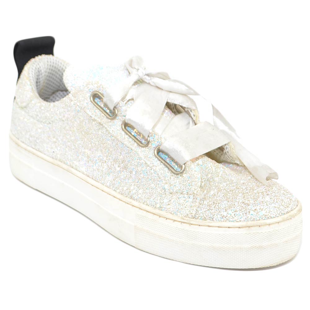Sneaker donna glitterata bianca ghiaccio vera pelle chiusura nastri made in italy risvoltabili fondo bianco alto glamour