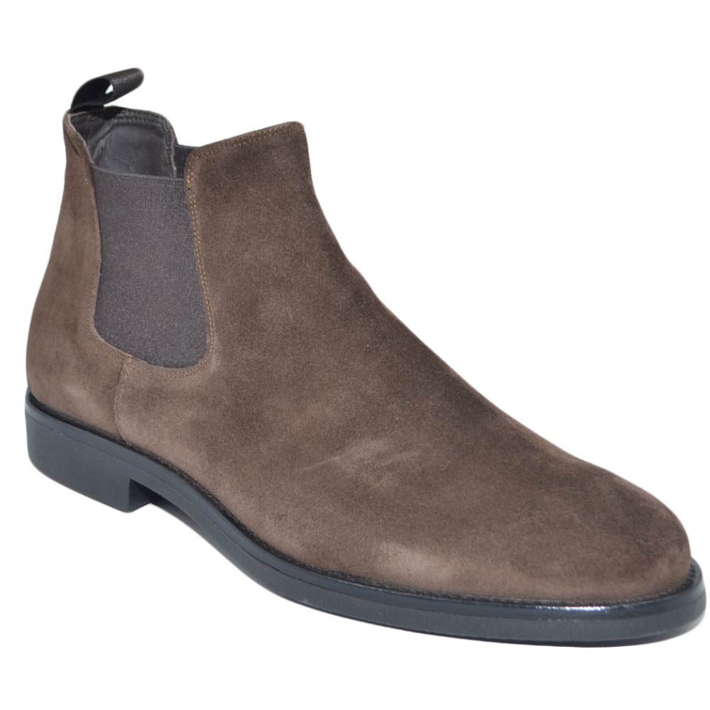Beatles uomo stivaletto con elastico in vera pelle scamosciata marrone collo basso fondo roccia made in italy handmade