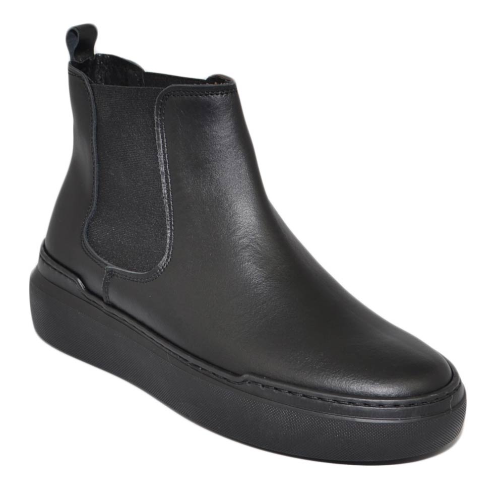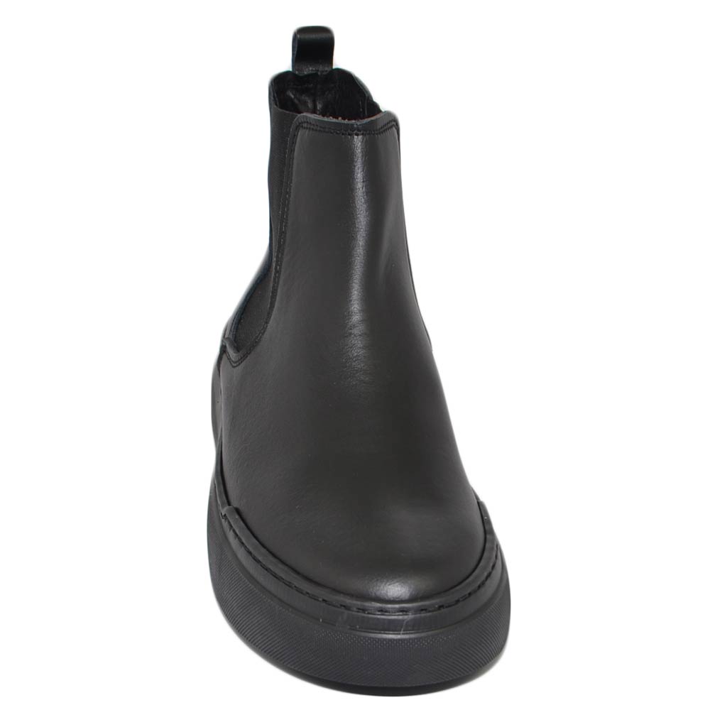 Beatles uomo stivaletto con elastico in vera pelle morbida nera suola gomma alta nera sportiva made in italy handmade