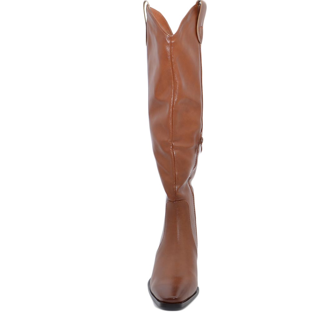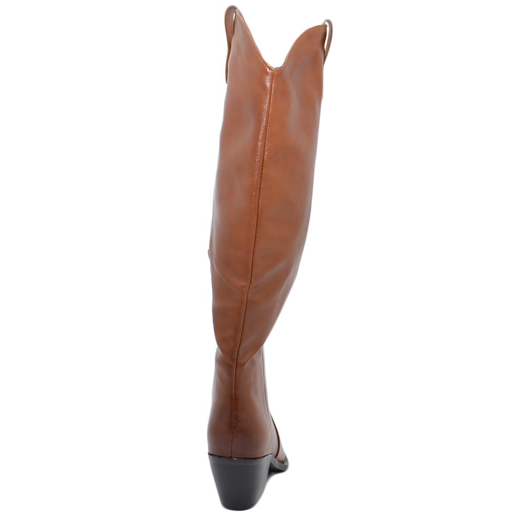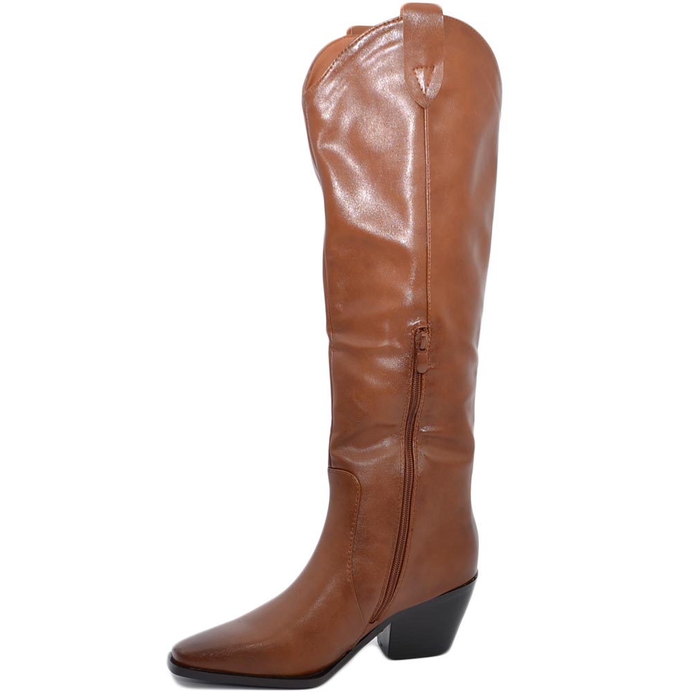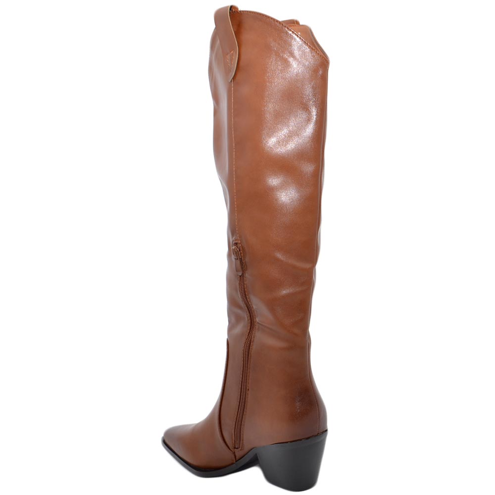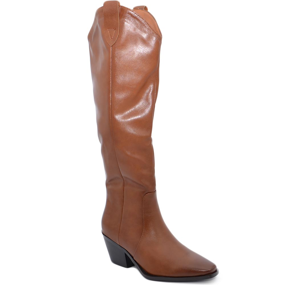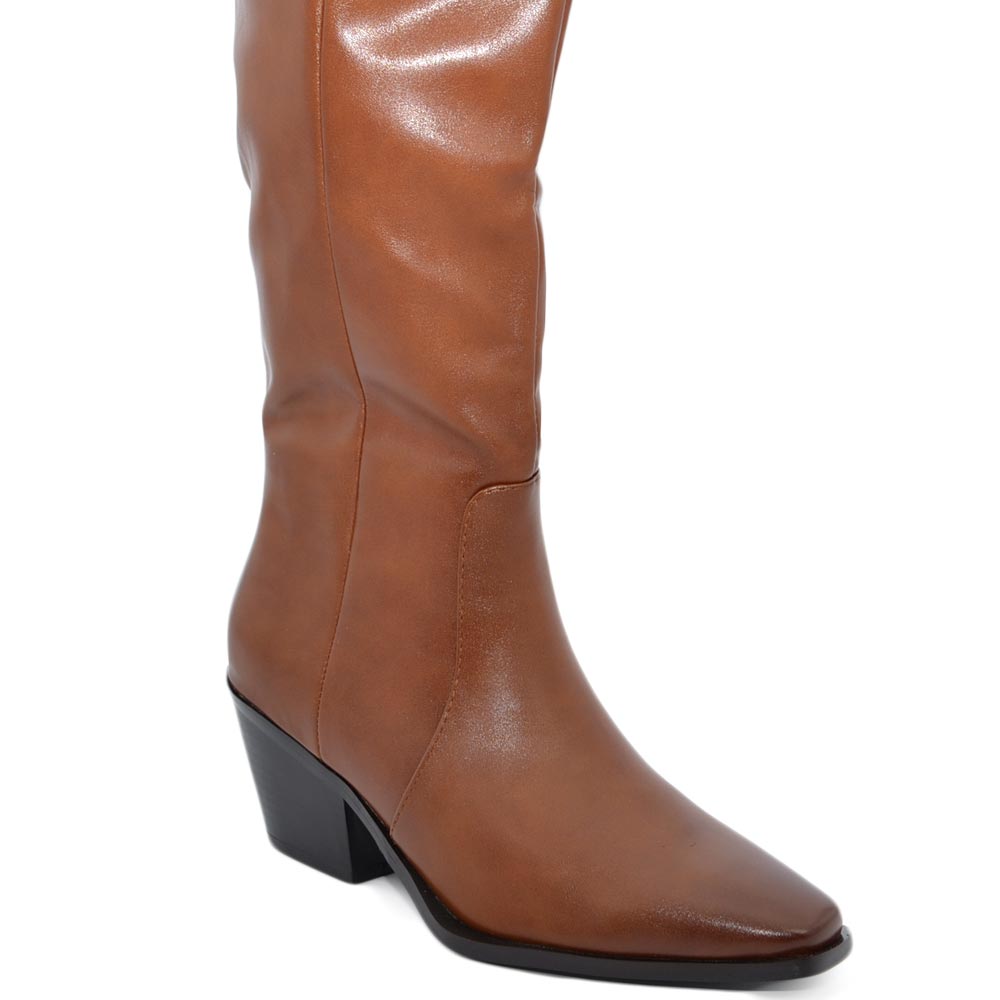 Stivali donna camperos a punta quadrata cuoio fatti texani lisci linea basic tacco comodo 3 cm alti al ginocchio