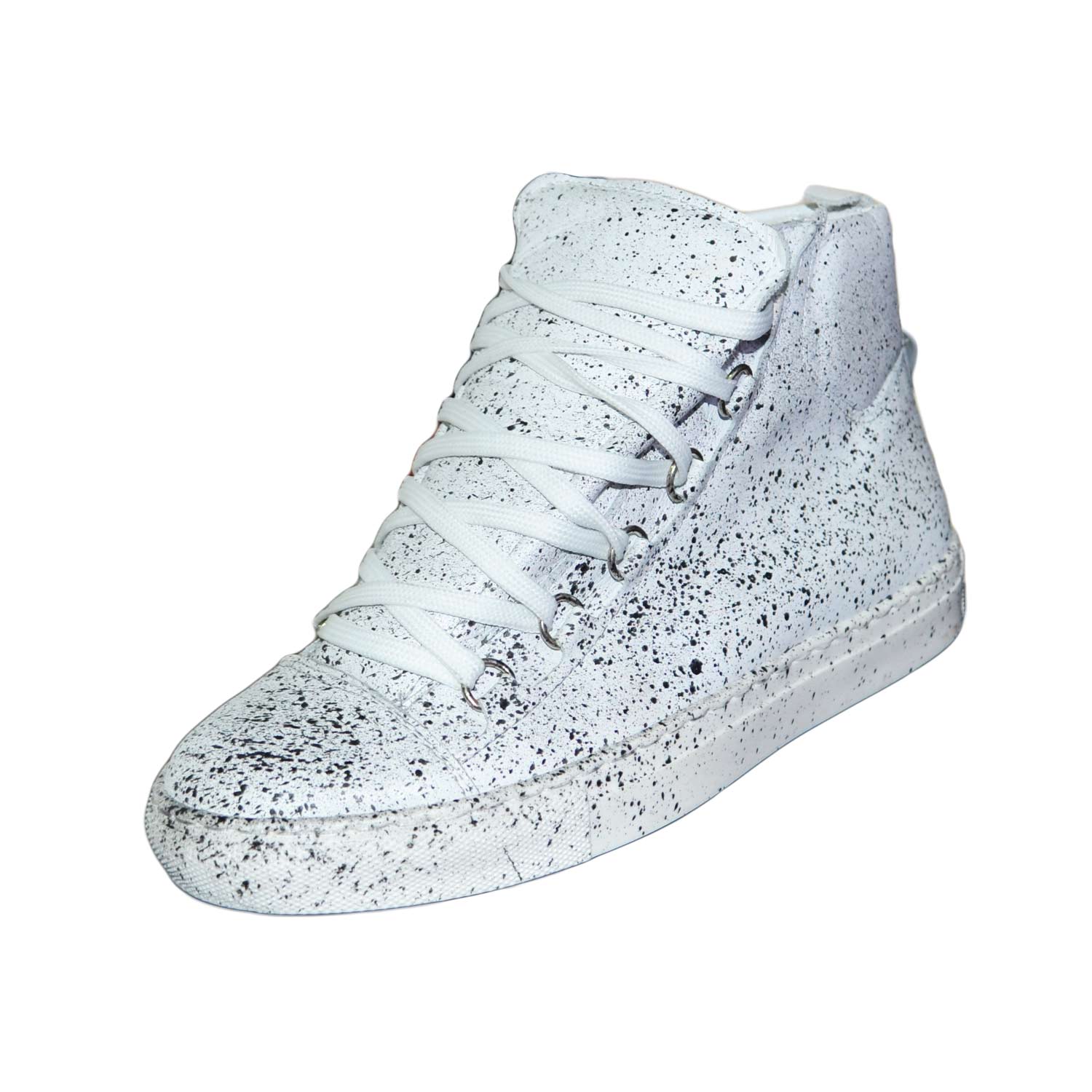 Sneakers Alte Uomo Schizzate Vera Pelle Bianco Balen
