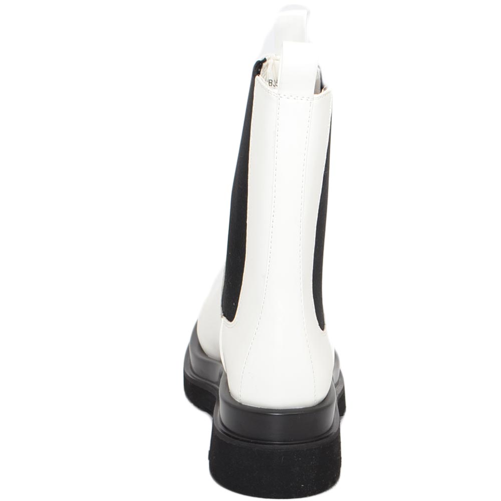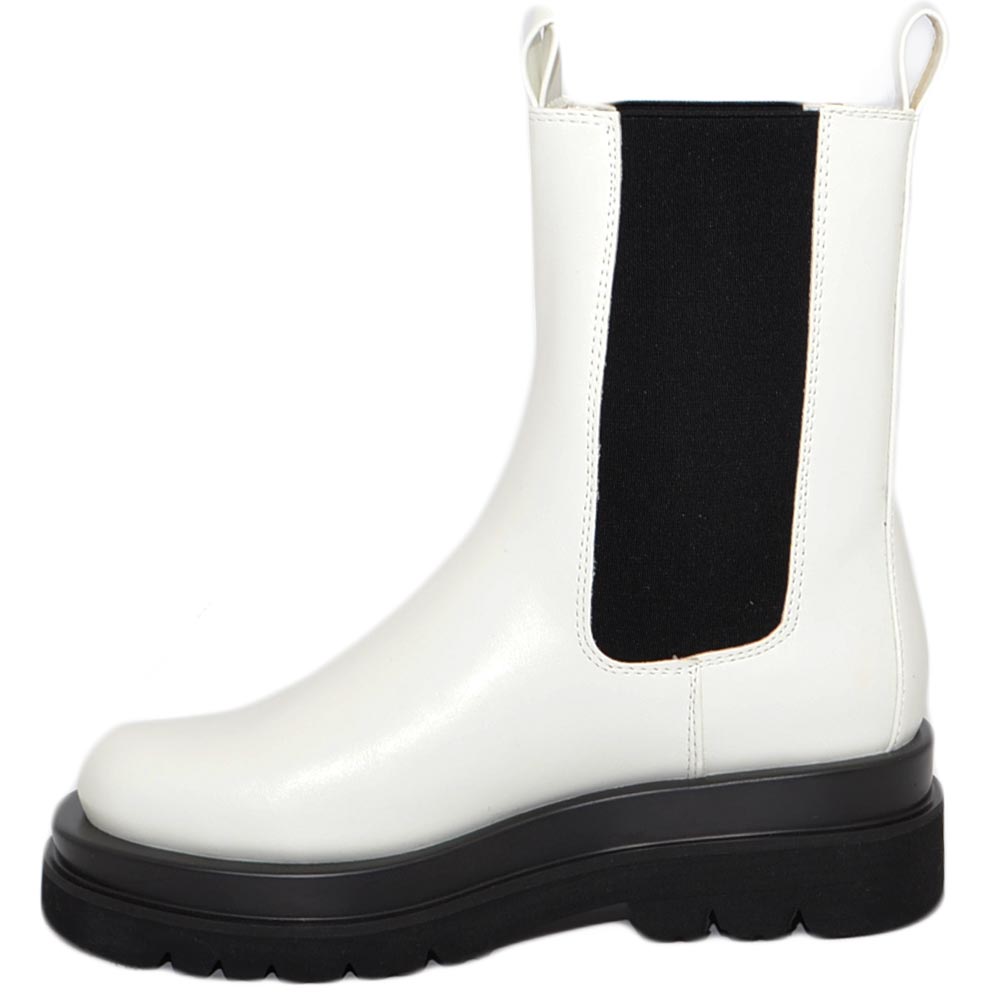 Stivale donna aderente bianco chelsea boot meta' polpaccio elastico fondo alto platform nero carro armato con zip moda