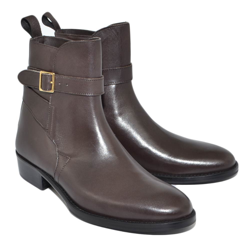 Scarpe uomo beatles chelsea vera pelle nero spazzolato con fibbia nera fondo gomma invernale made in italy.