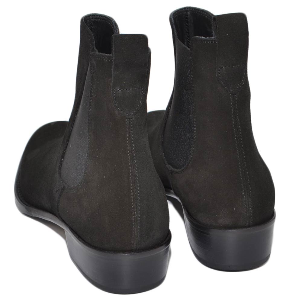 Scarpe uomo chelsea beatles in vero camoscio nero con elastico laterale e fondo in vero cuoio artigianale made in italy.