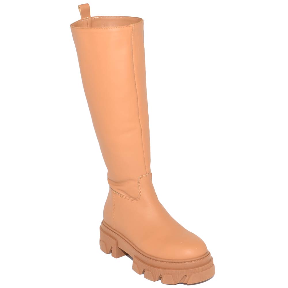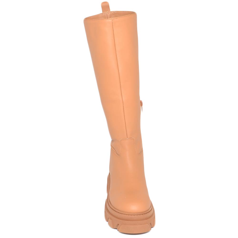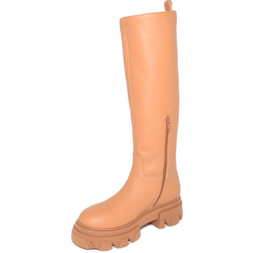 Stivali donna ls luisantiago xena platform boots in vera pelle di nappa cuoio fondo alto zip handmade in italy