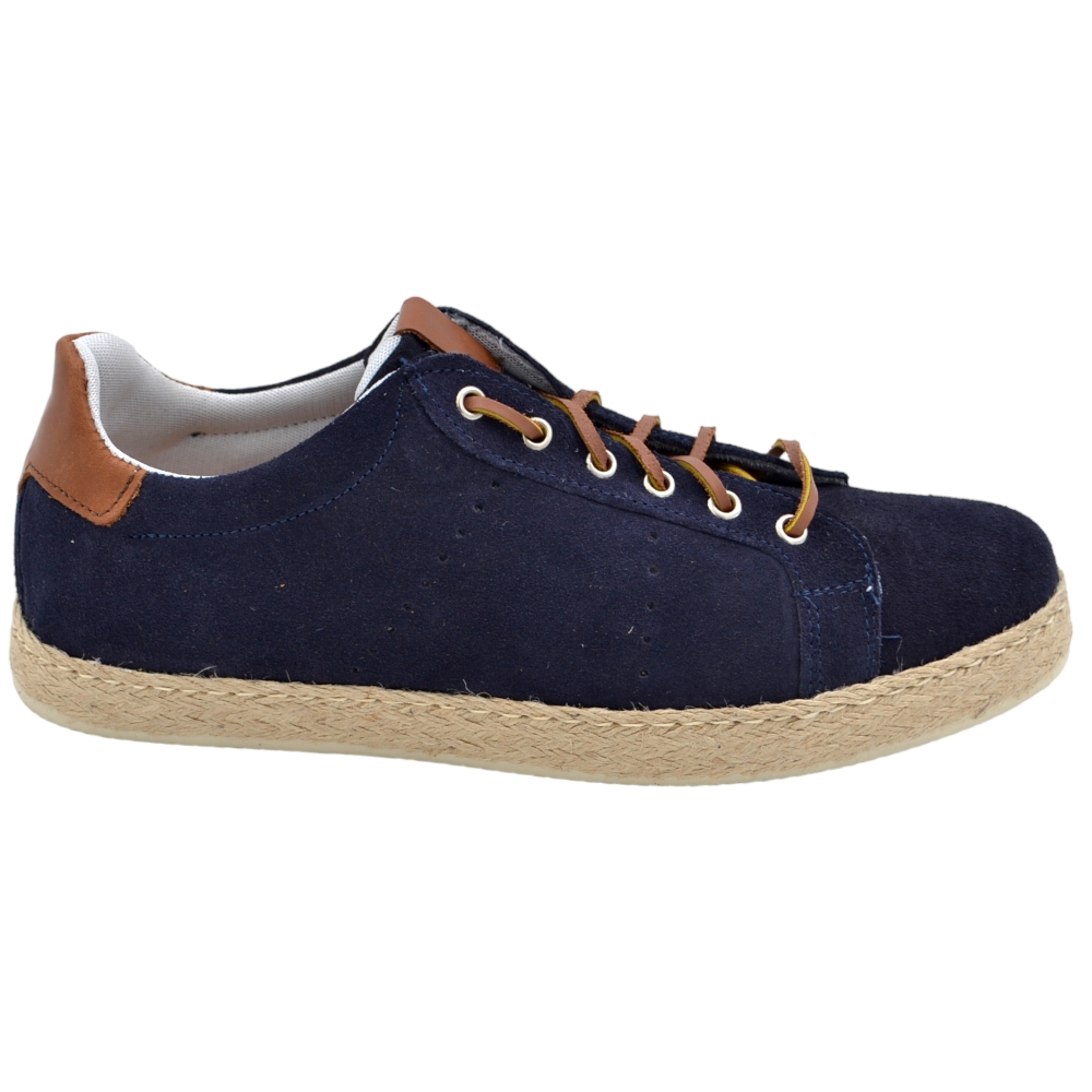 Sneakers uomo in vera pelle scamosciata blu con talloncino in pelle bianca gomma comfort casual made in Italy moda.