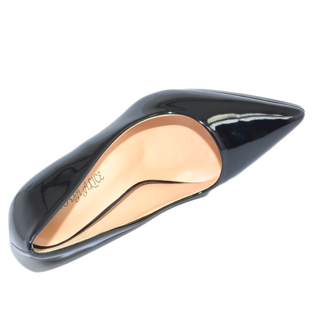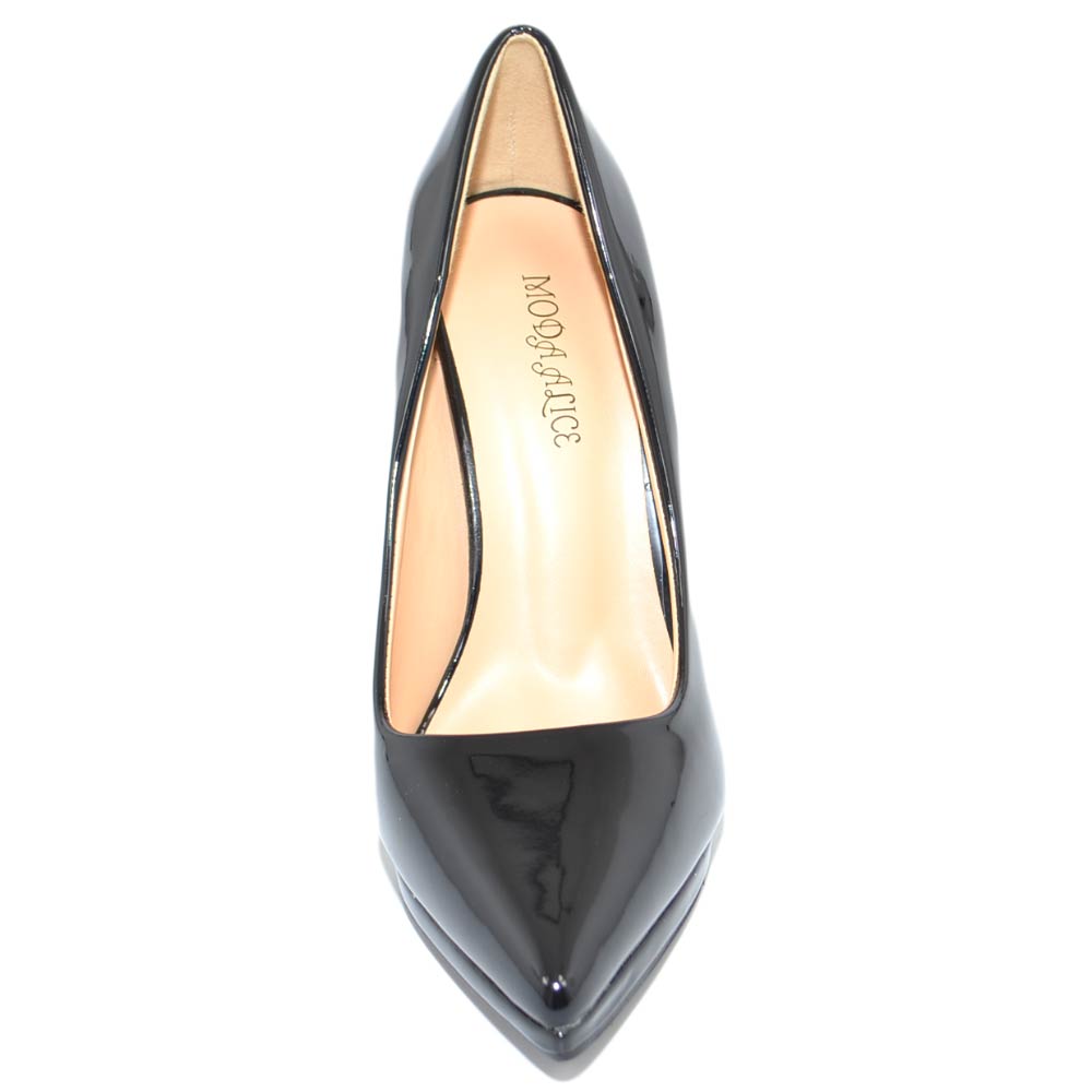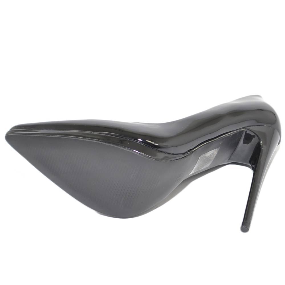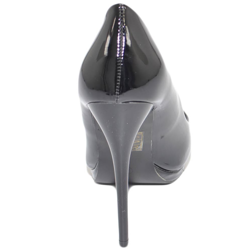 Decollete' donna a punta nero tacco a spillo 12 cm lucido vernice comode plateau scarpe per cerimonie eventi