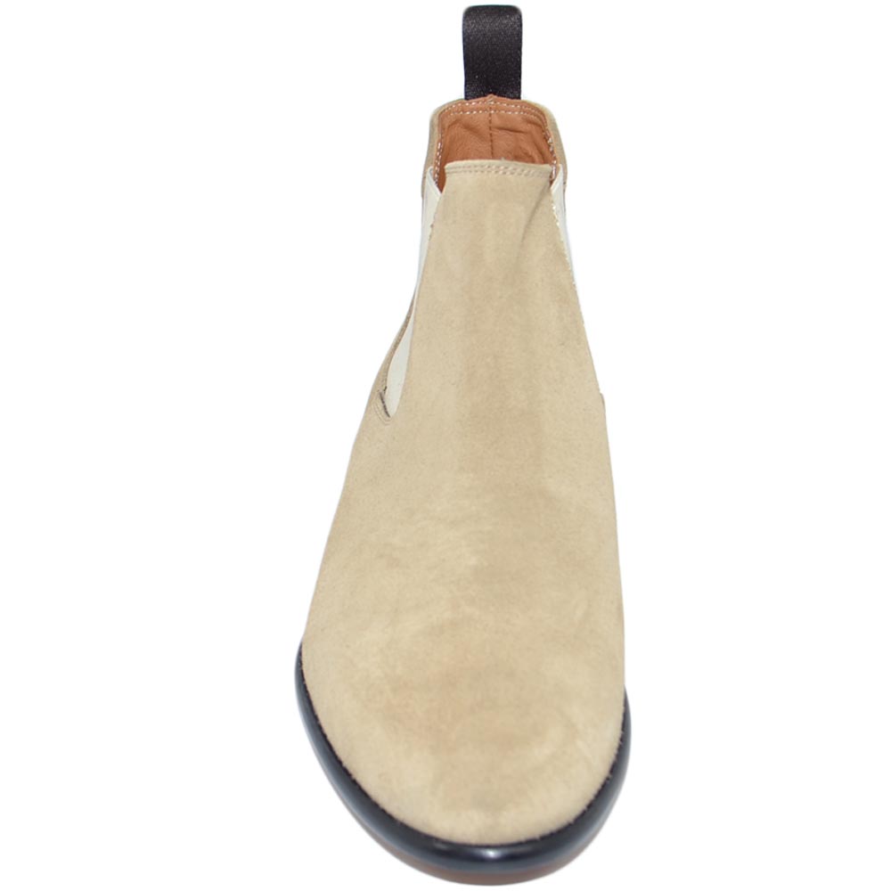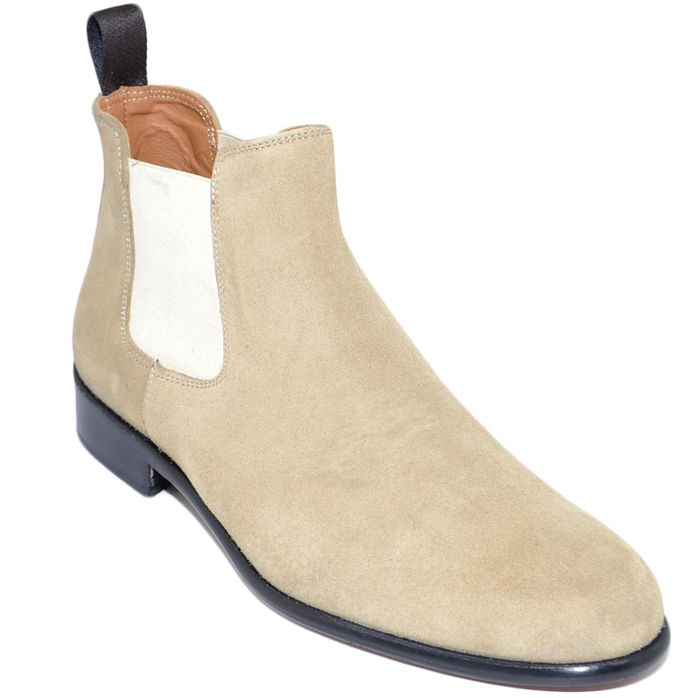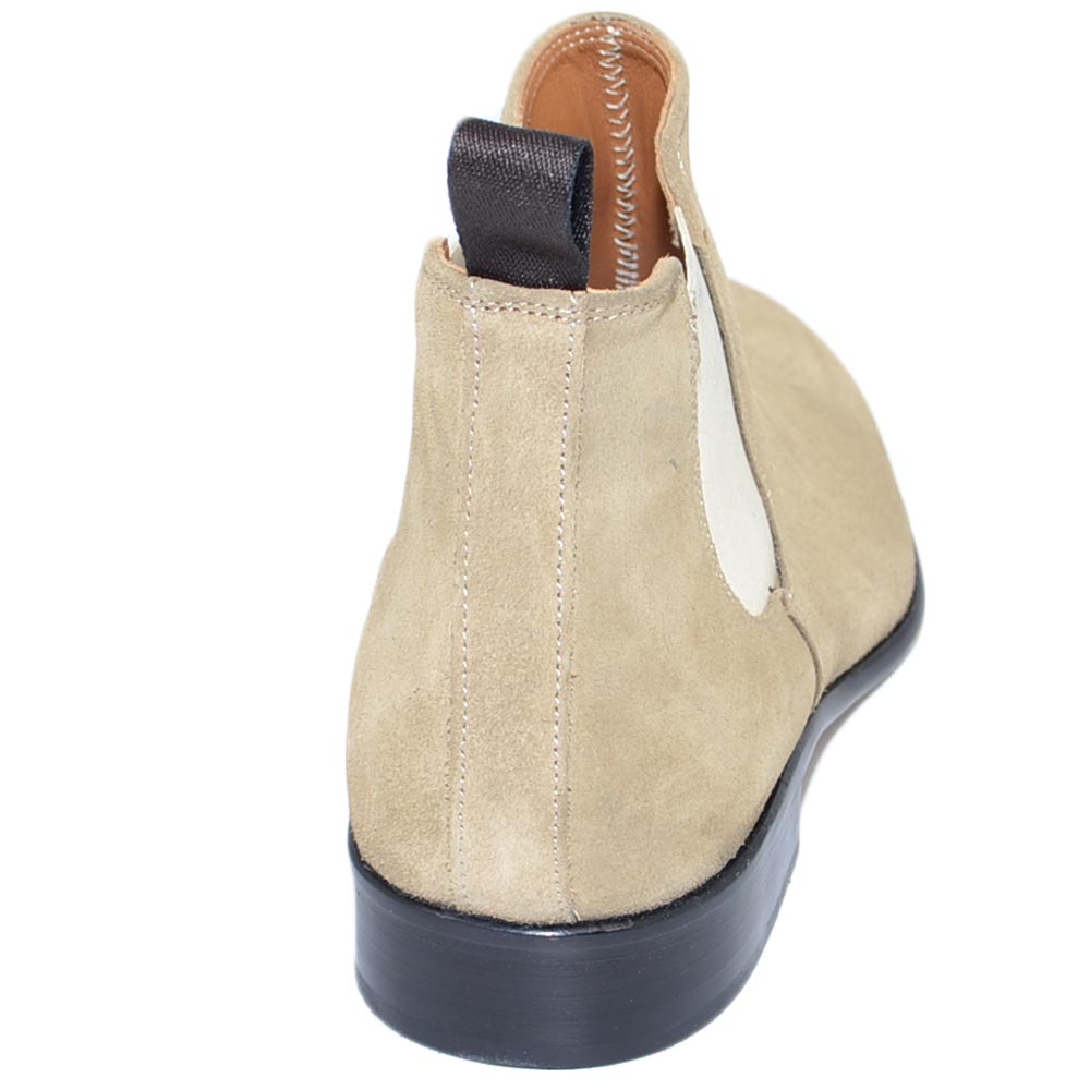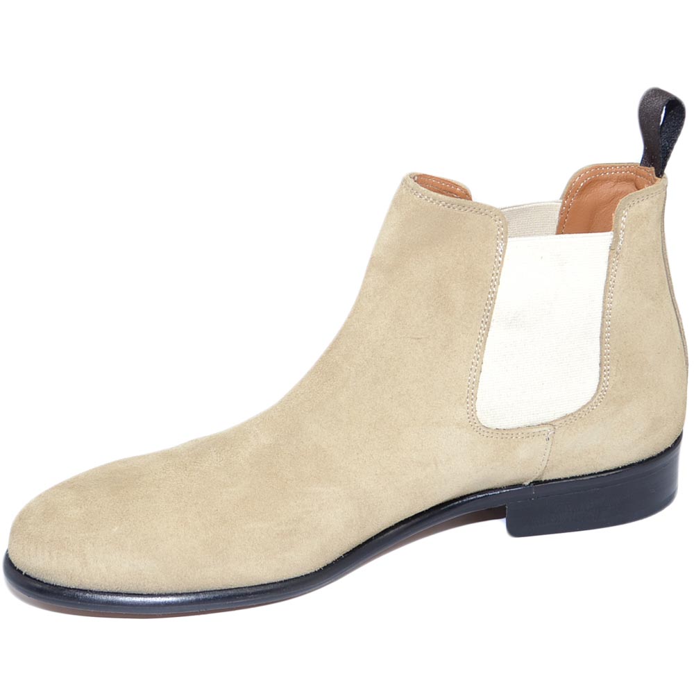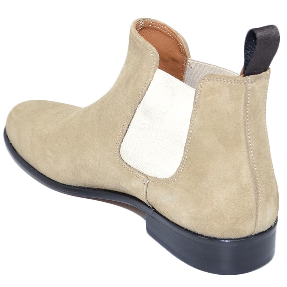 Beatles uomo stivaletto con elastico in vera pelle scamosciata beige collo basso fondo cuoio handmade in Italy business