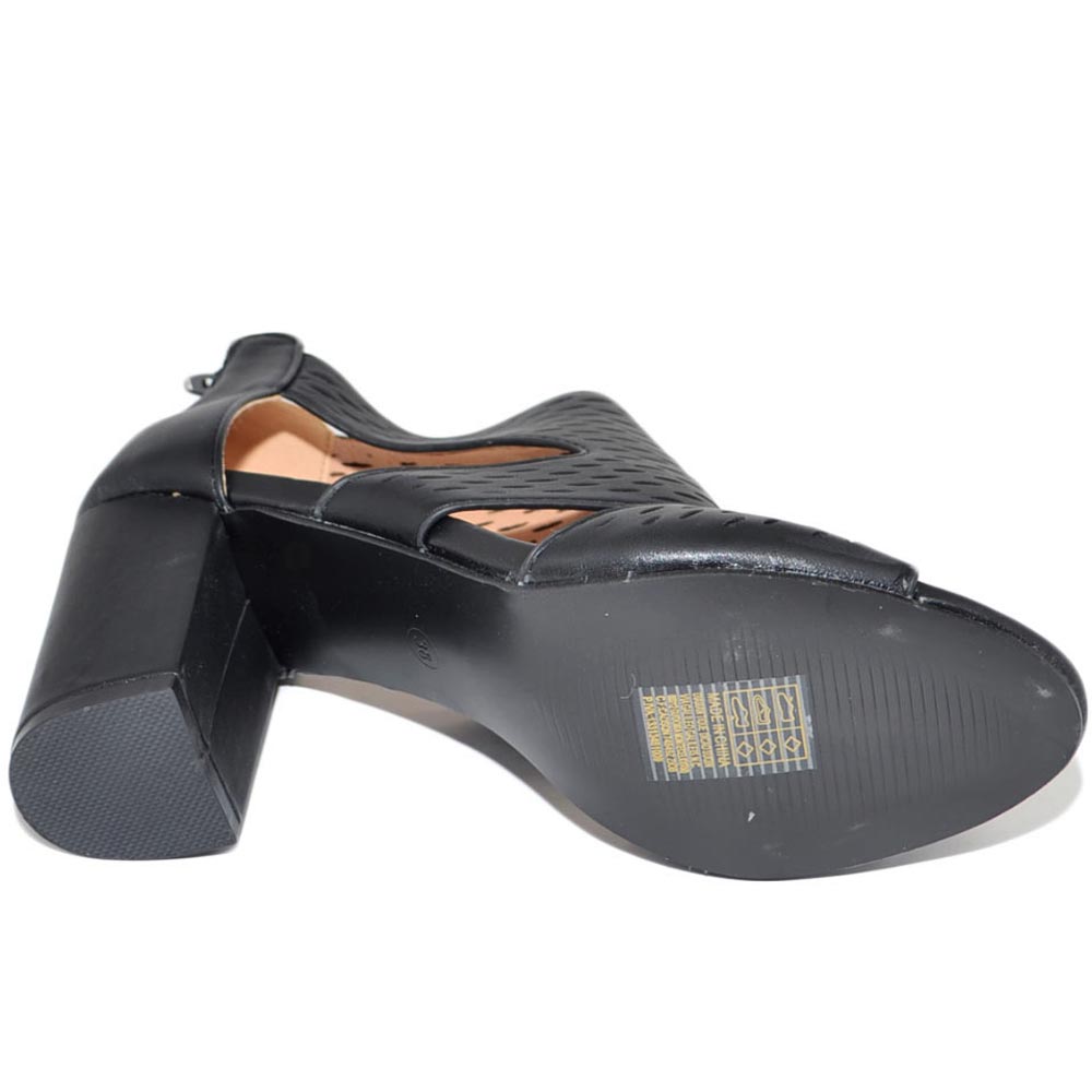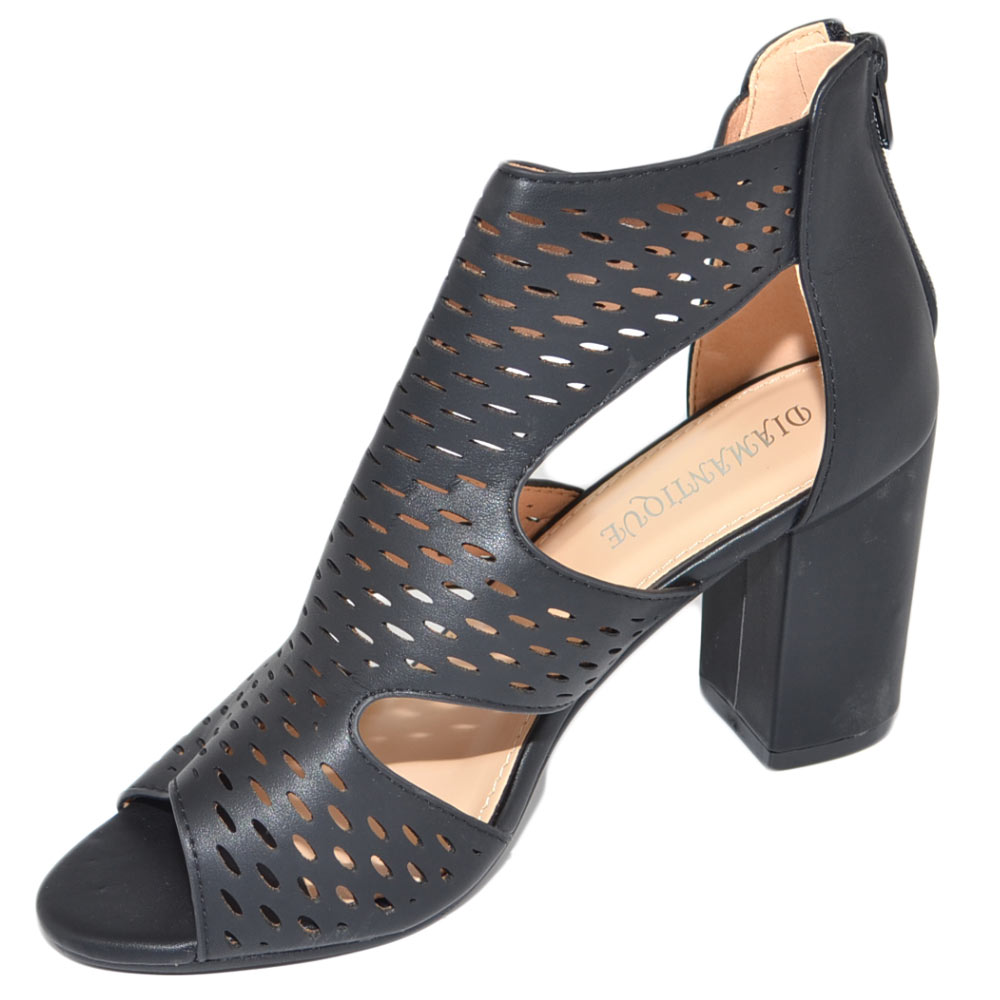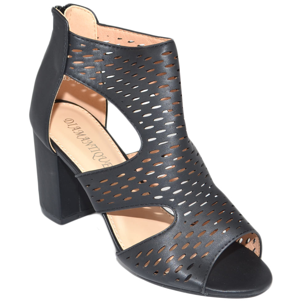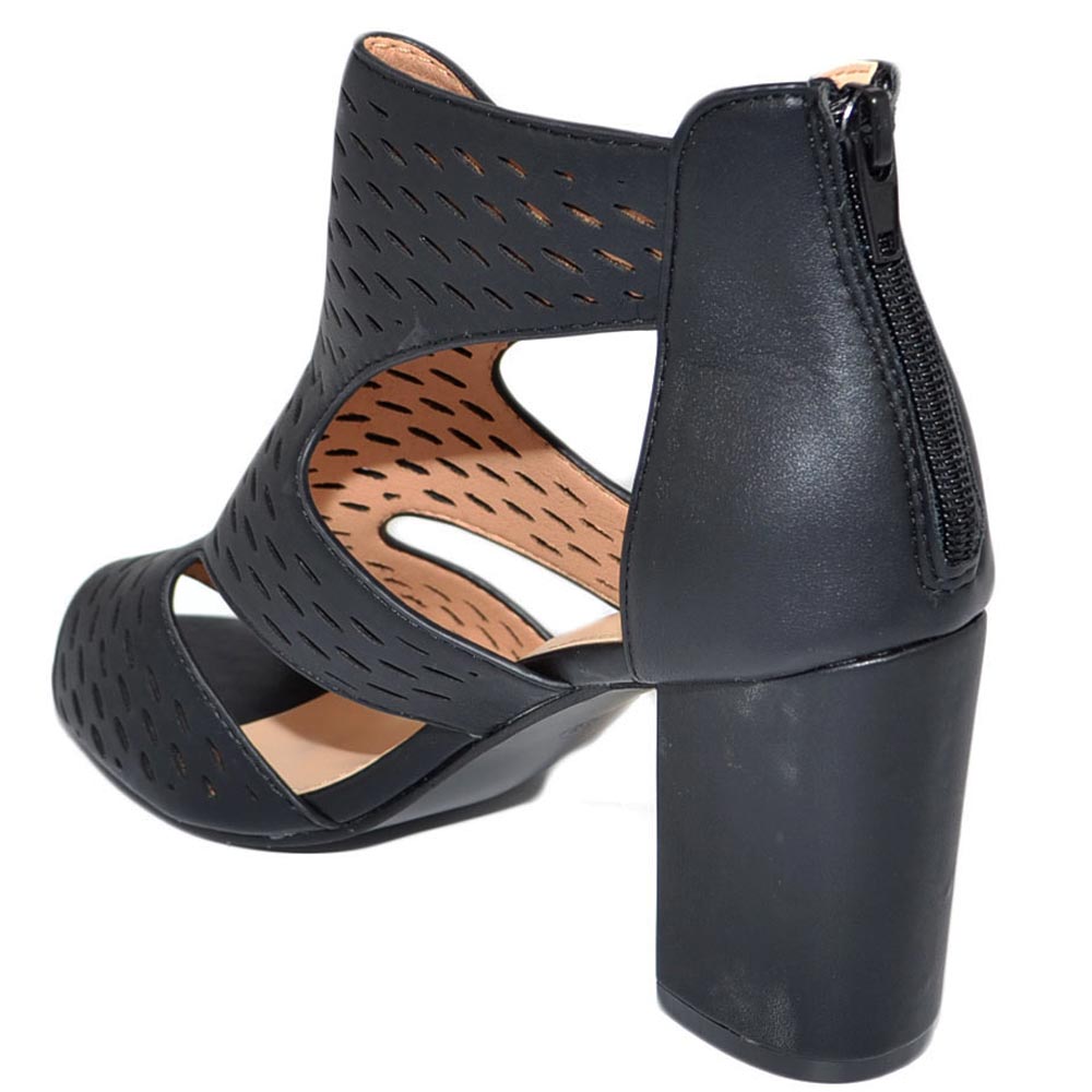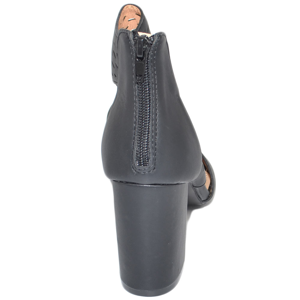 Tronchetto donna estivo nero forato fresco con tacco largo comodo 5 aperto ai lati con zip