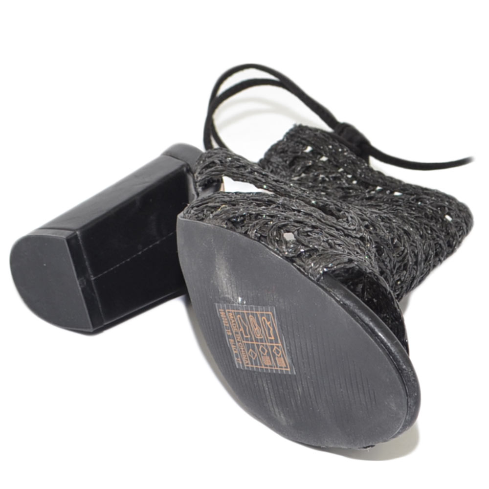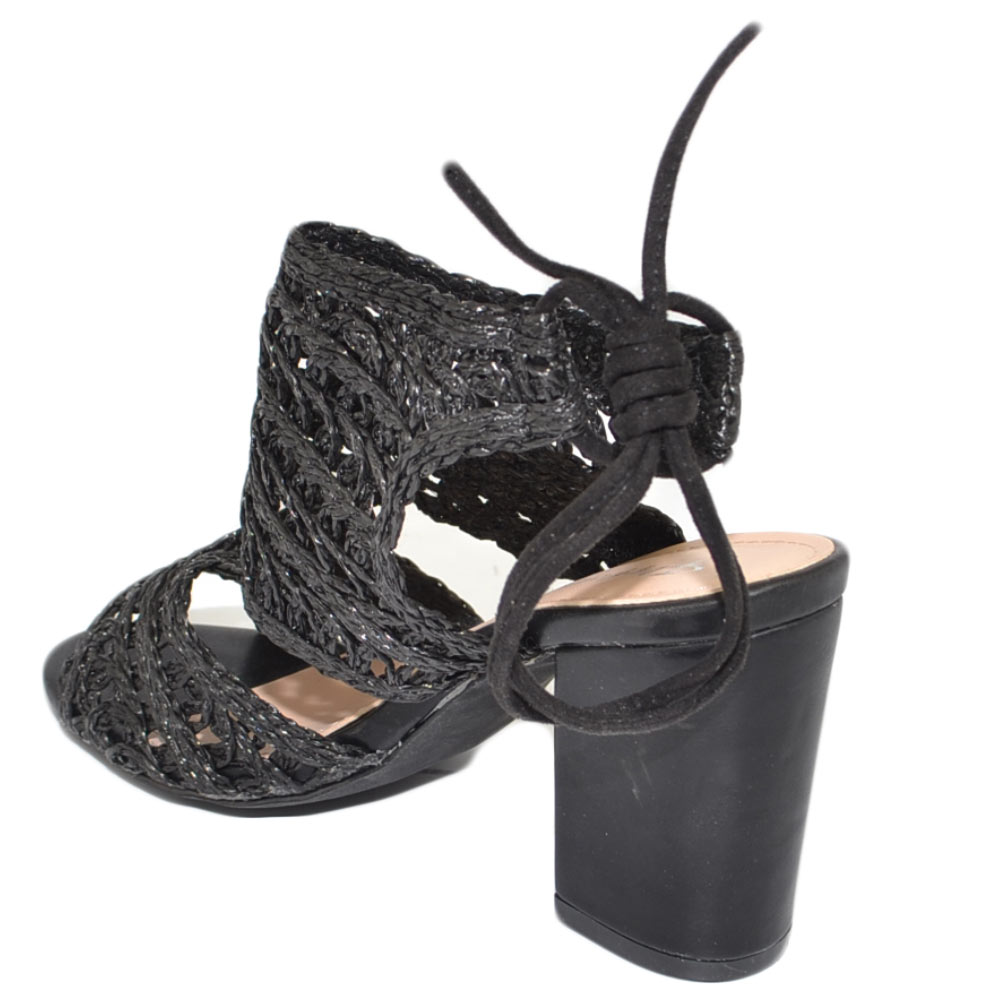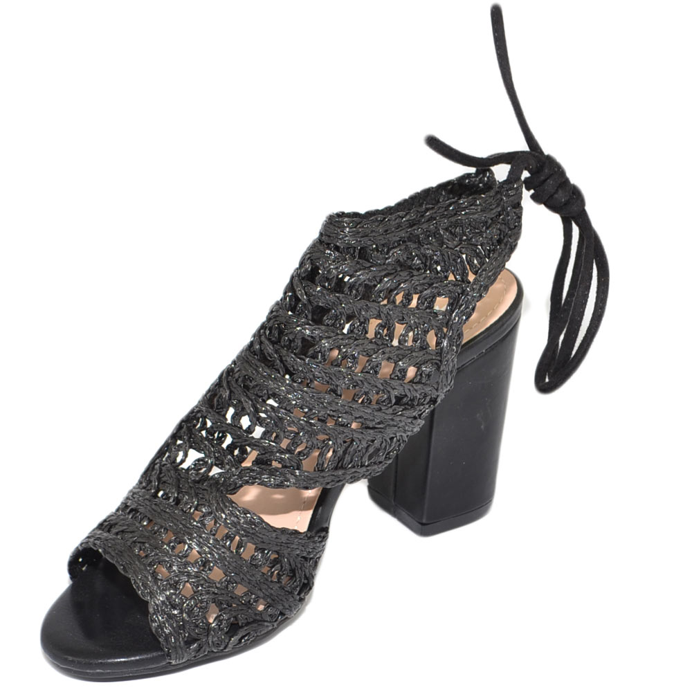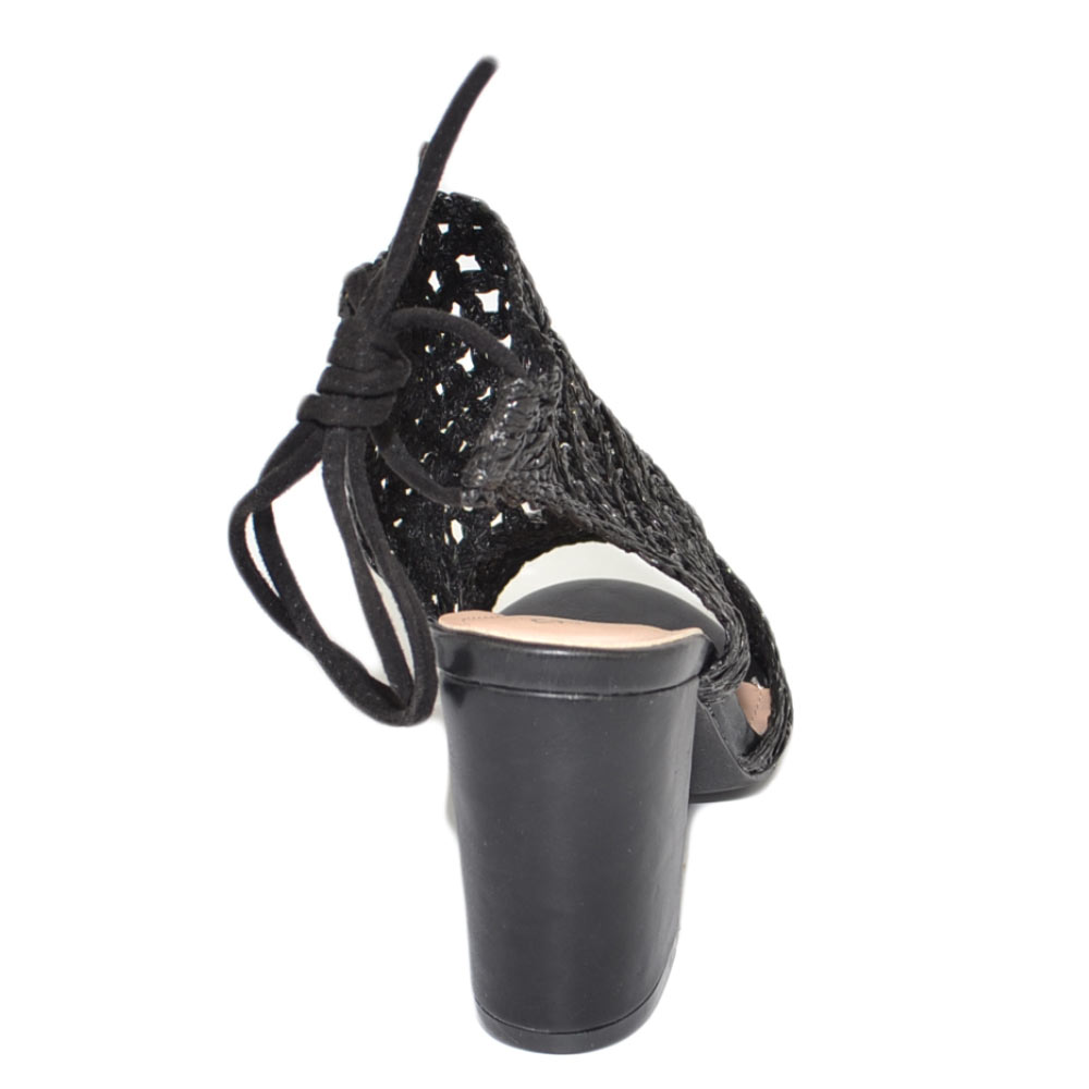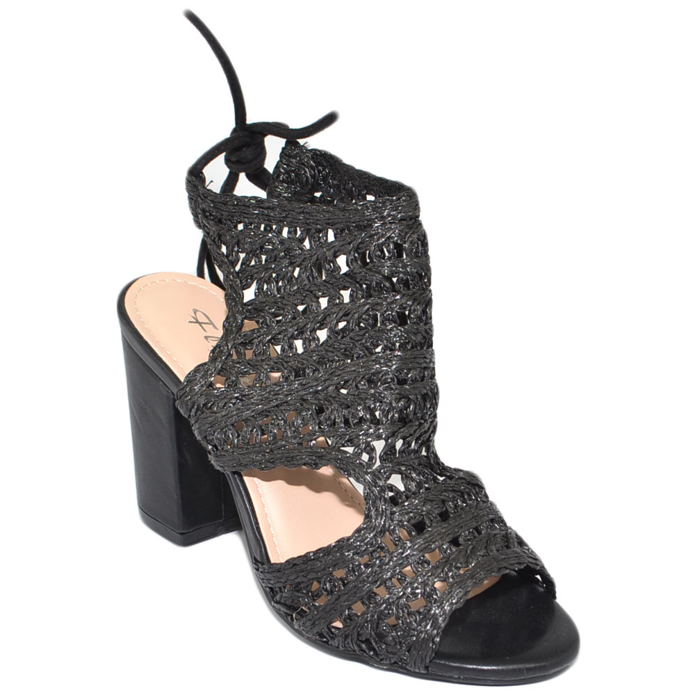 Scarpe donna tronchetto estivo comodo nero tacco largo 5 cm allacciatura retro forato uncinetto lacci open toe spuntato