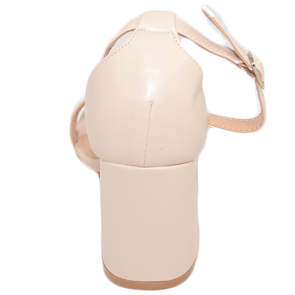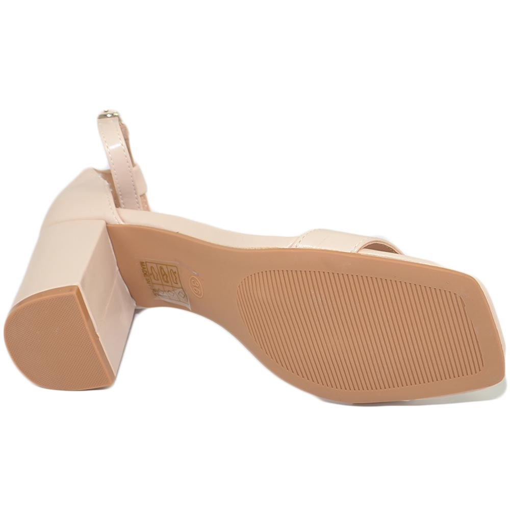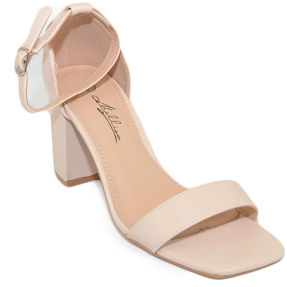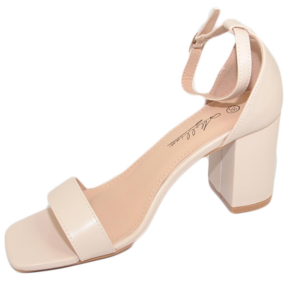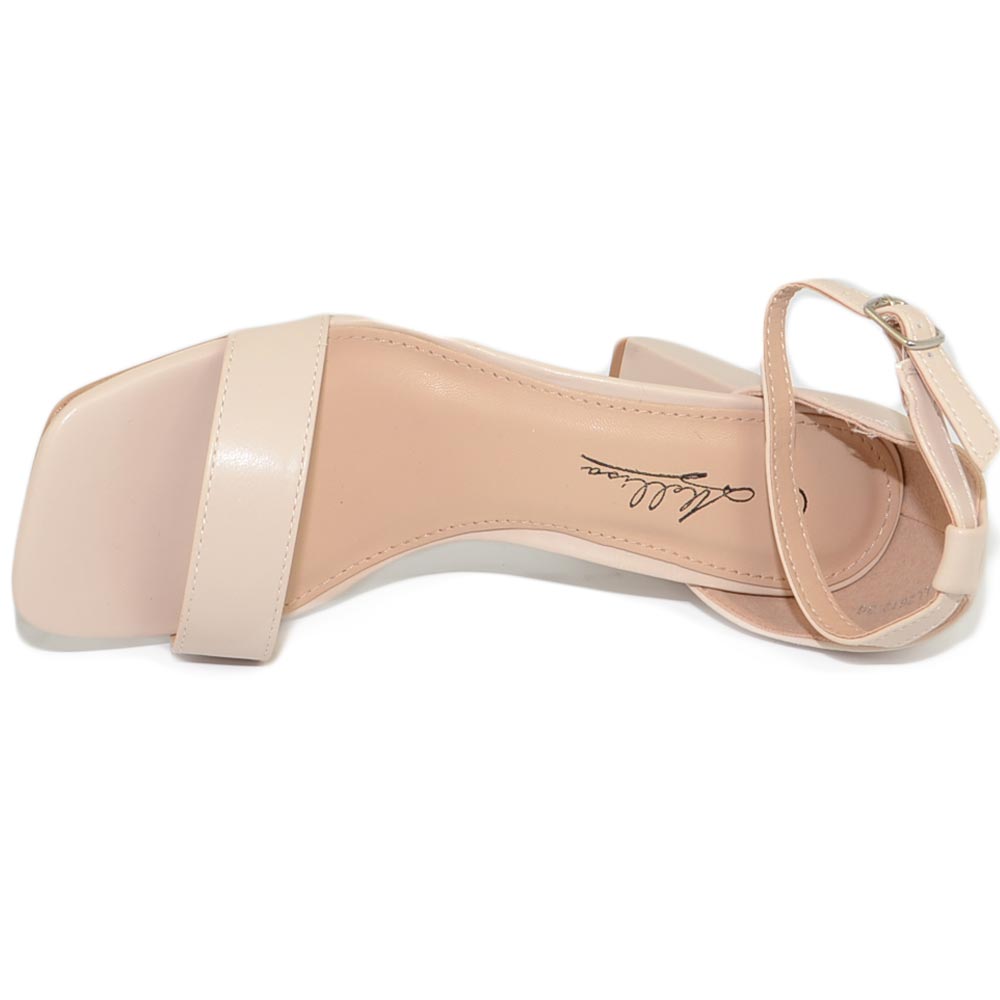Sandali donna scarpe basic pelle nude beige punta quadrata tacco basso 5 cm quadrato cinturino alla caviglia comodo