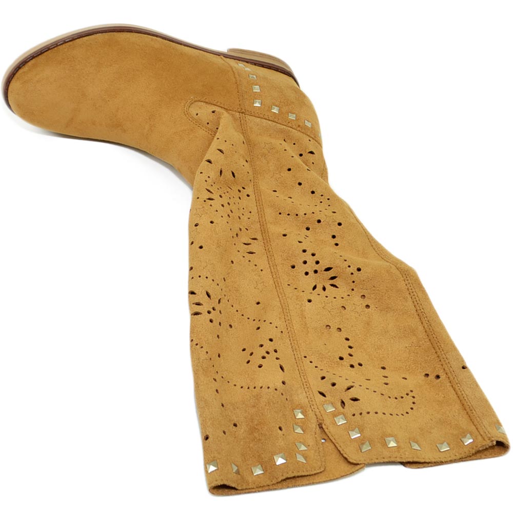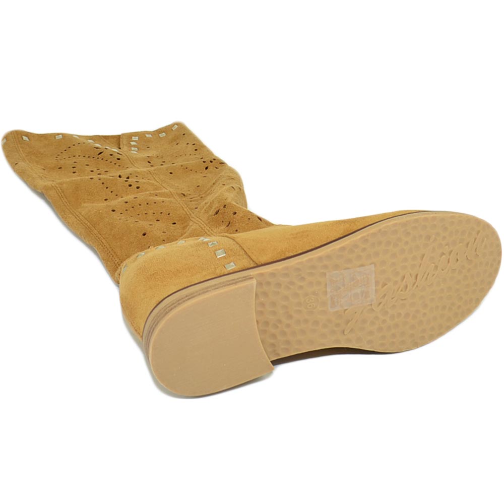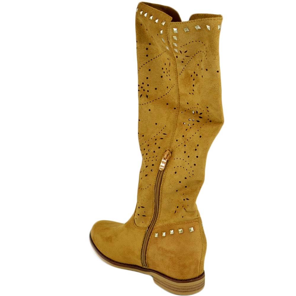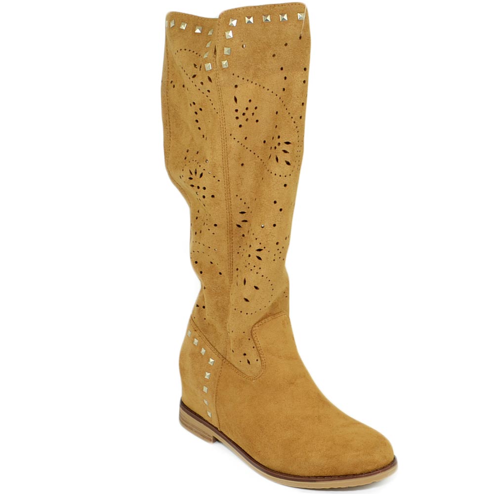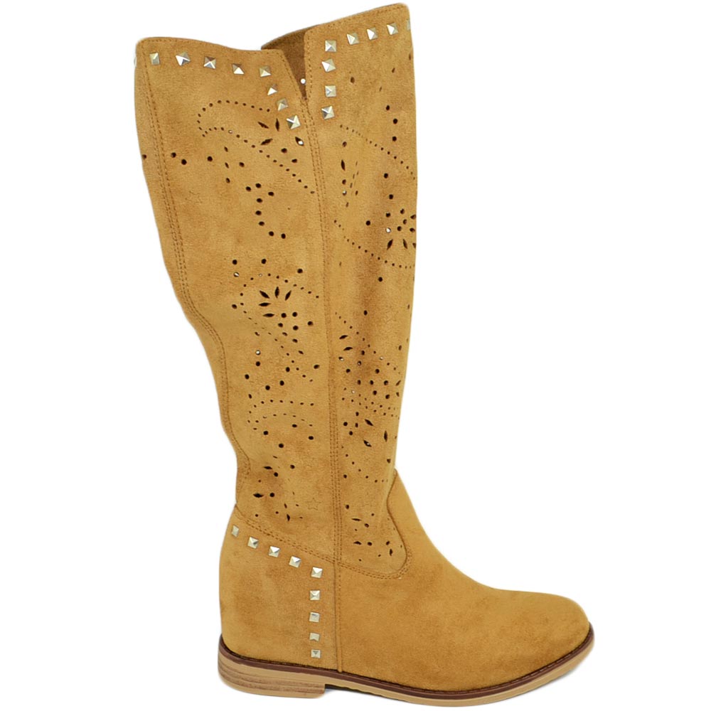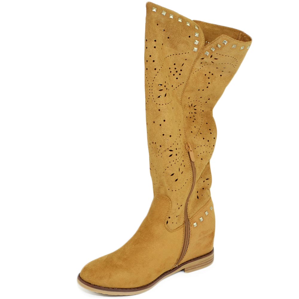 Stivali donna estivi alti indianini forati cuoio morbidi con zeppa para interna con suola antiscivolo e borchie moda