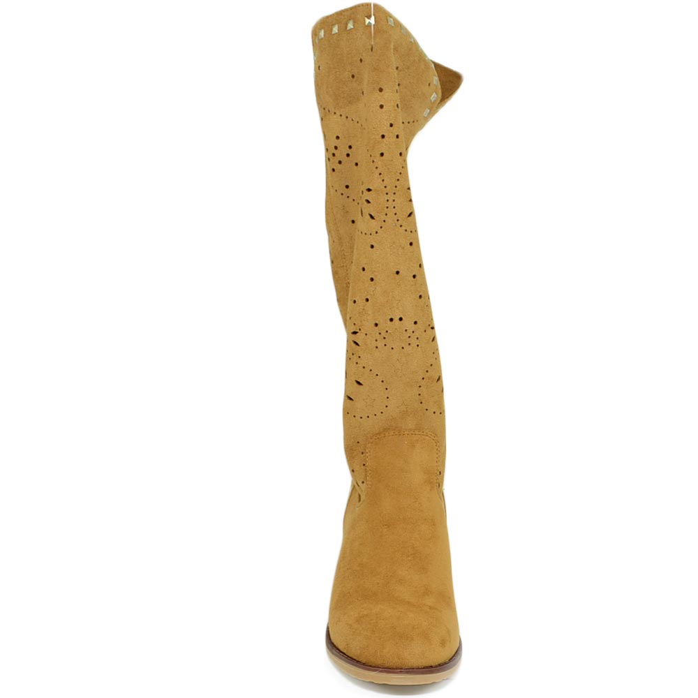 Lo stivale alto è realizzato interamente in ecopelle traforata, suola in gomma. Hanno gambale morbido da calzare, perfetti da indossare con la gonna ma belli anche abbinati a pantaloncini. Uno stivale elegante e comodo nella vita quotidiana della donna dinamica. Facilissimi da abbinare con ogni outfit sono gli stivali ideali nella stagione calda in città e in ufficio.