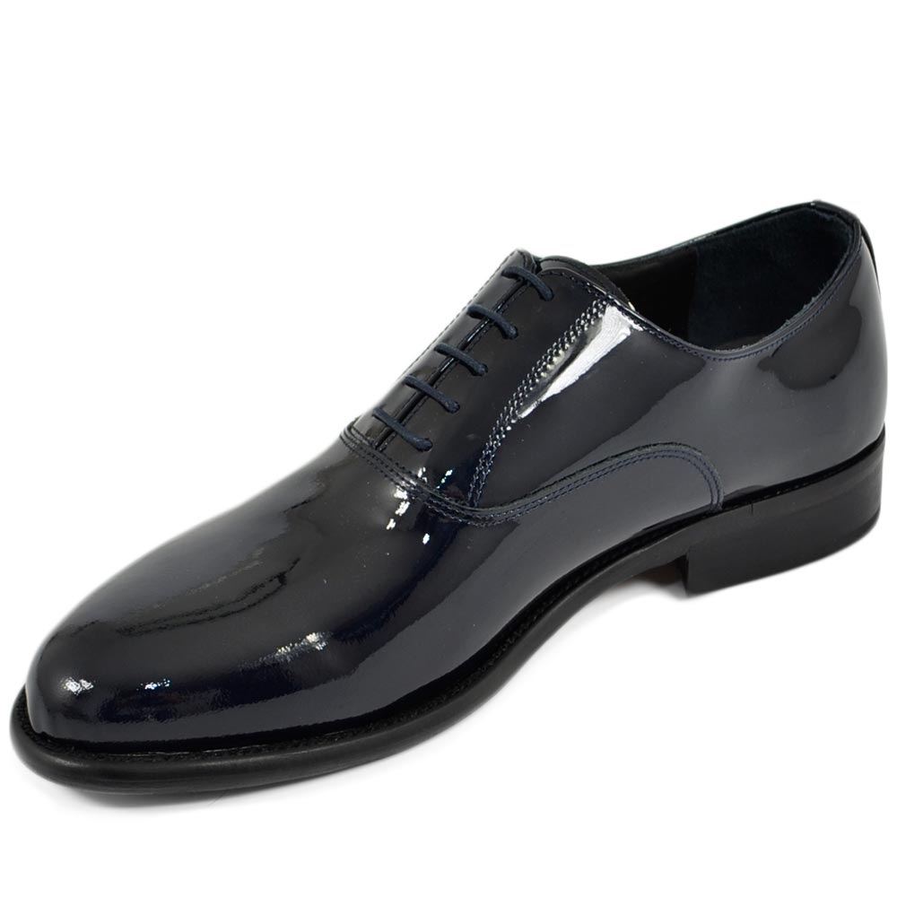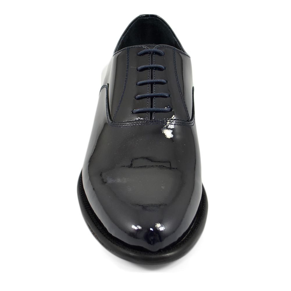 Scarpe uomo stringate classiche 019 vernice blu scuro made in italy fondo vero cuoio antiscivolo man business eleganti
