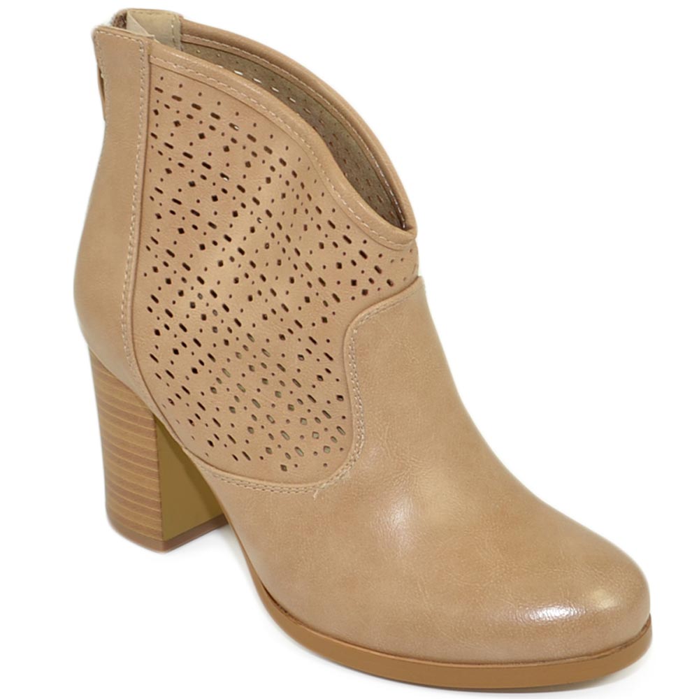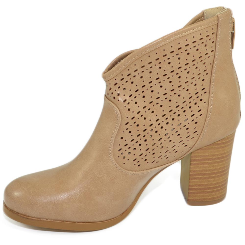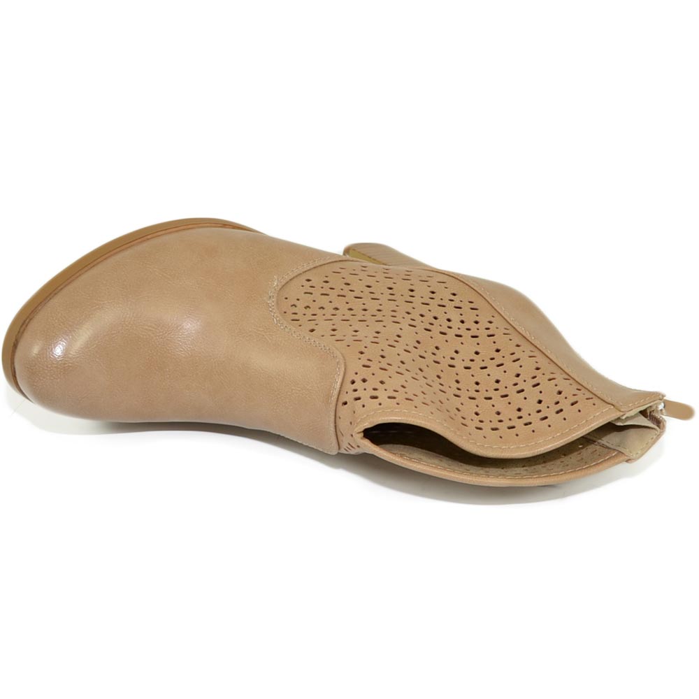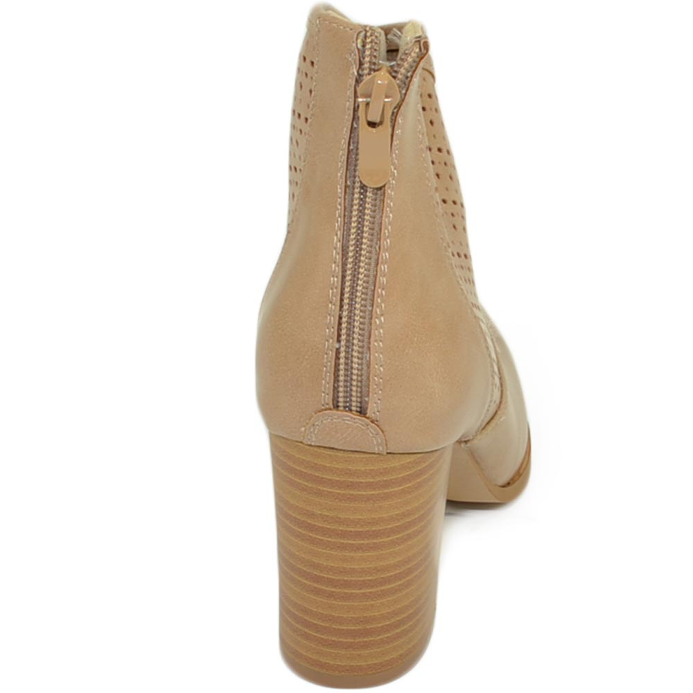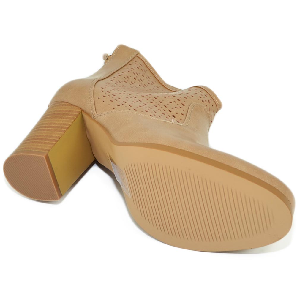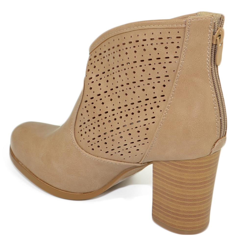 Scarpe donna tronchetto estivo comodo beige tacco largo 7 cm zip retro forato con plateau e scollo sulla caviglia comodo