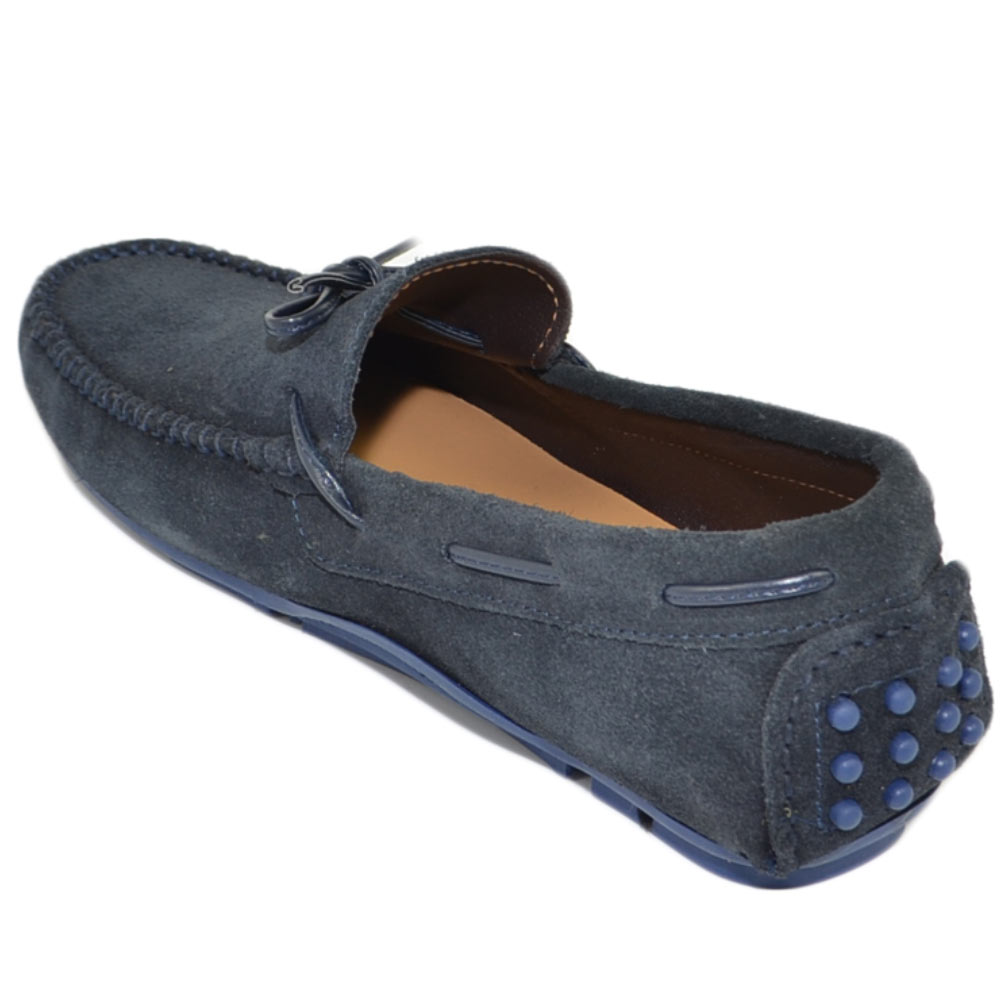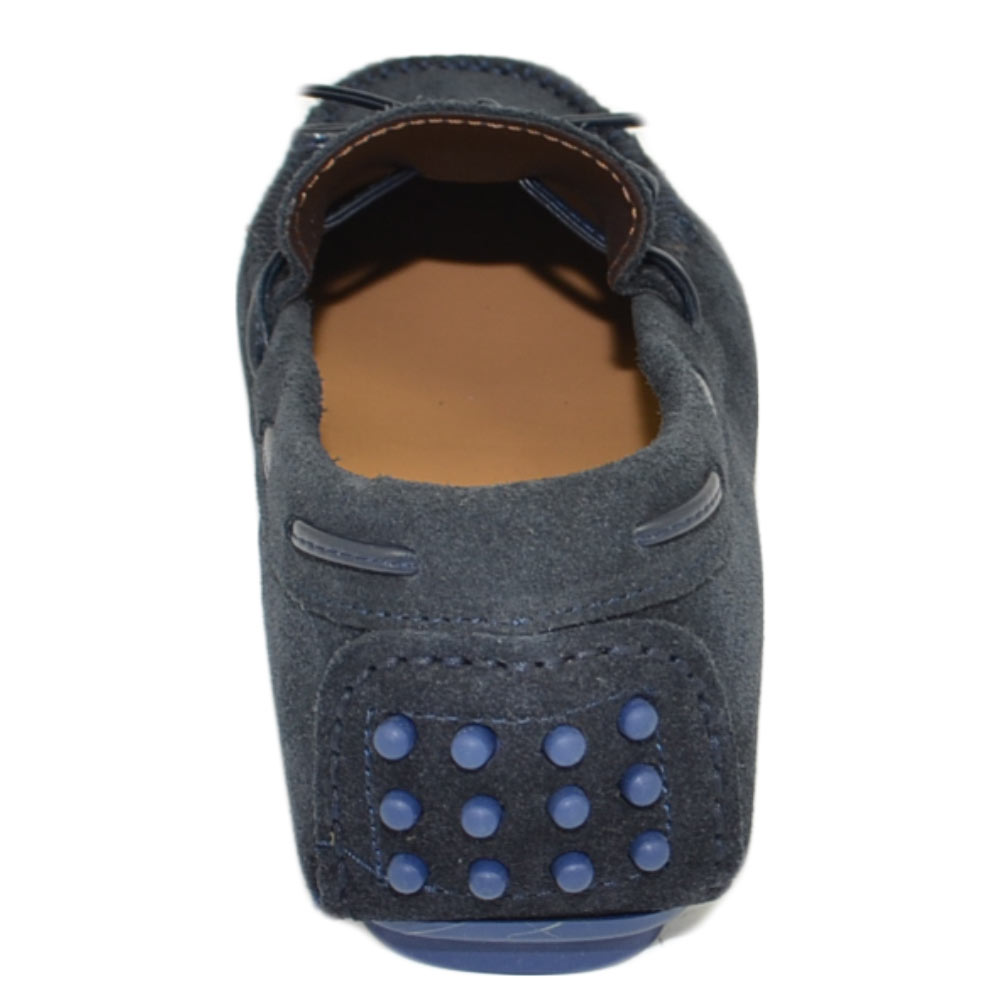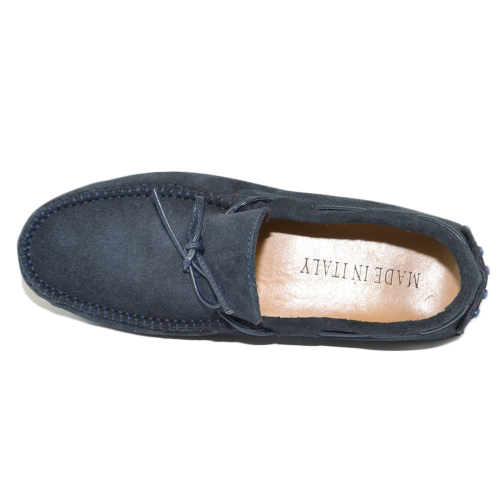 Mocassino barca uomo blu Navy comfort casual made in italy in vera pelle scamosciata fondo antiscivolo gomma estiva.