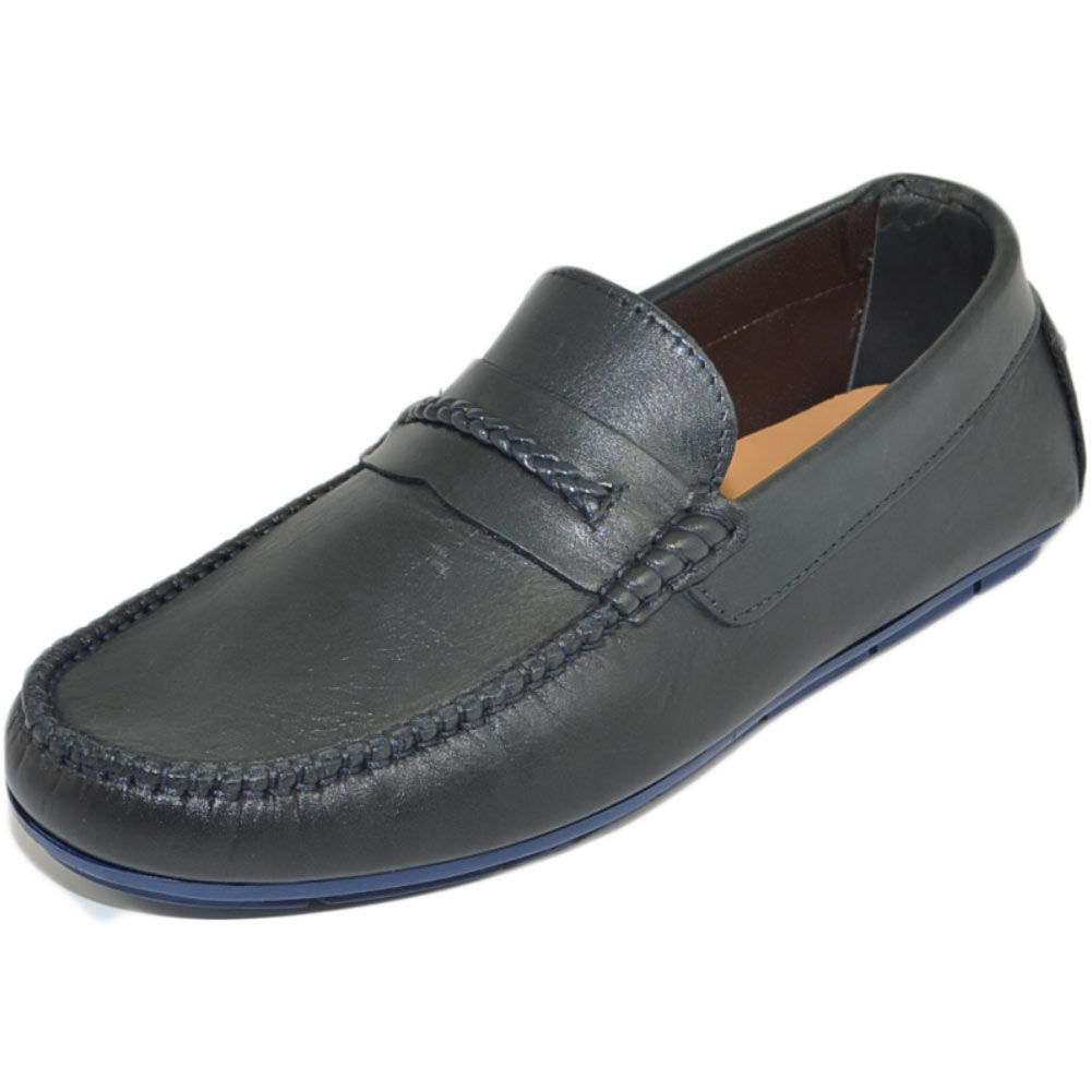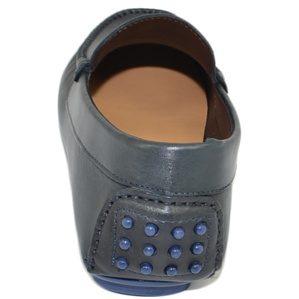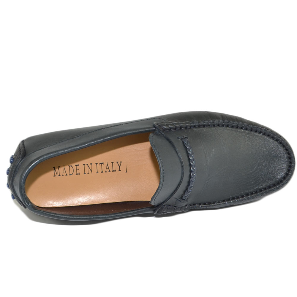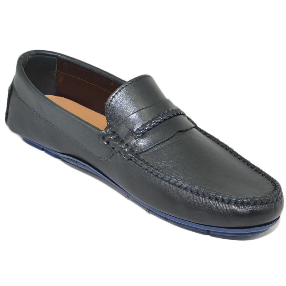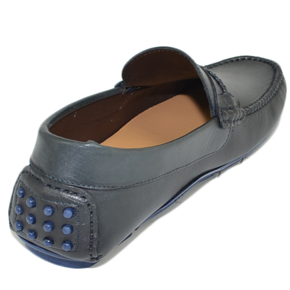 mocassino car shoes uomo blu comfort man casual made in italy vera pelle fondo antiscivolo moda estiva glamour.