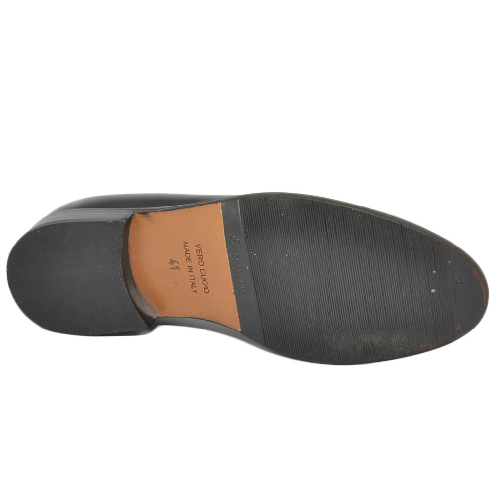 Scarpe uomo mocassino fibbia doppia sottile derby nero in vera pelle semilucida business fondo vero cuoio.