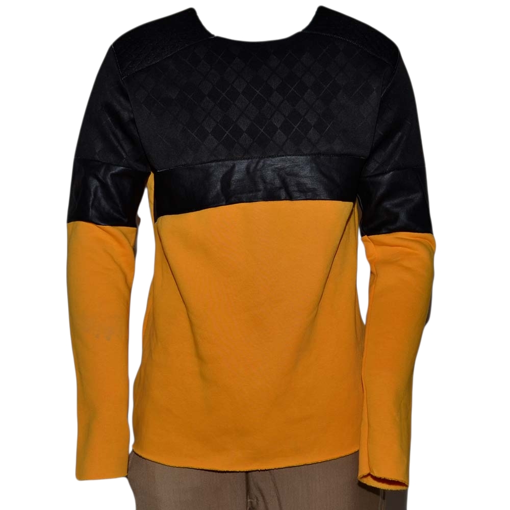 Felpa uomo giallo e nera con ecopelle nero lunga girocollo