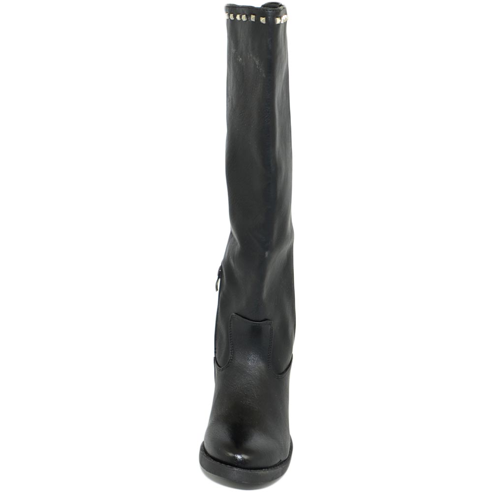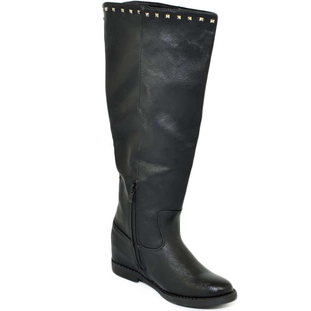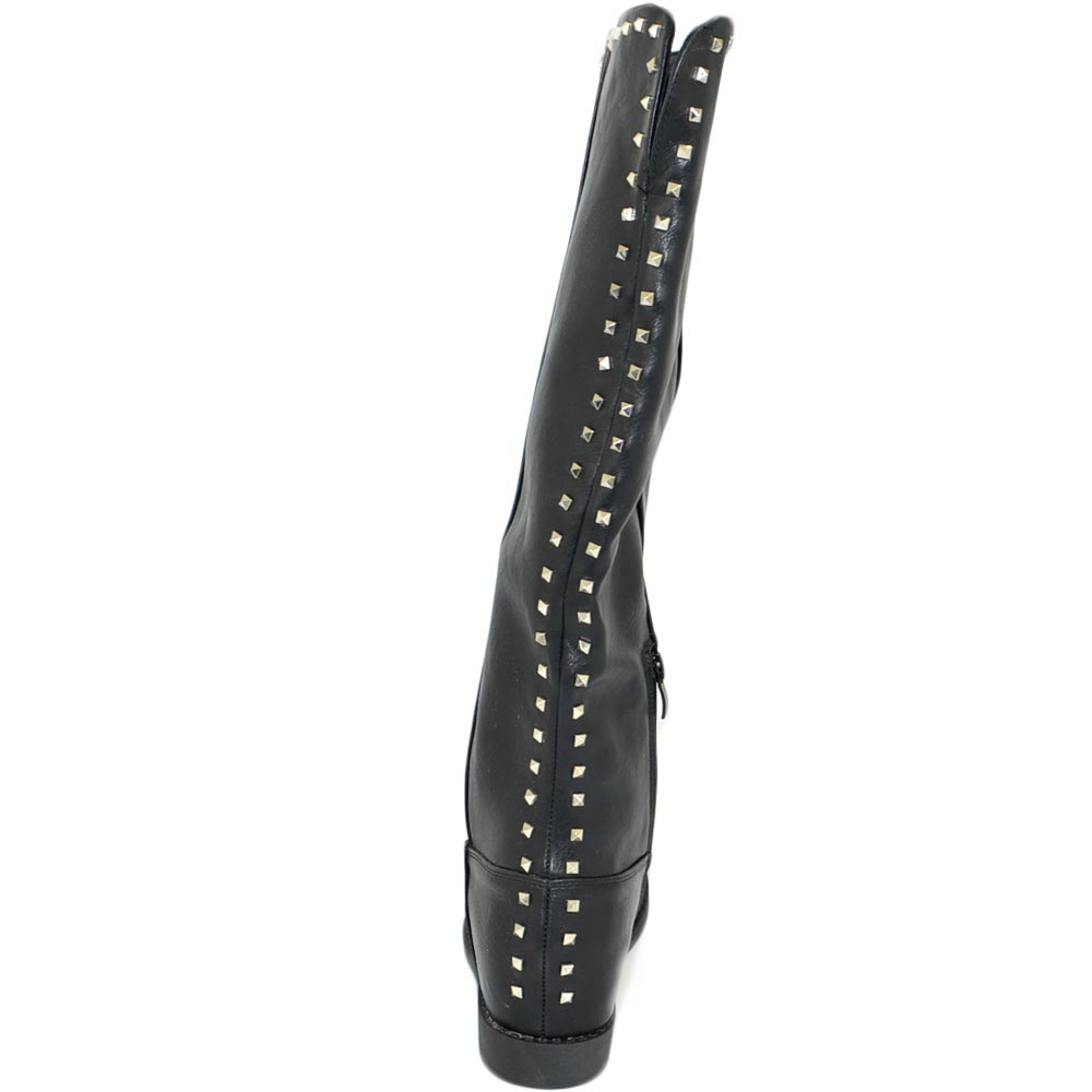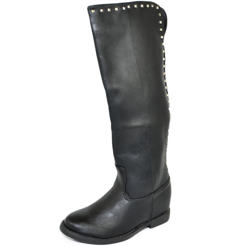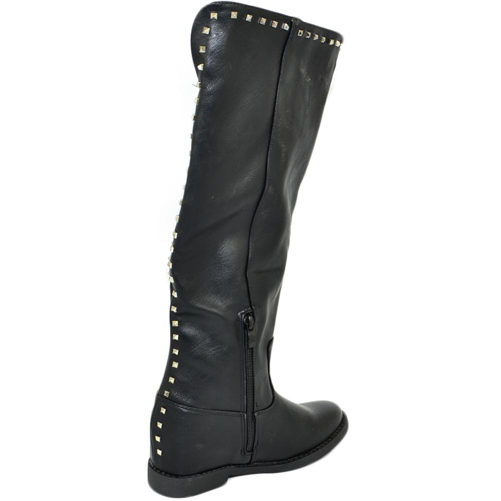StivalI donna neri con para zeppa interna borchie argento zip punta tonda altezza sopra ginocchio moda comodo