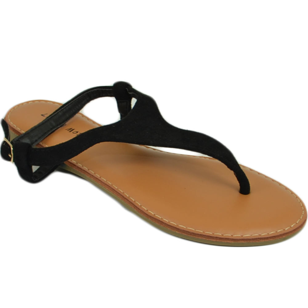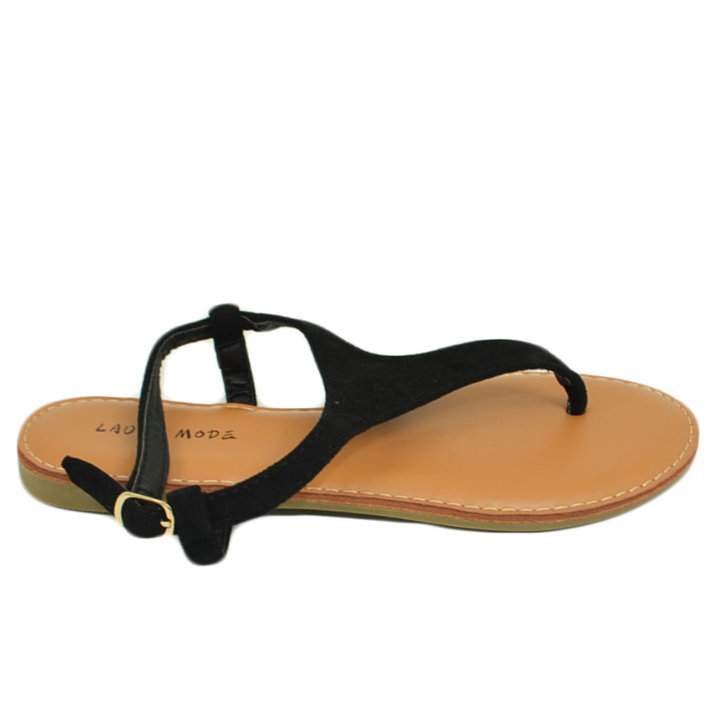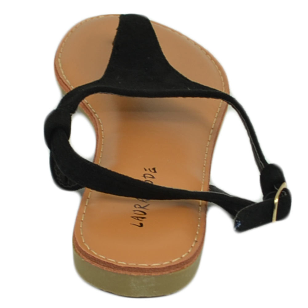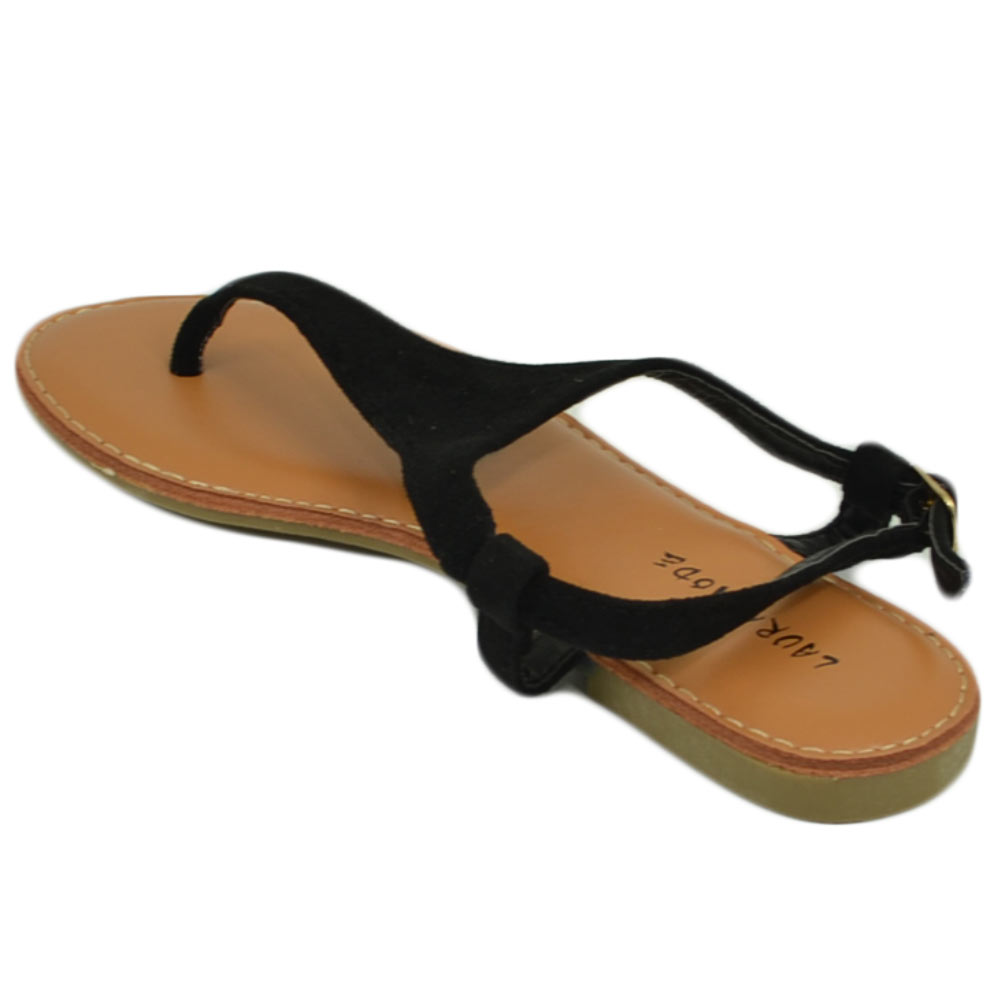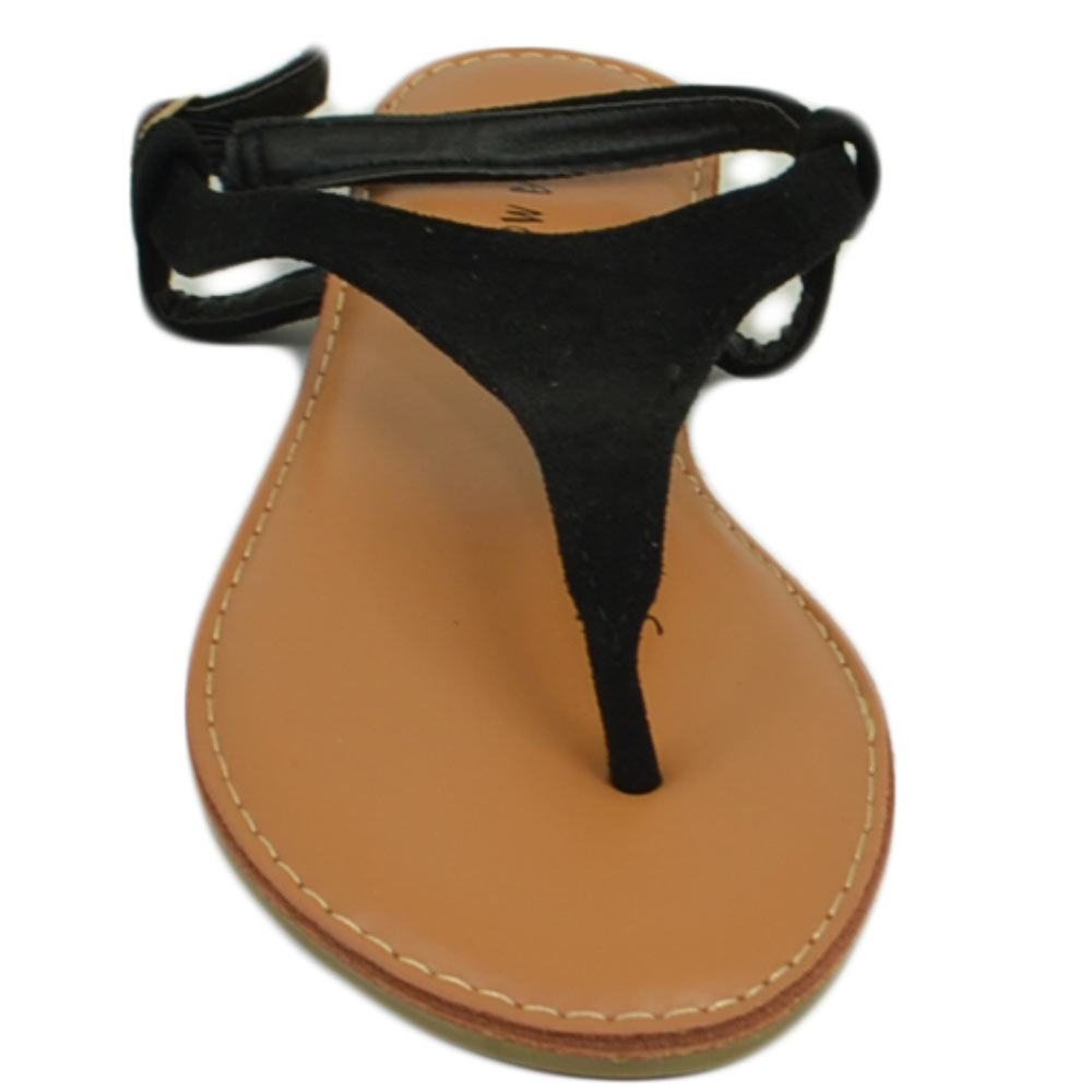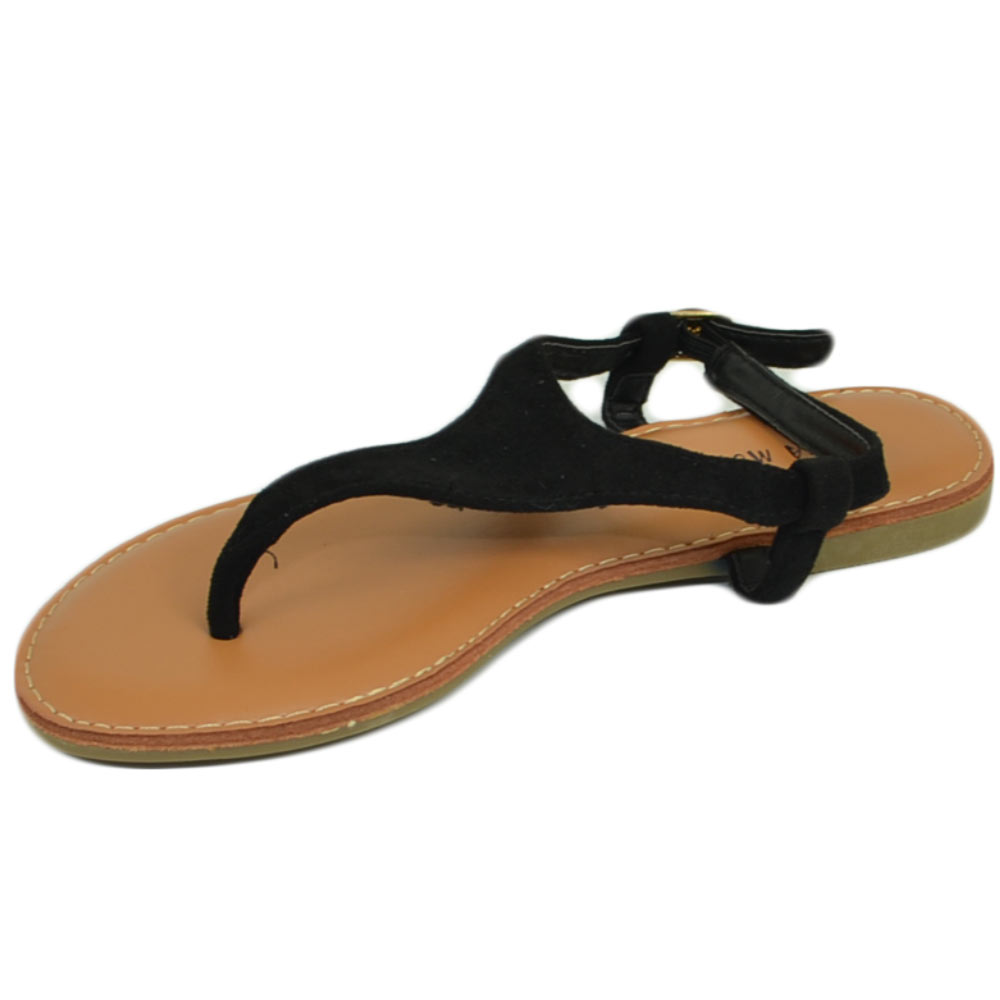 Sandalo basso nero infradito in morbida alcantara cinturino alla caviglia fondo imbottito in memory comoda estate