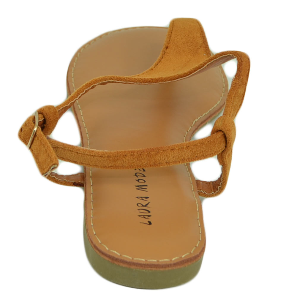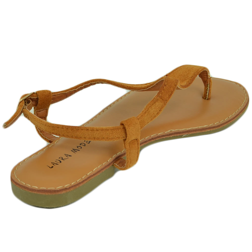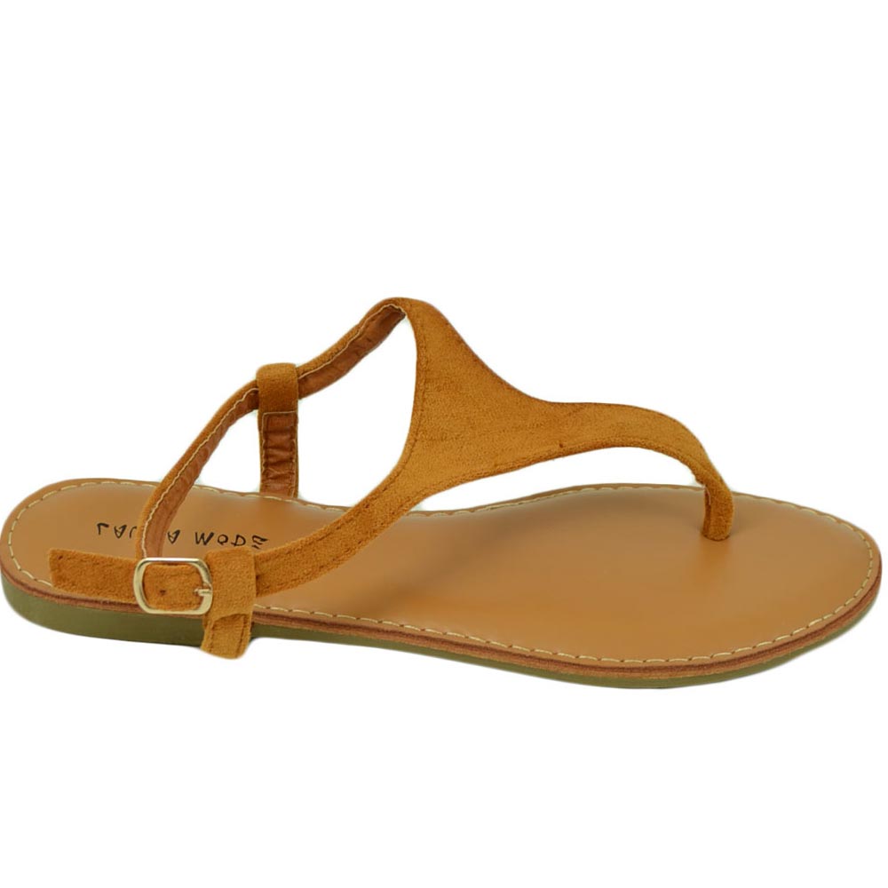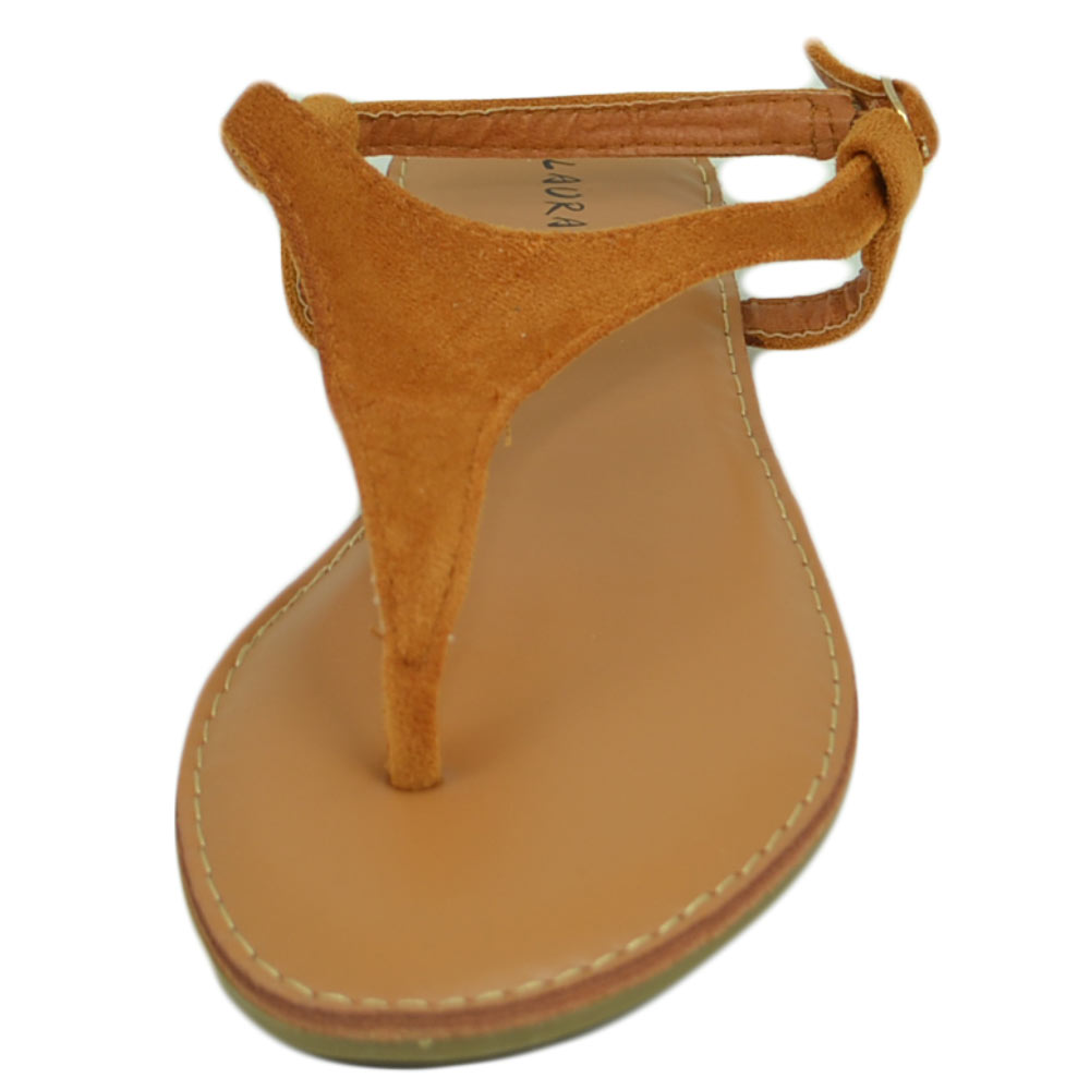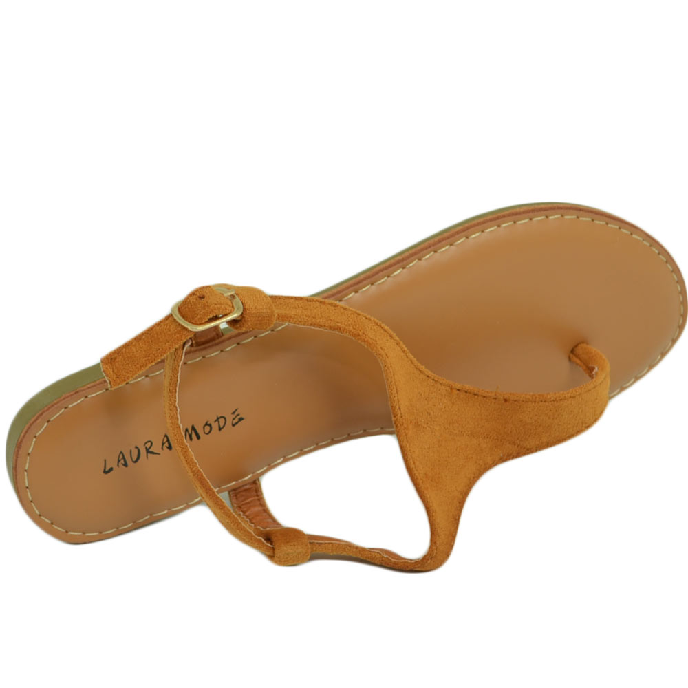 Sandalo basso cuoio infradito in morbida alcantara cinturino alla caviglia fondo imbottito in memory comoda estate.