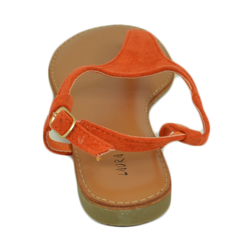 Sandalo basso arancione infradito in morbida alcantara cinturino alla caviglia fondo imbottito in memory comoda estate