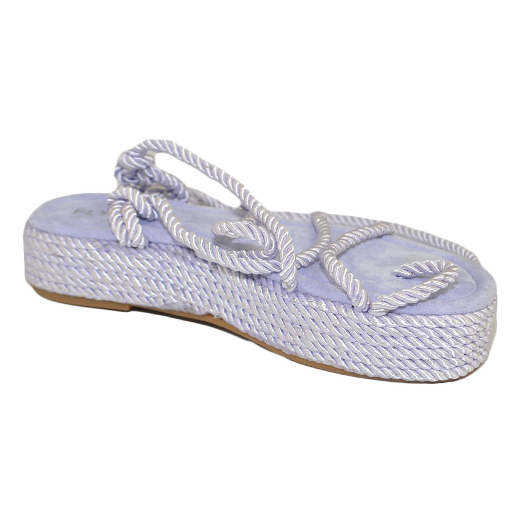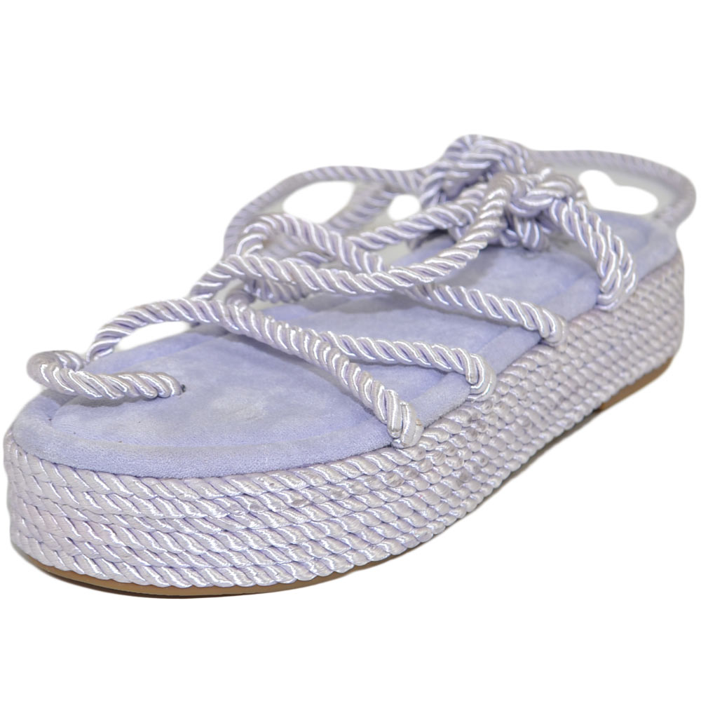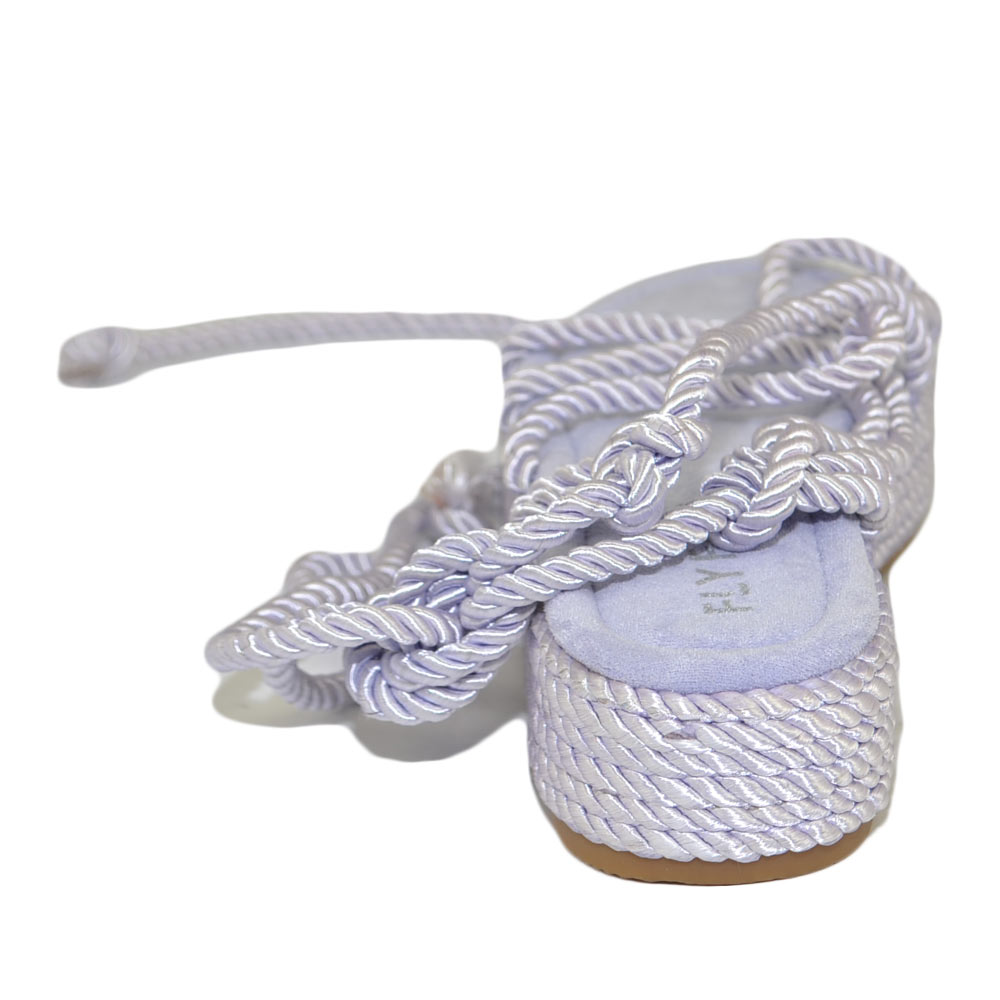 Sandali platform donna glicine Lilla con corda di canapa suola in cordone e gomma moda mykonos alla schiava gladiatore