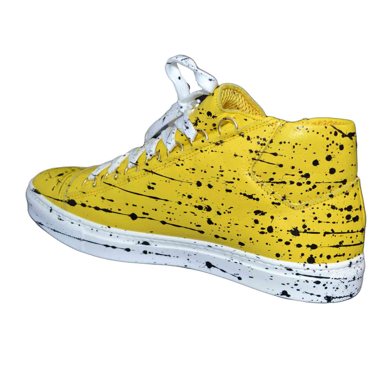sneakers uomo scarpe man vera pelle giallo astratto schizzi limited edition
