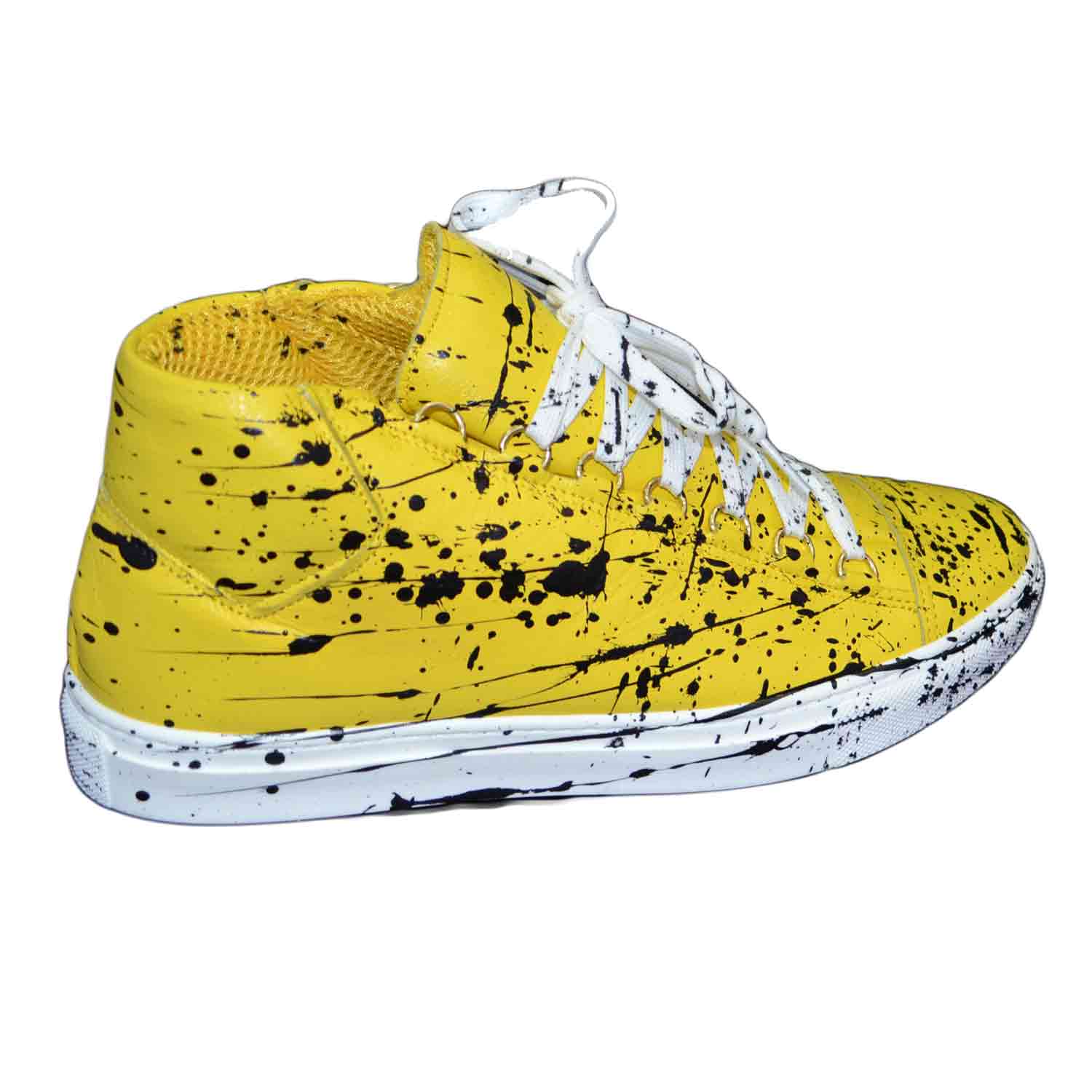 Sneakers uomo scarpe in vera pelle giallo con fantasia astratto schizzi limited edition made in Italy