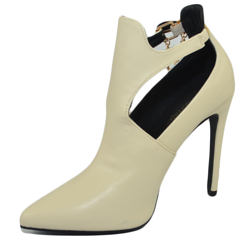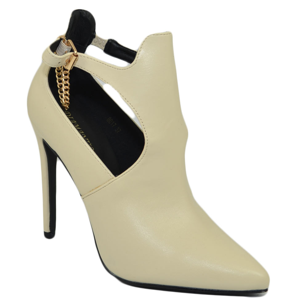 Scarpe donna tronchetto beige nude punta con il tacco a spillo e cinturino alla caviglia comodo sexy con catena moda