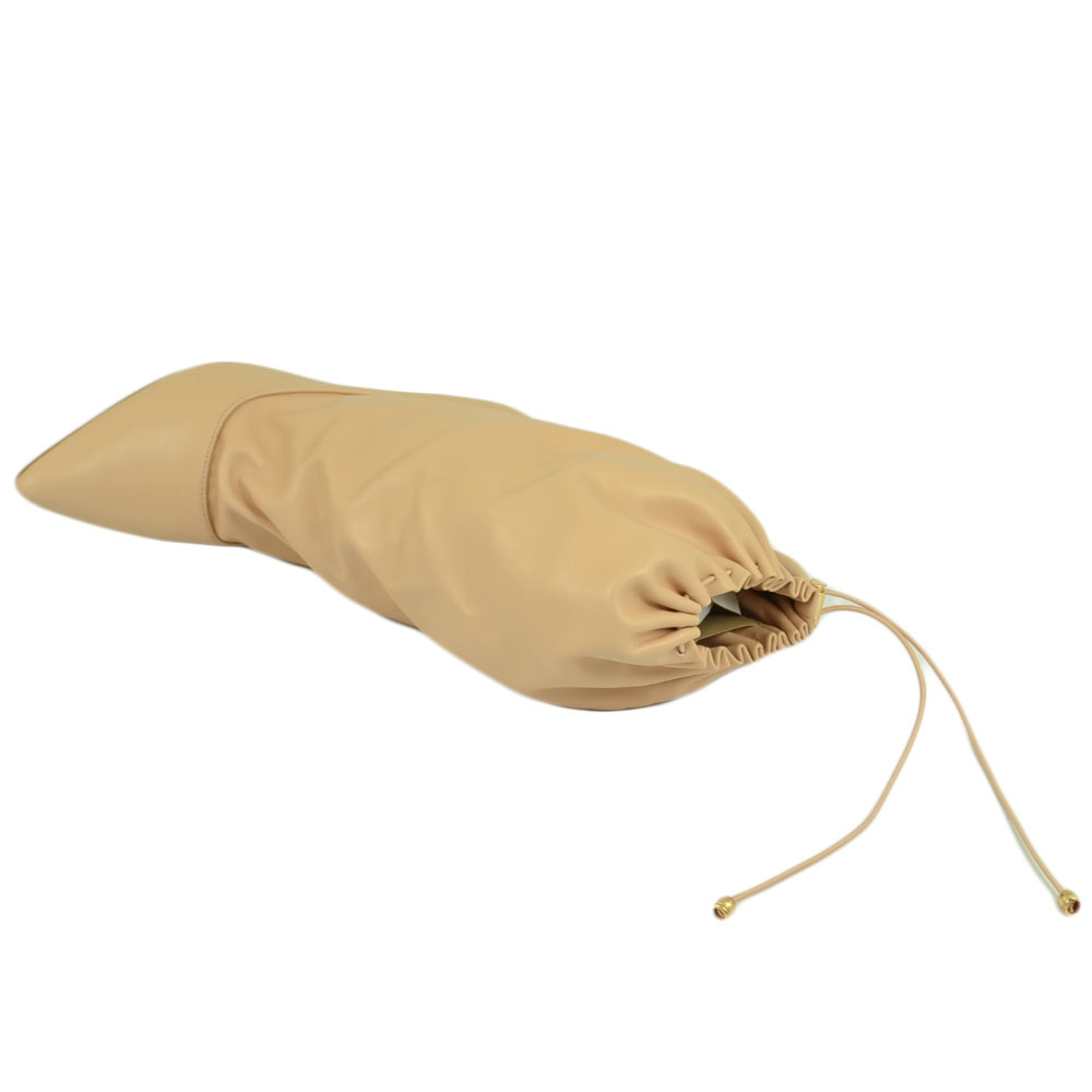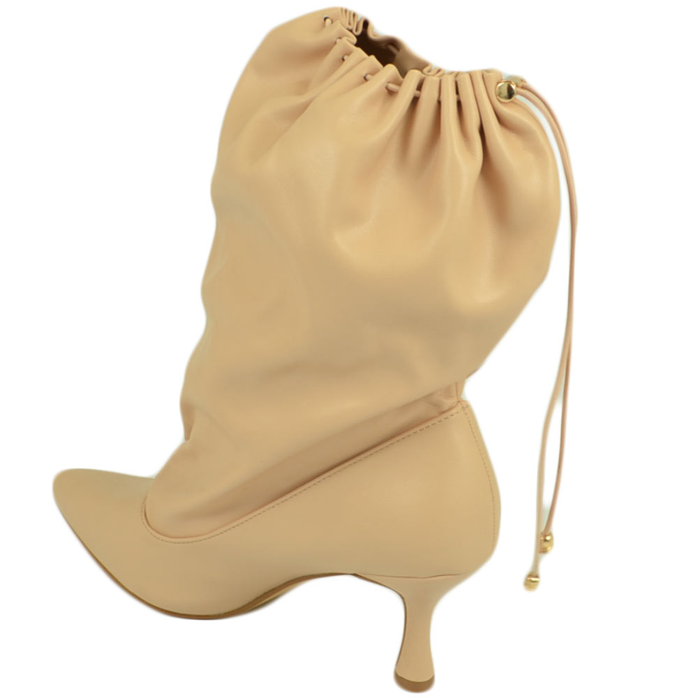 Stivali donna tronchetto a punta beige nude in pelle con tacco midi 5 cm a spillo e coulisse moda tendenza