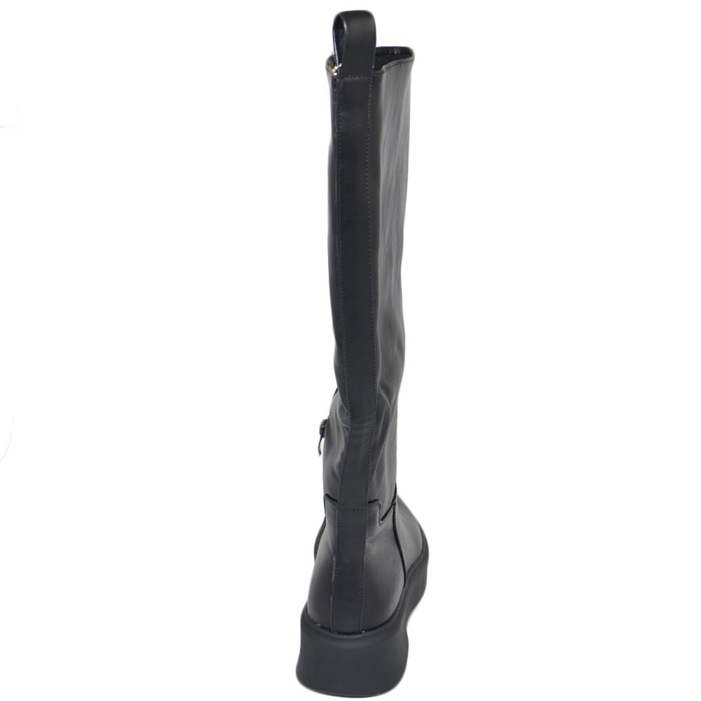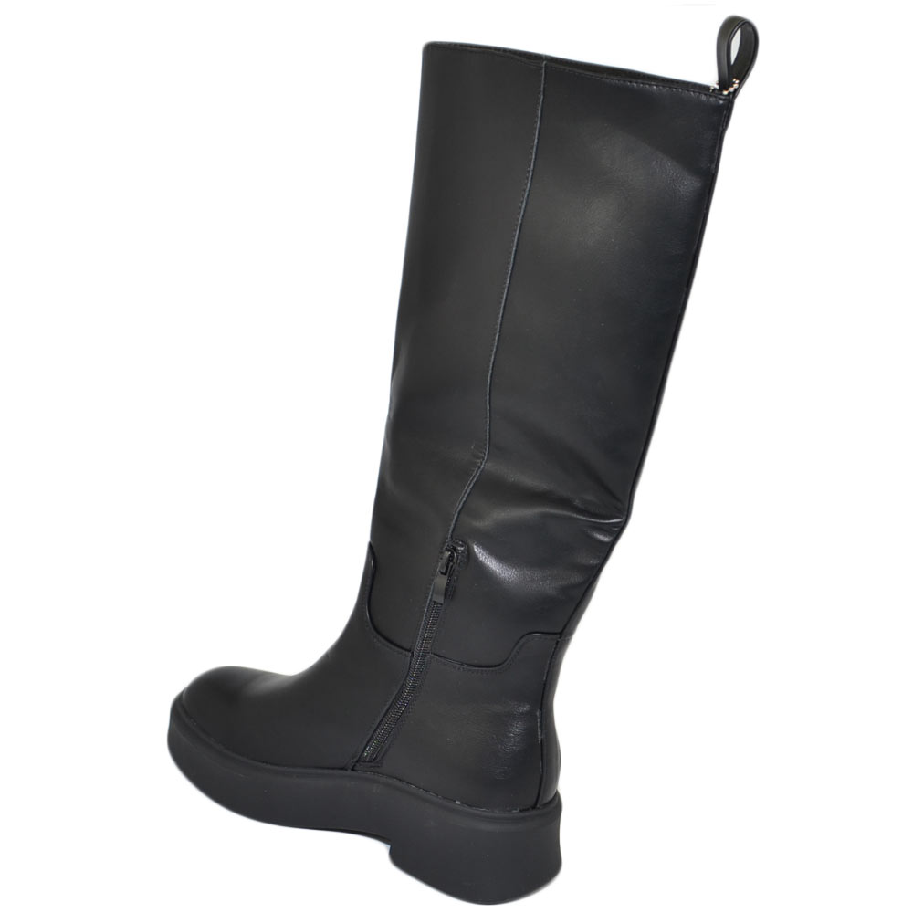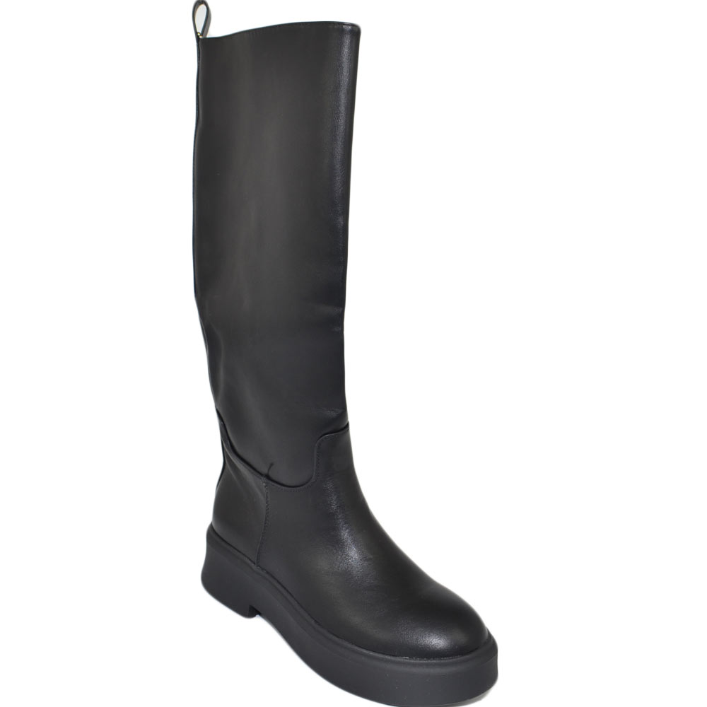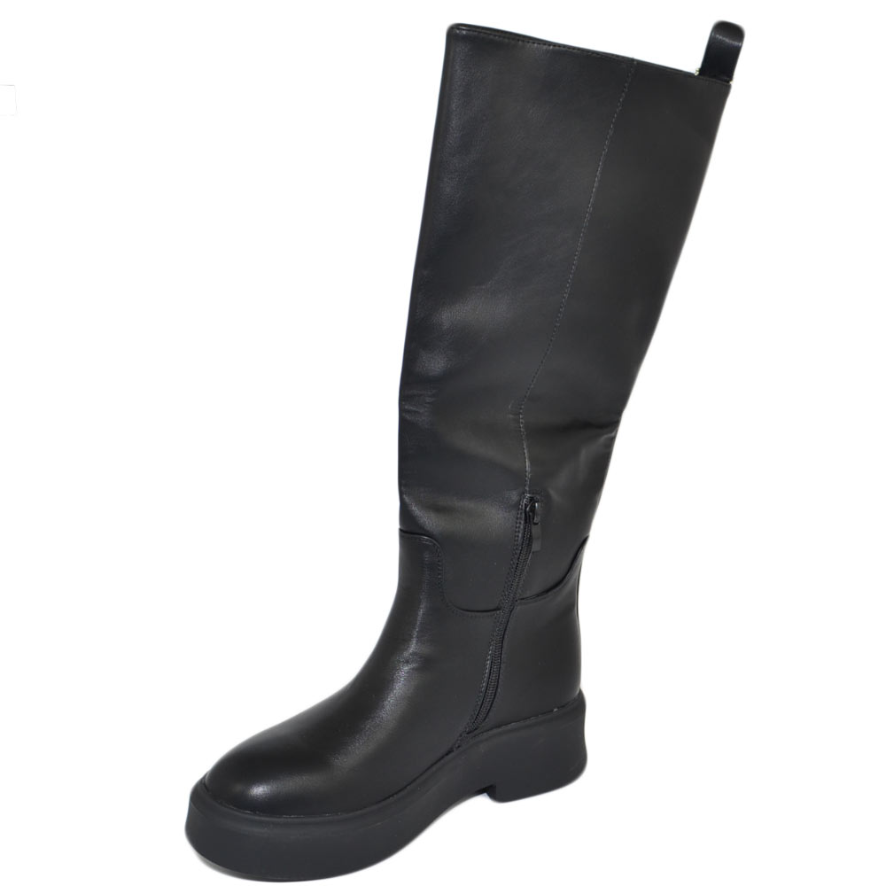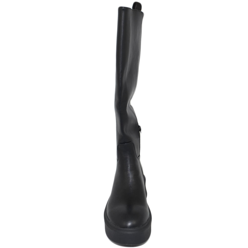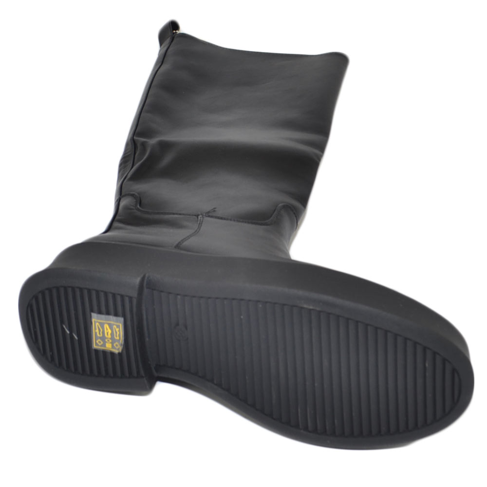 Stivali donna alto in pelle nero morbido con zip e gomma alta con suola antiscivolo moda al ginocchio comodo