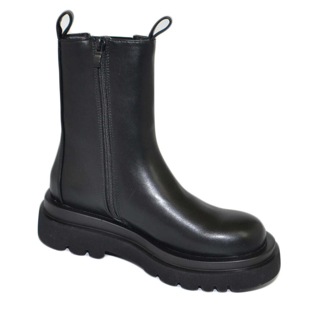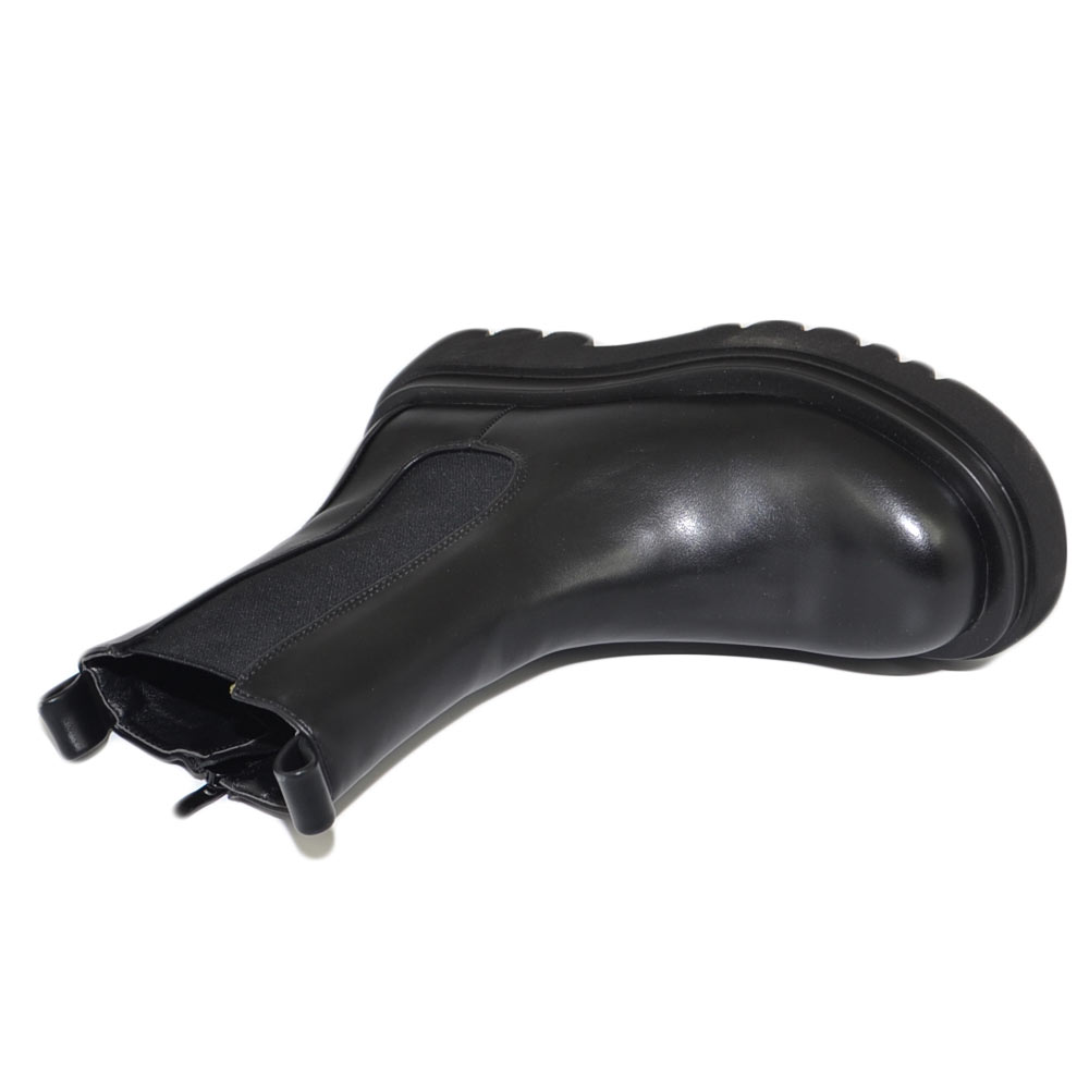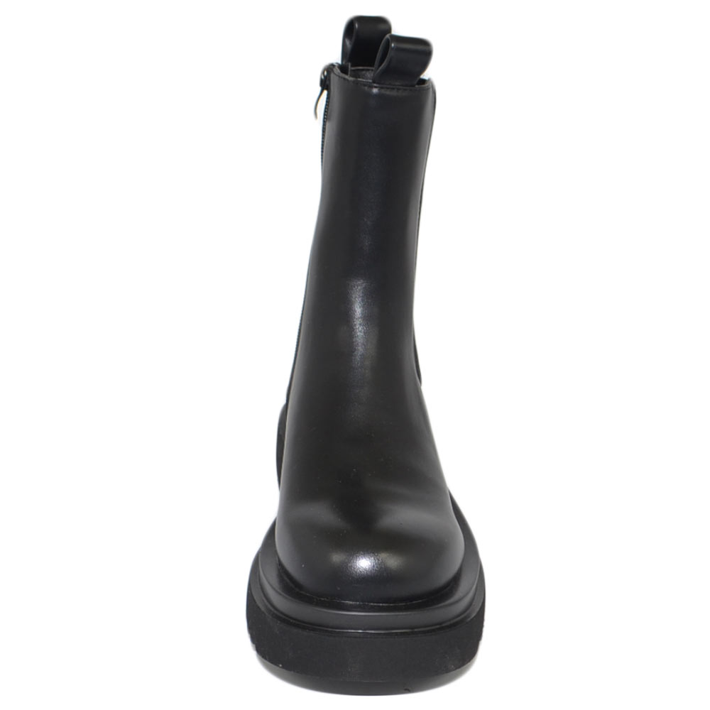 Stivaletti donna Platform chelsea boots combat nero fondo alto zip e elastico laterale moda tendenza comodo