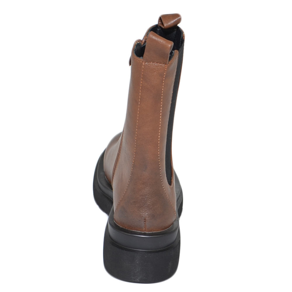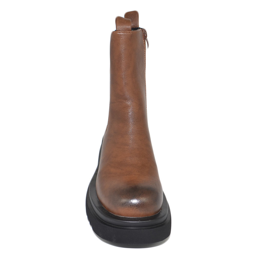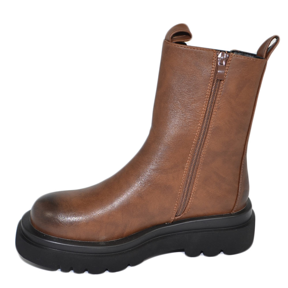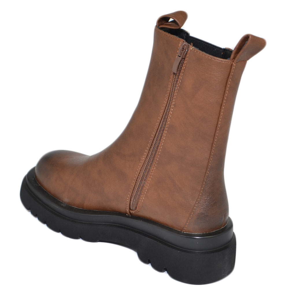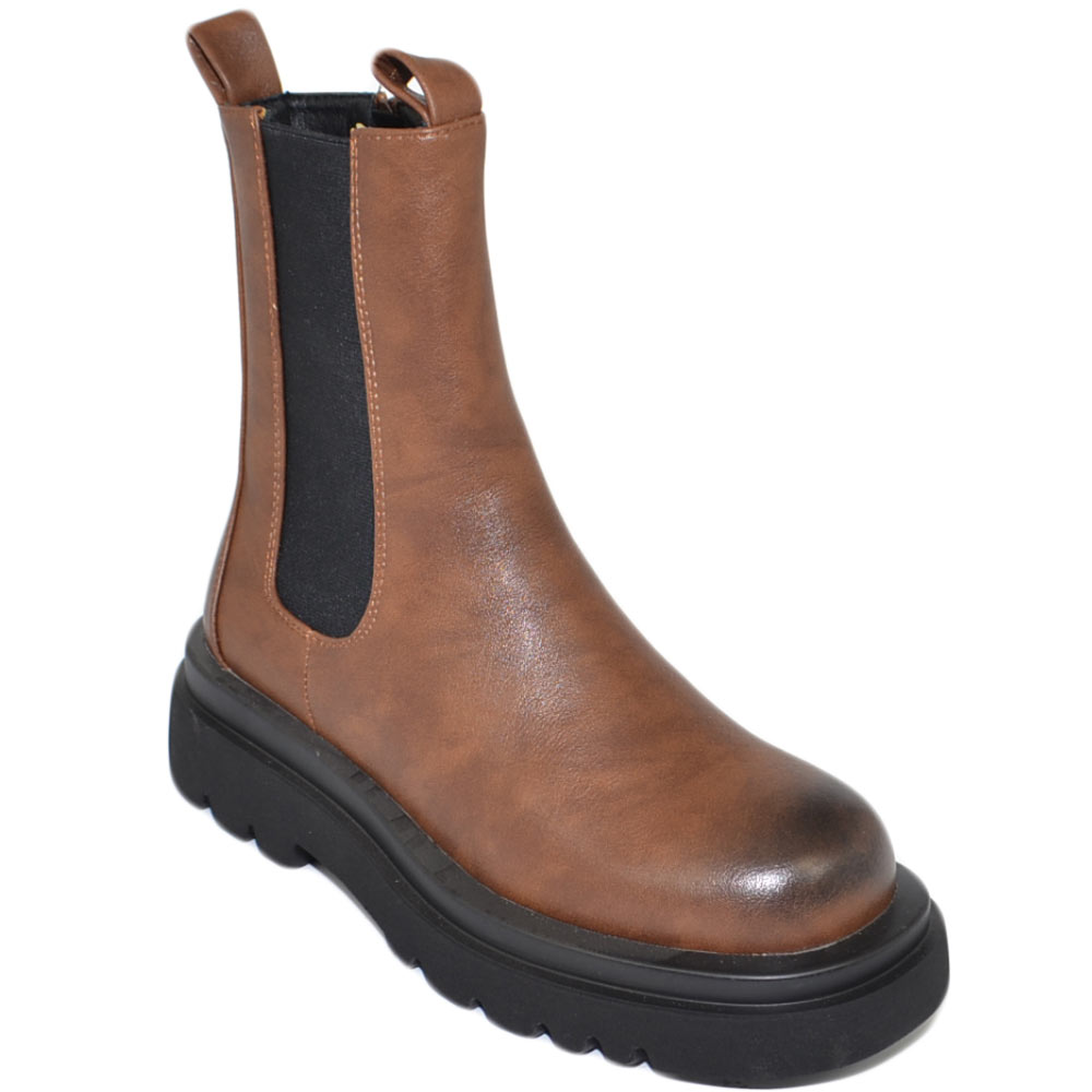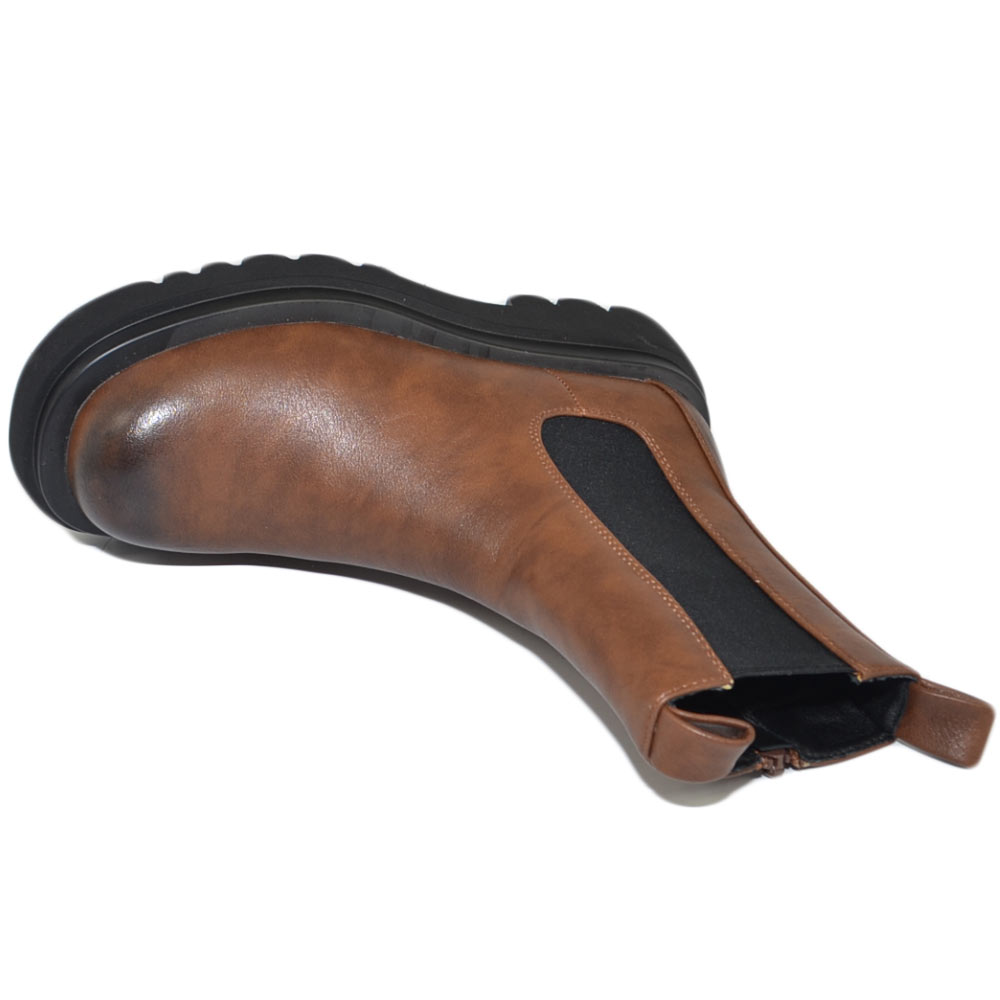 Stivaletti donna platform chelsea boots combat marrone fondo alto zip e elastico laterale moda tendenza comodo