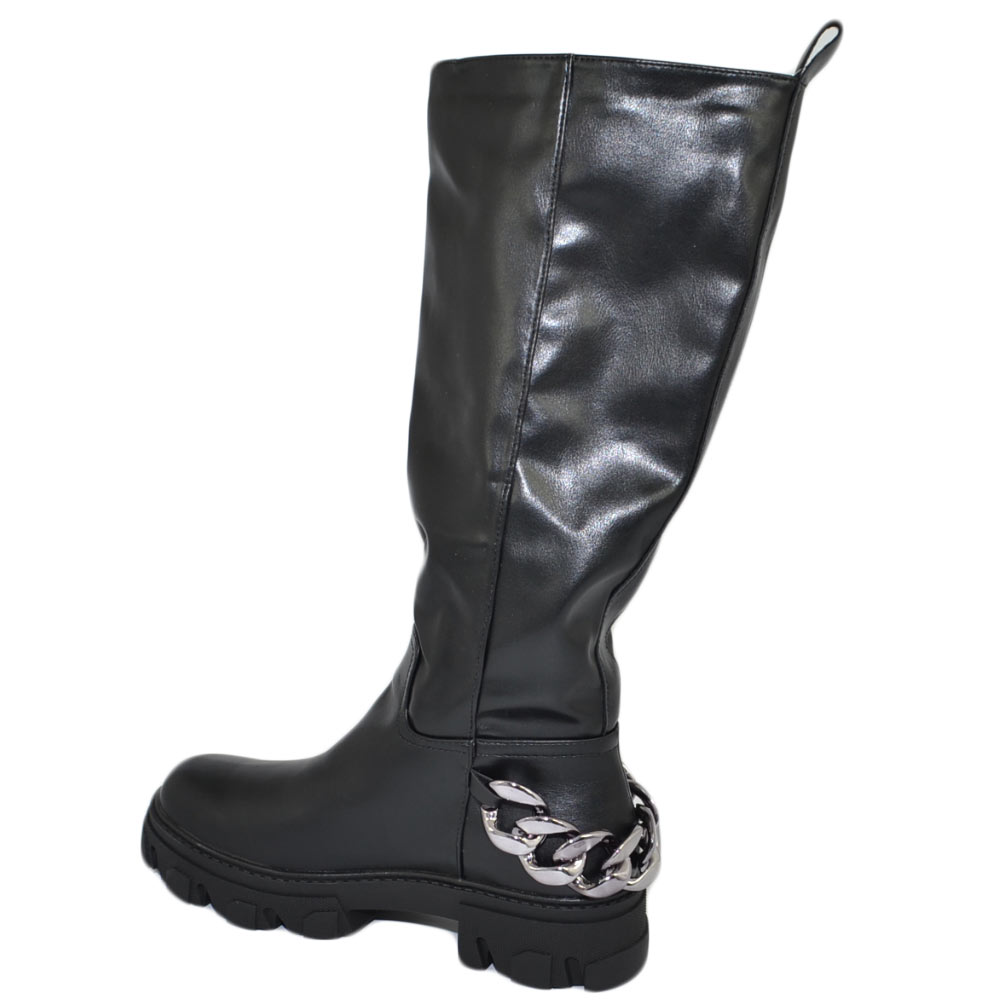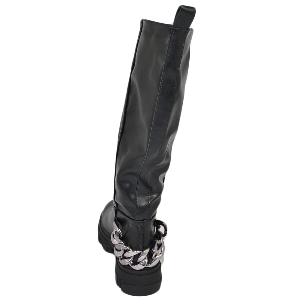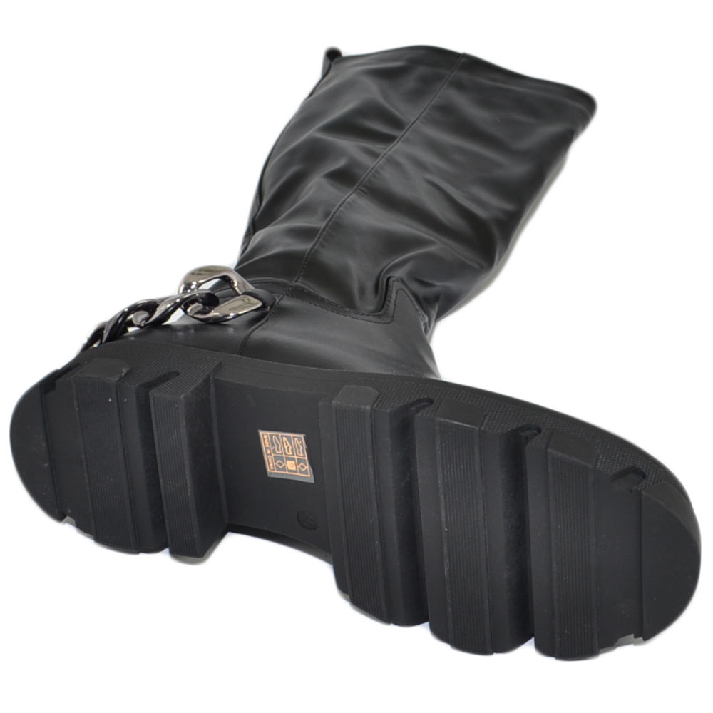 Stivali donna combat boots gomma alta con catena retro nero zip altezza ginocchio moda comodo