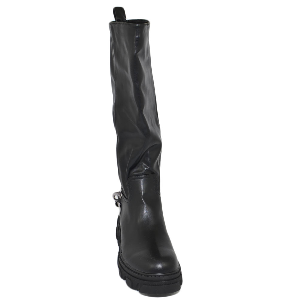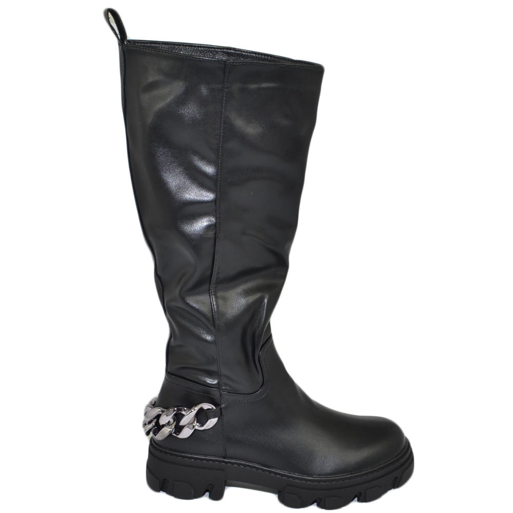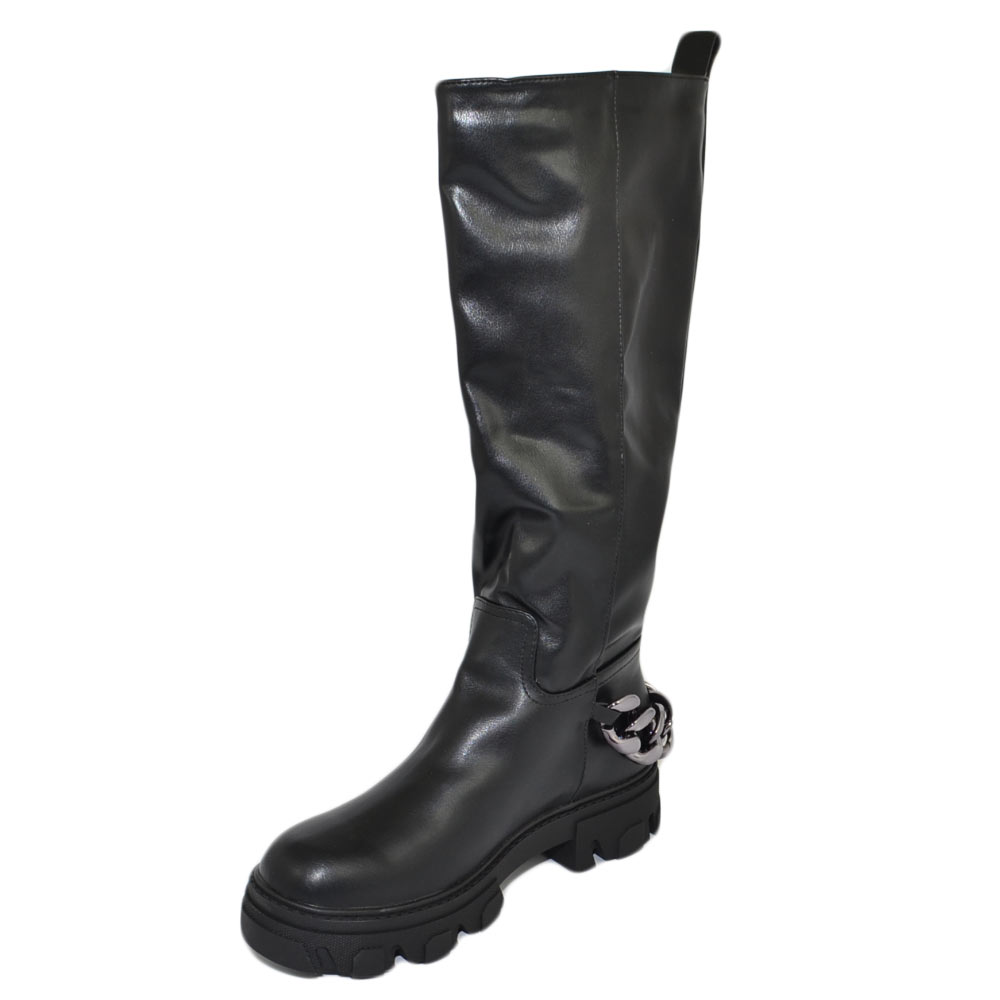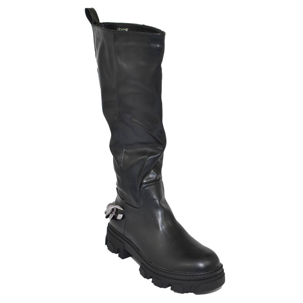 Stivali donna combat boots gomma alta con catena retro nero zip altezza ginocchio moda comodo