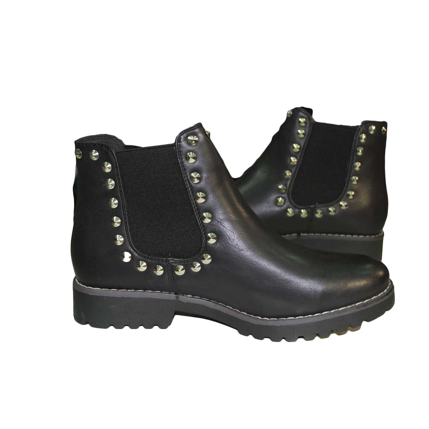 Stivaletto nero con borchie pronto moda fondo roccia antiscivolo elastico