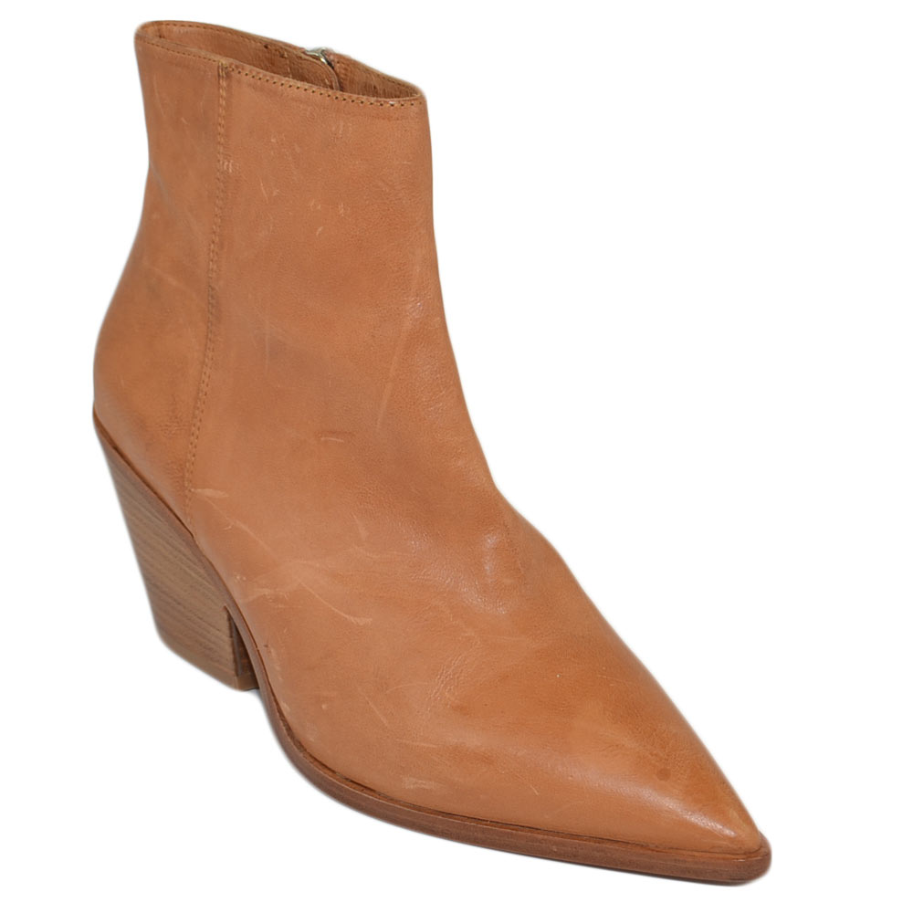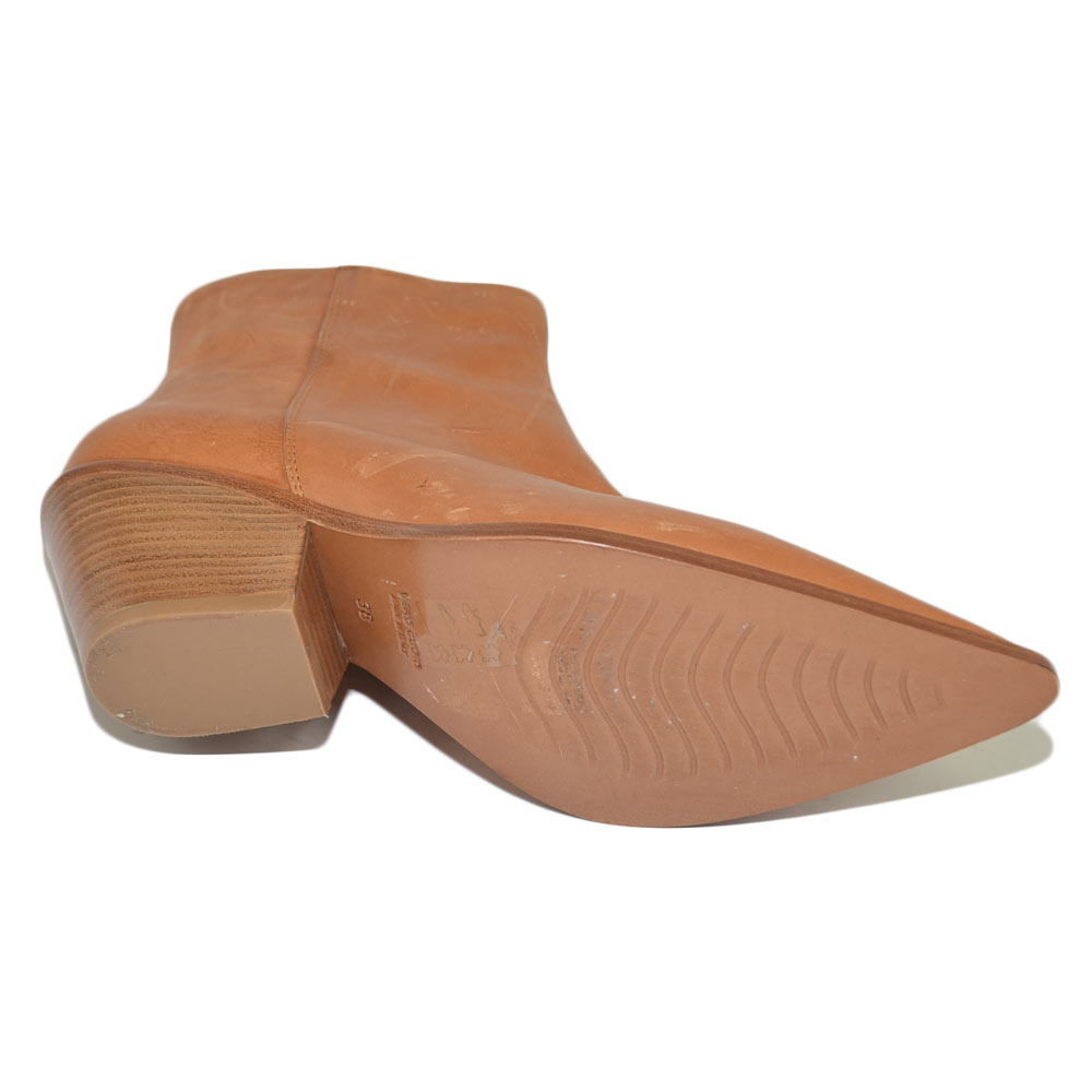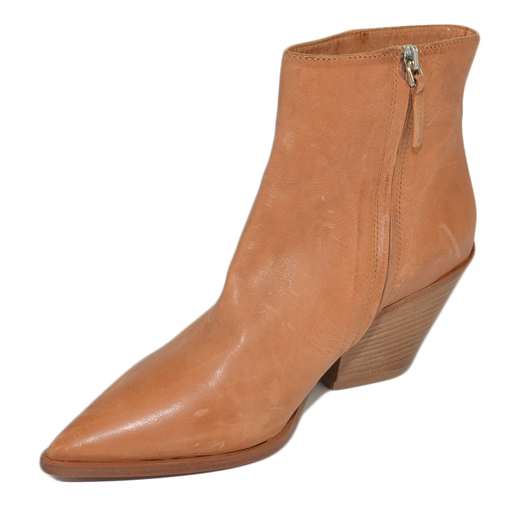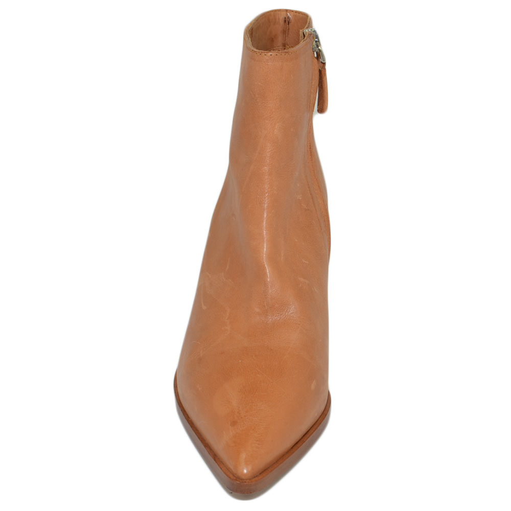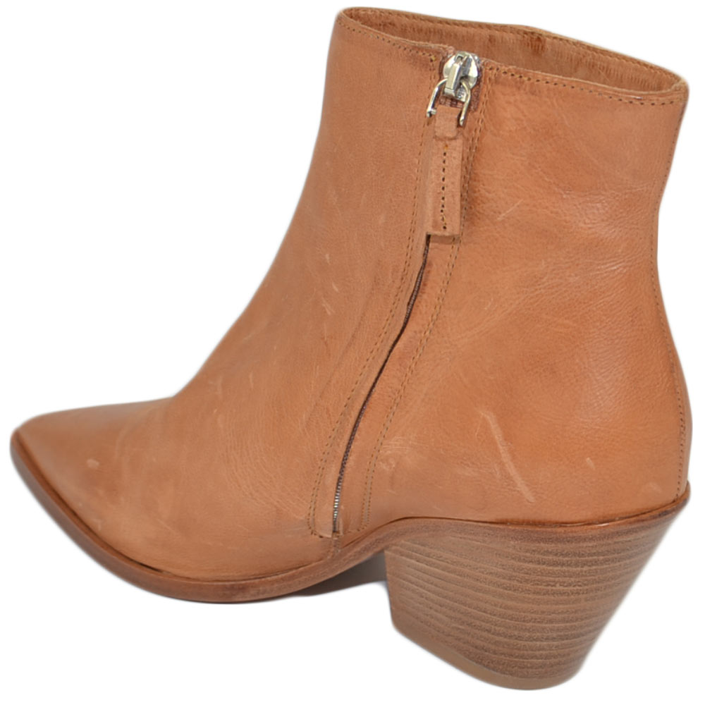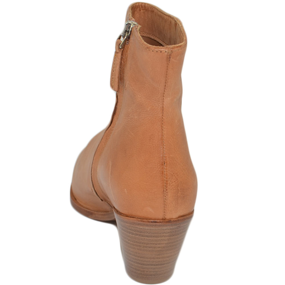 Tronchetti texani donna stivaletti camperos in vera pelle di nappa cuoio a punta con tacco cono basso made in Italy