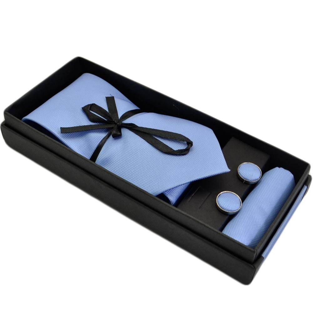 Set cravatta uomo elegante in raso celeste puntinato con gemelli e pochette per cerimonie eventi