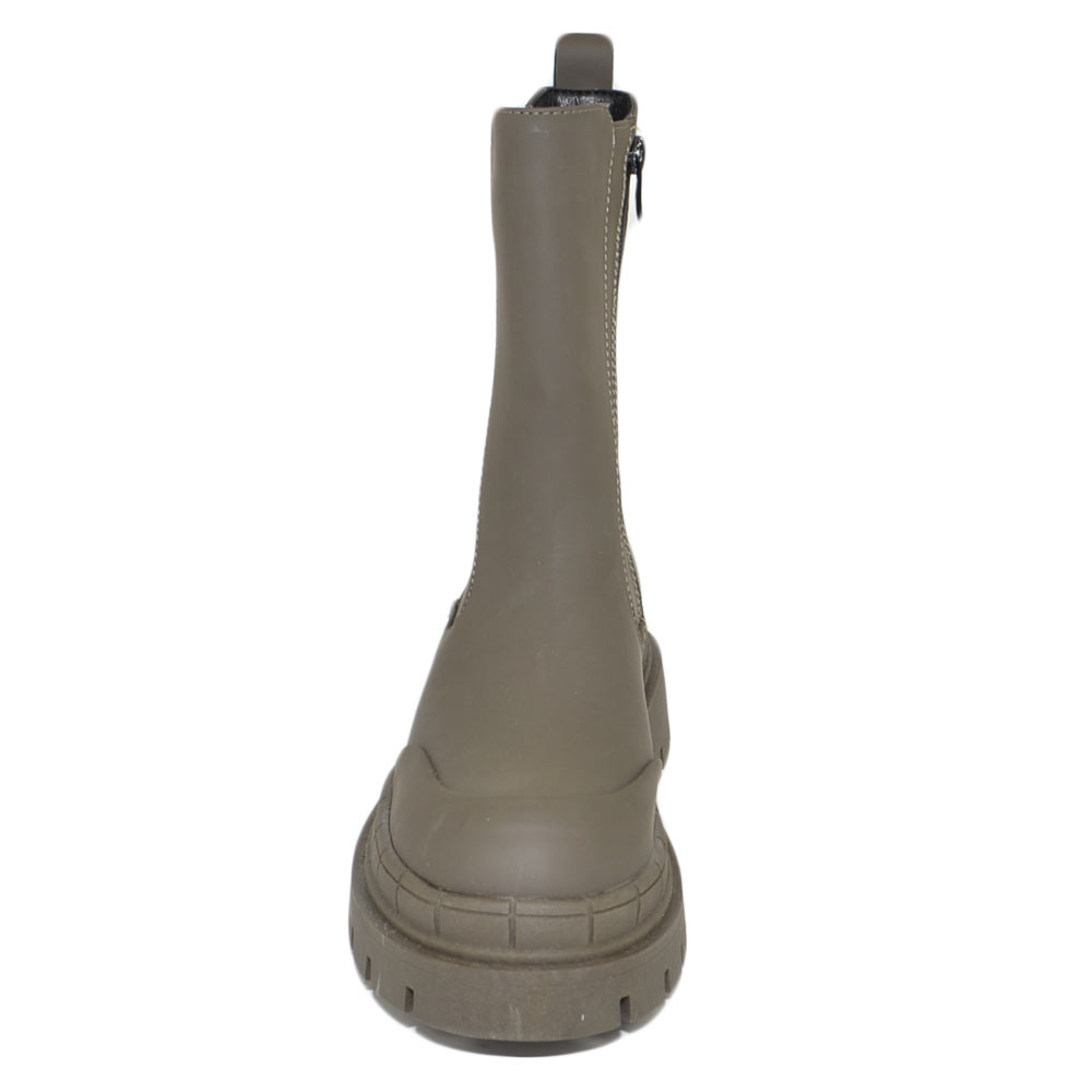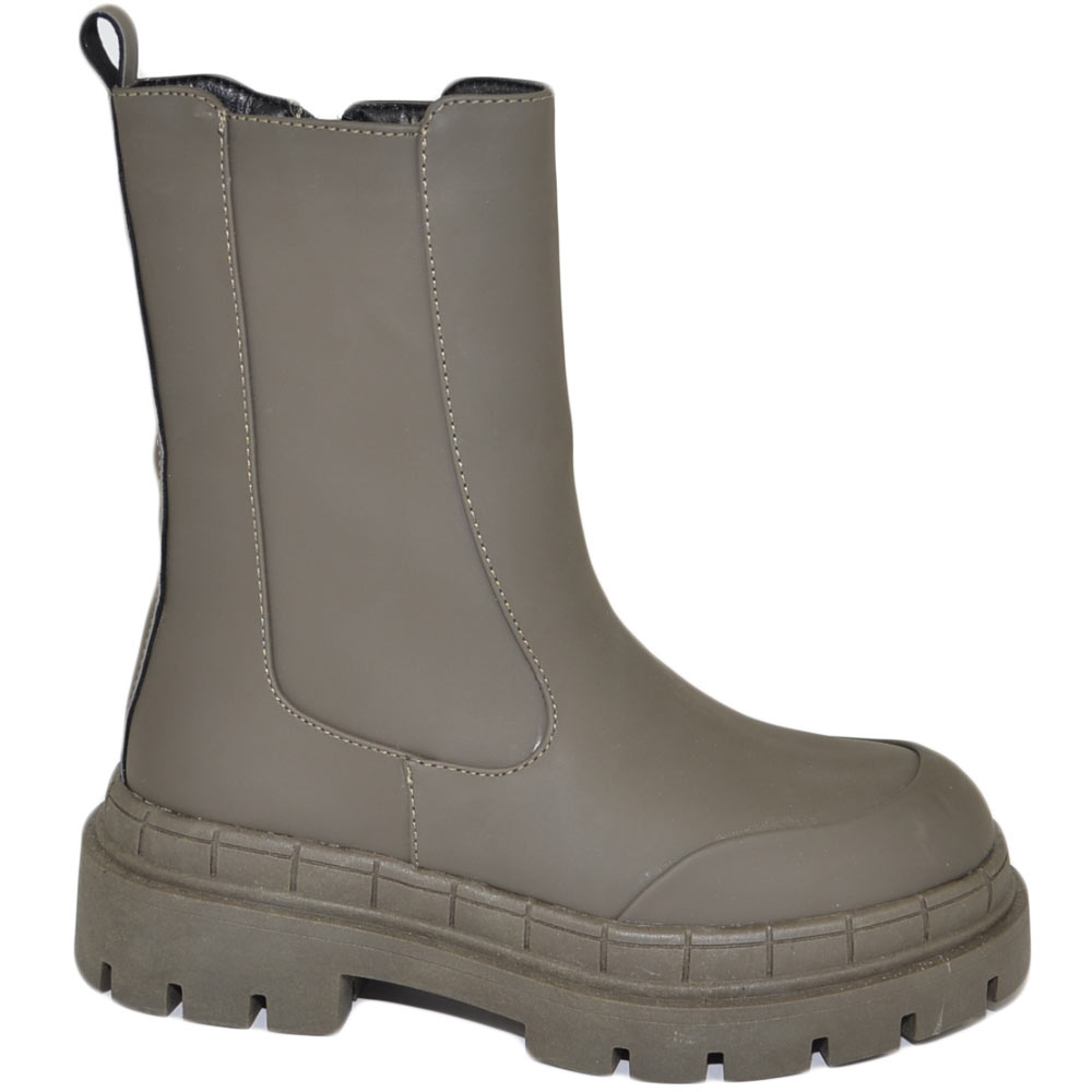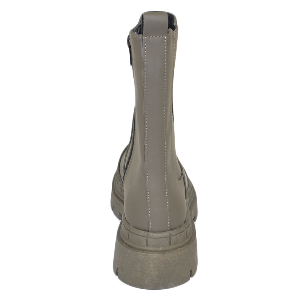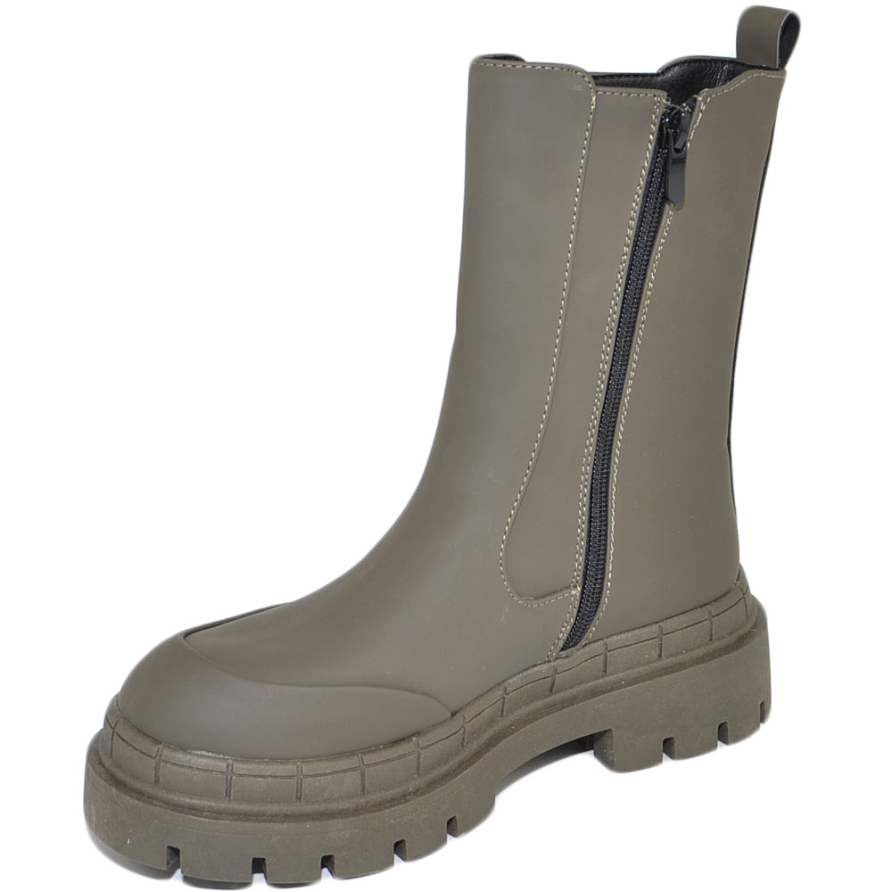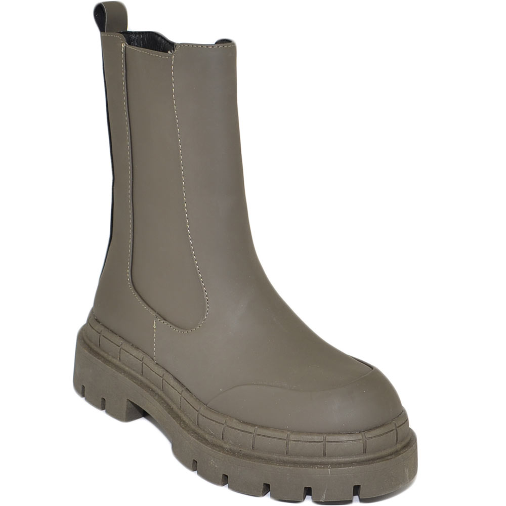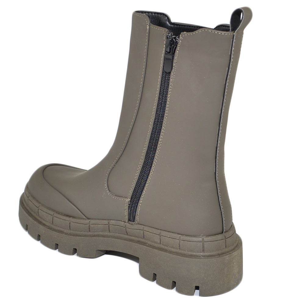 Stivaletti donna platform chelsea boots combat verde militare gommato fondo alto zip elastico laterale moda tendenza