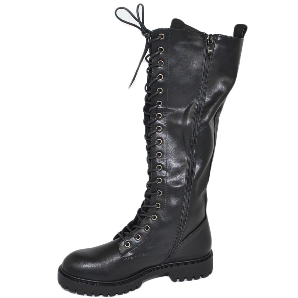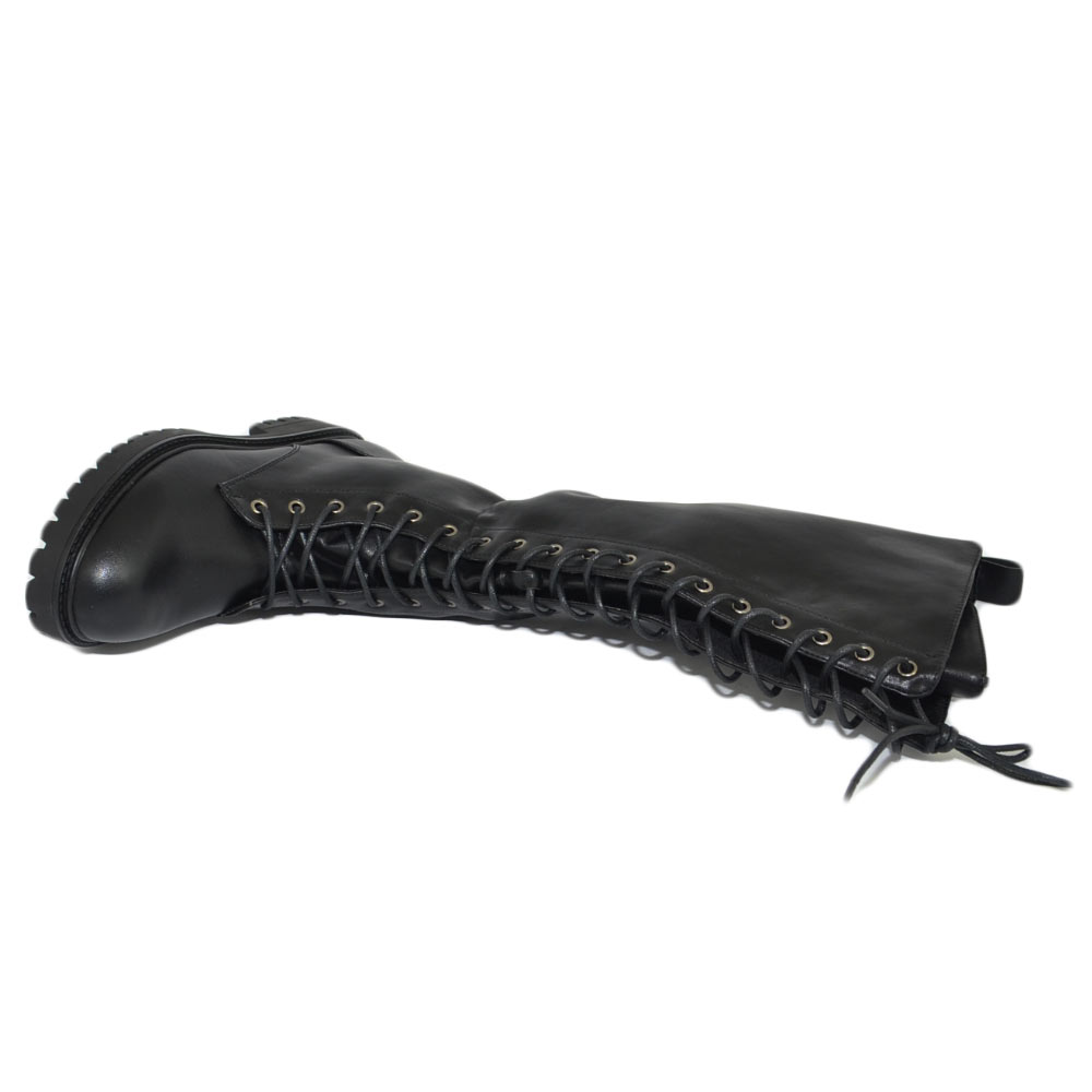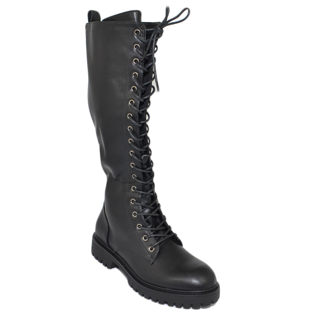 Stivali anfibi donna alto al ginocchiocon zip fondo suola carrarmato comodo zeppa lacci lunghi moda aderente elastico